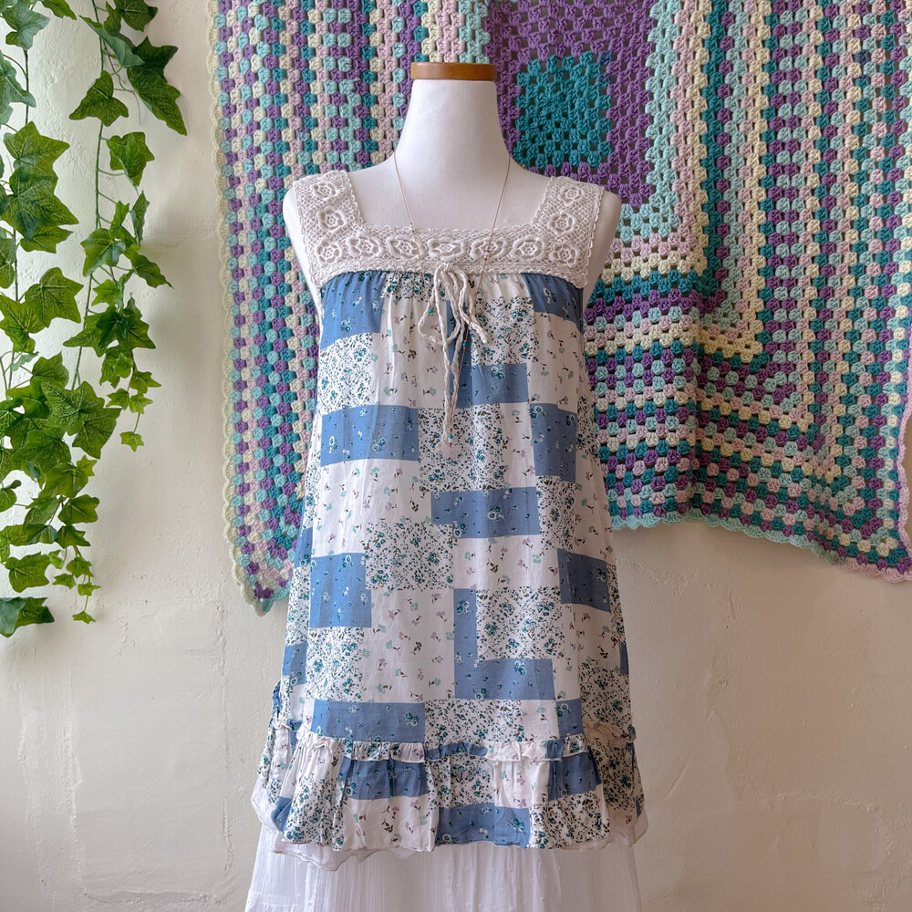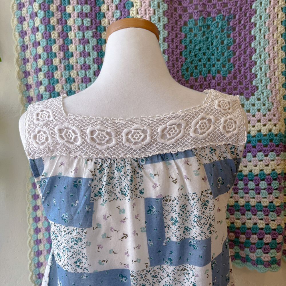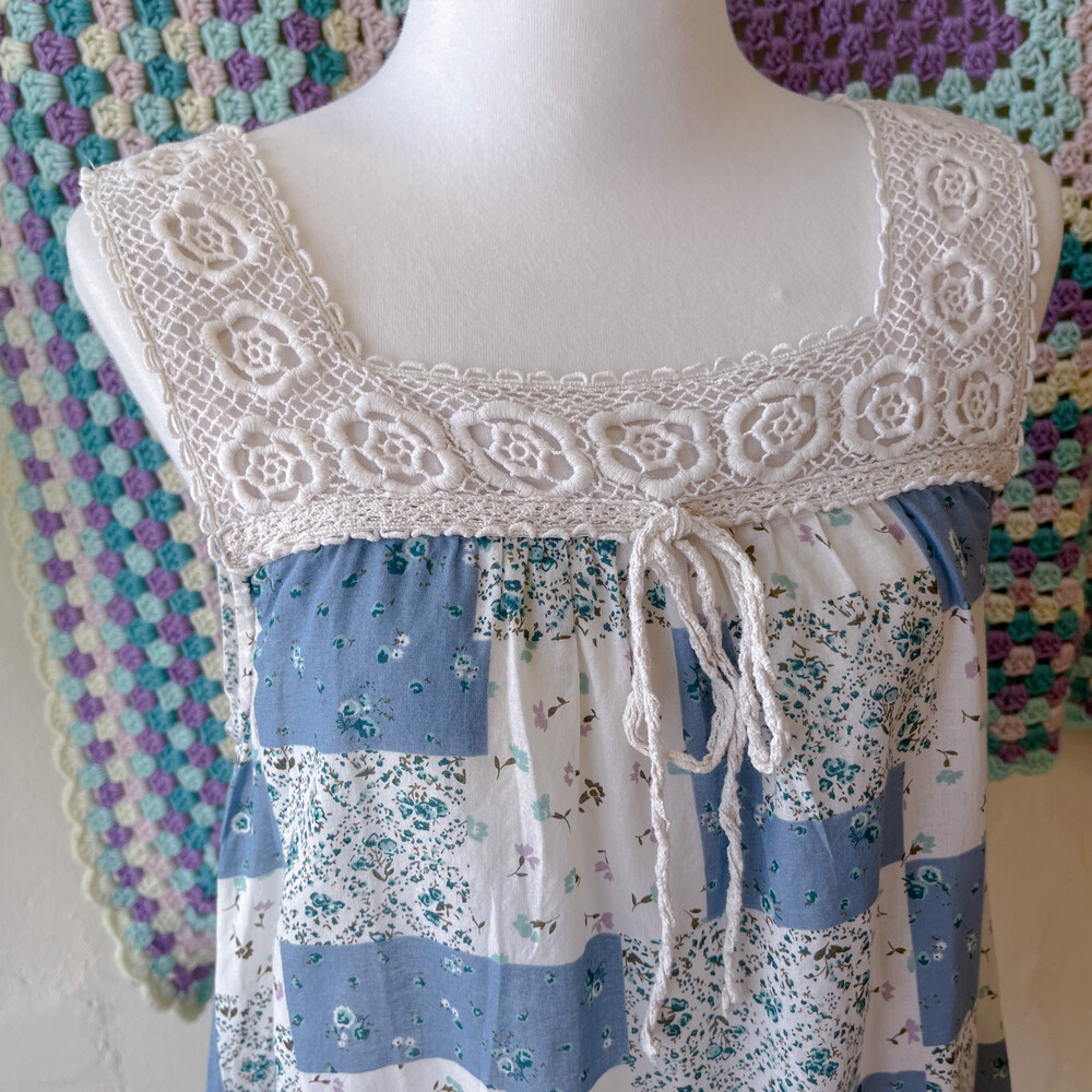 blue base square lace neck tunic