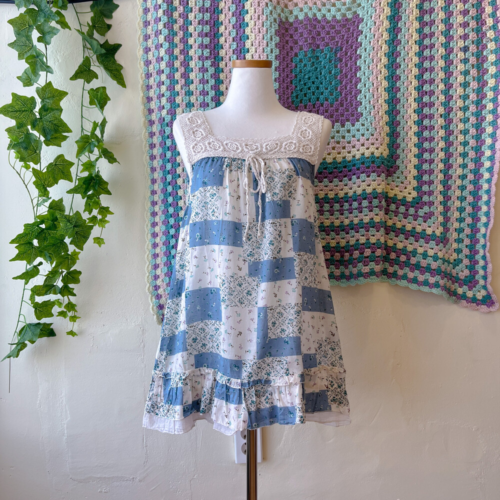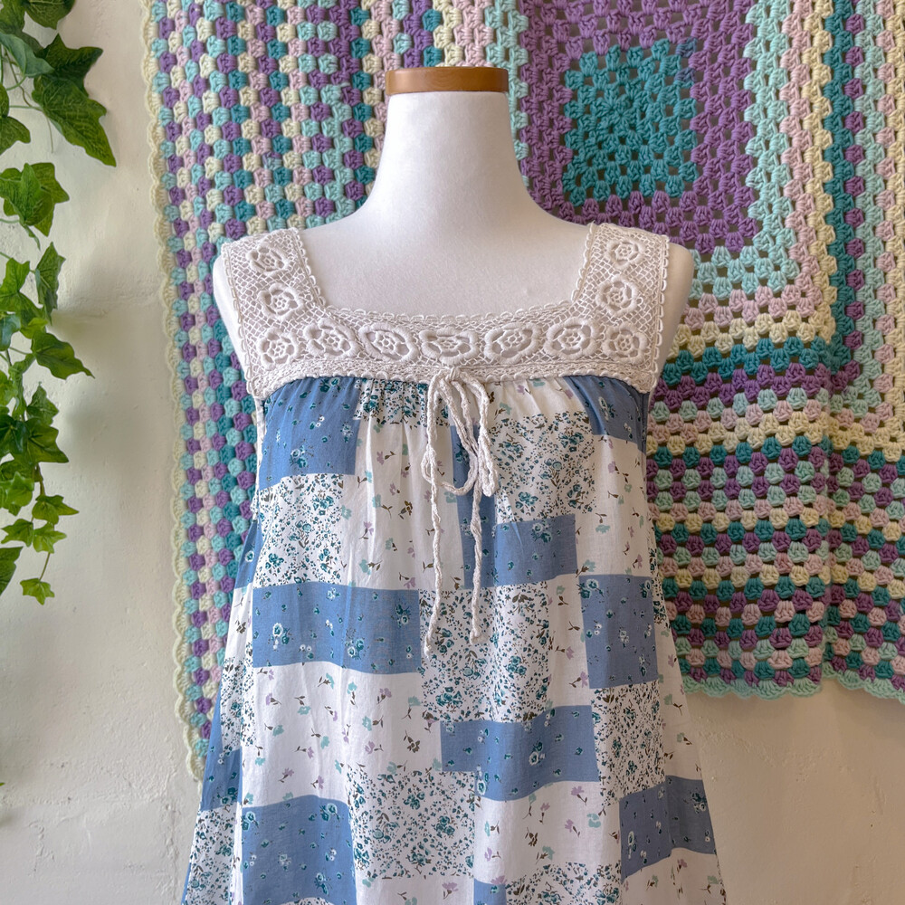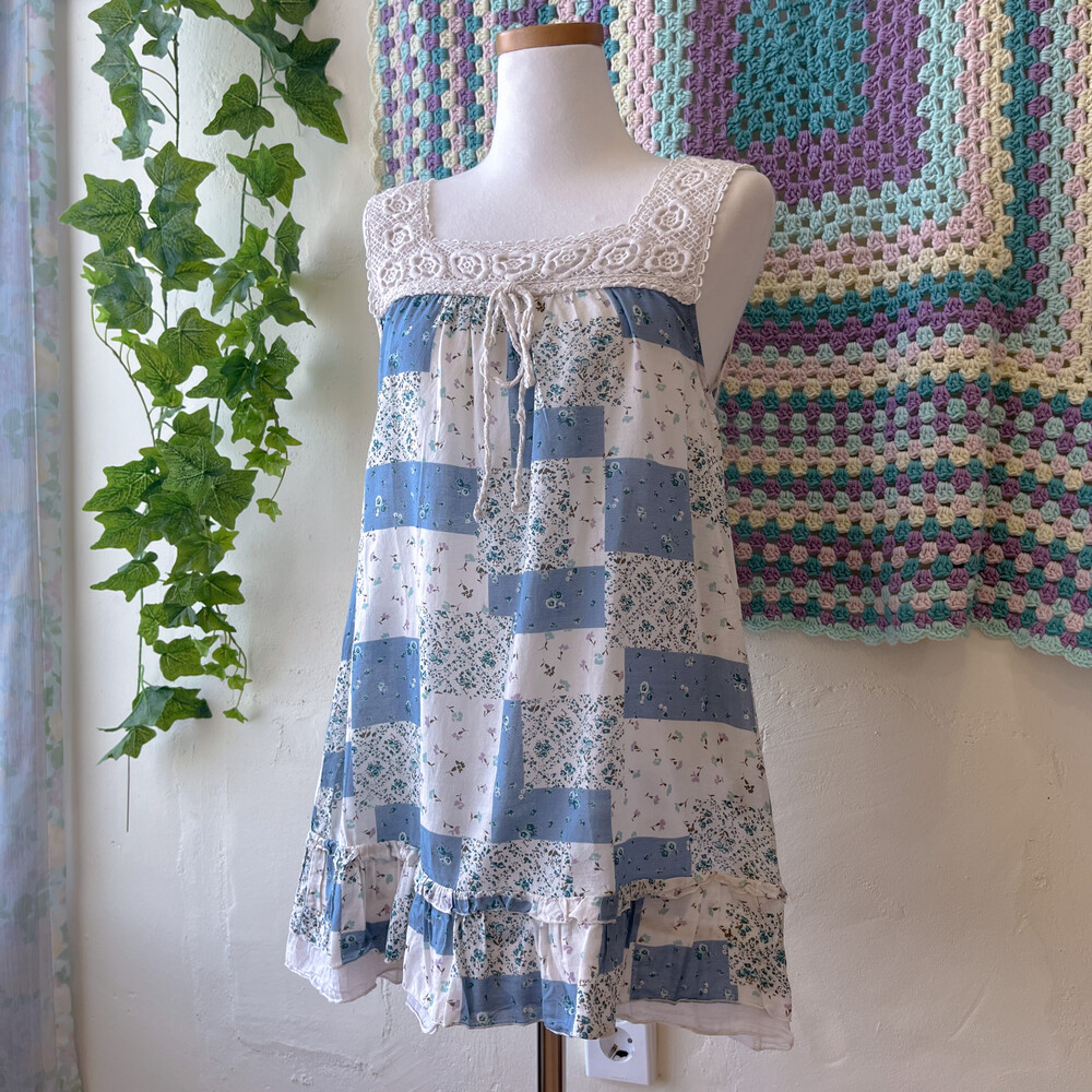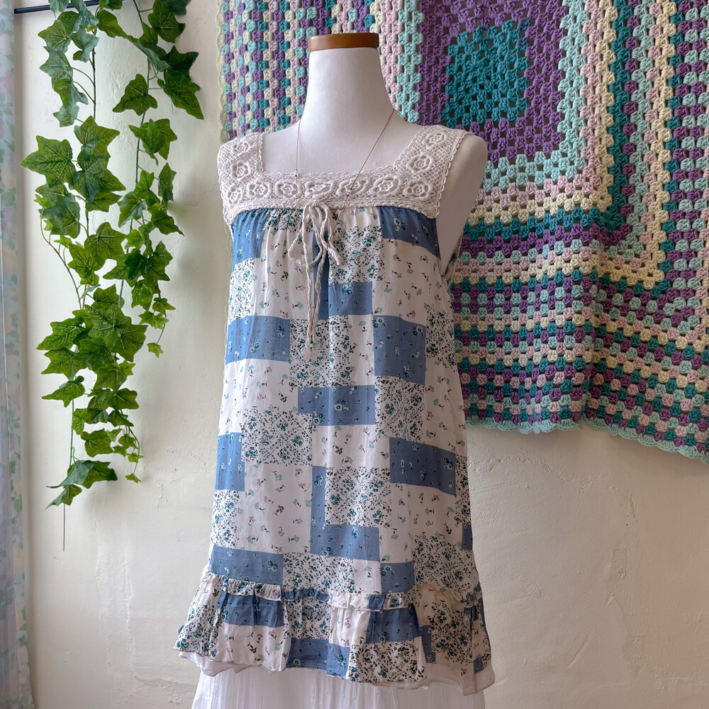 blue base square lace neck tunic