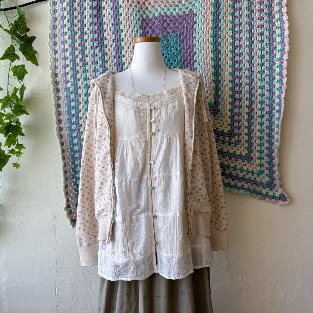 옅은 오트밀 바탕에 잔잔한 패턴들이 가득 들어간