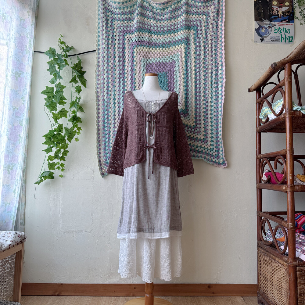 그레이브라운 색감의 코지한 끈원피스예요