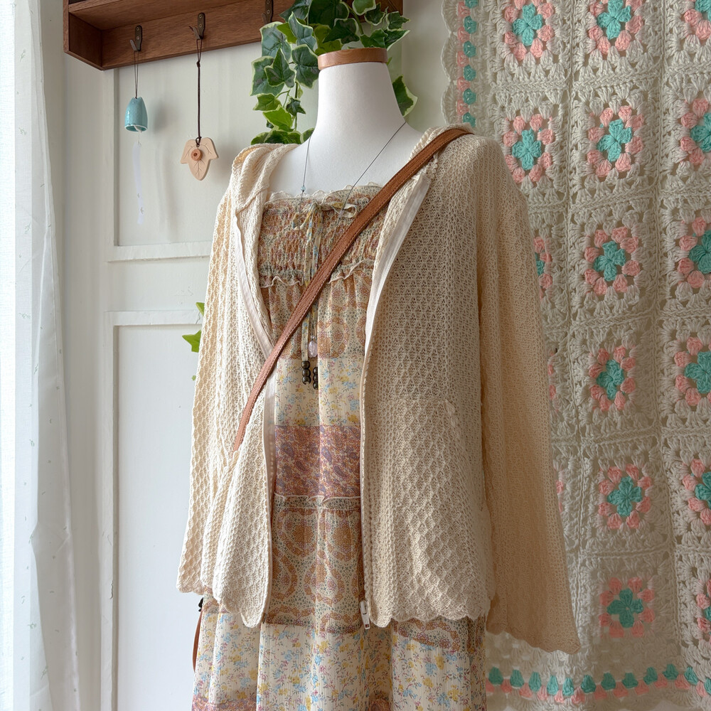 딥아이보리 색감의 후드 집업 봄 가디건이에요