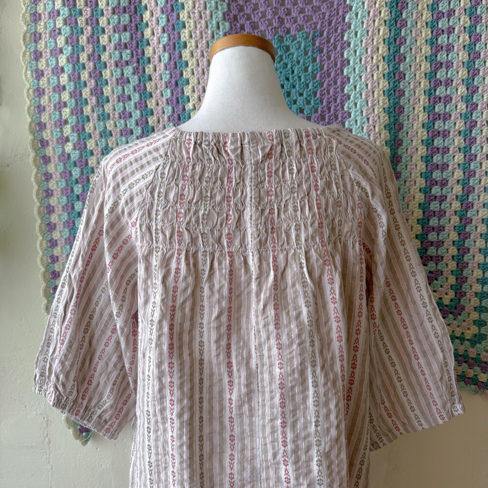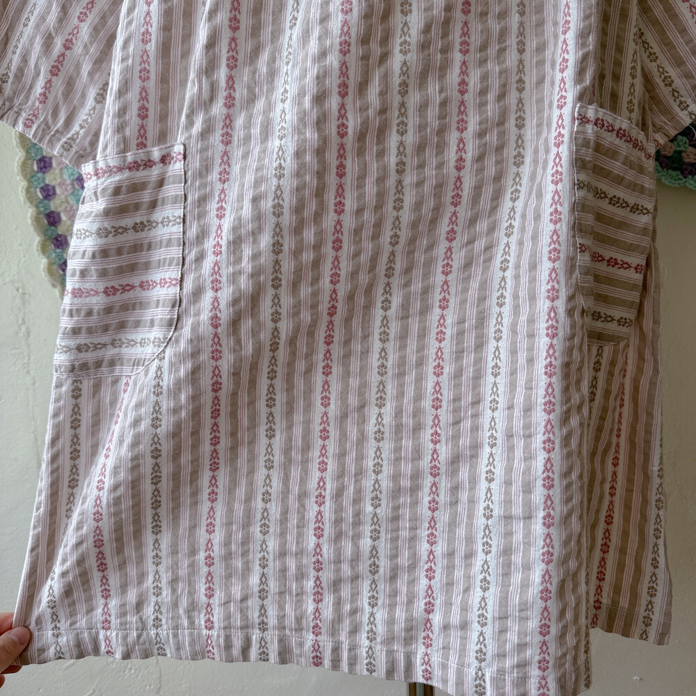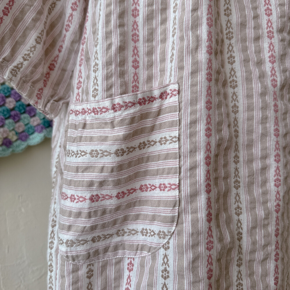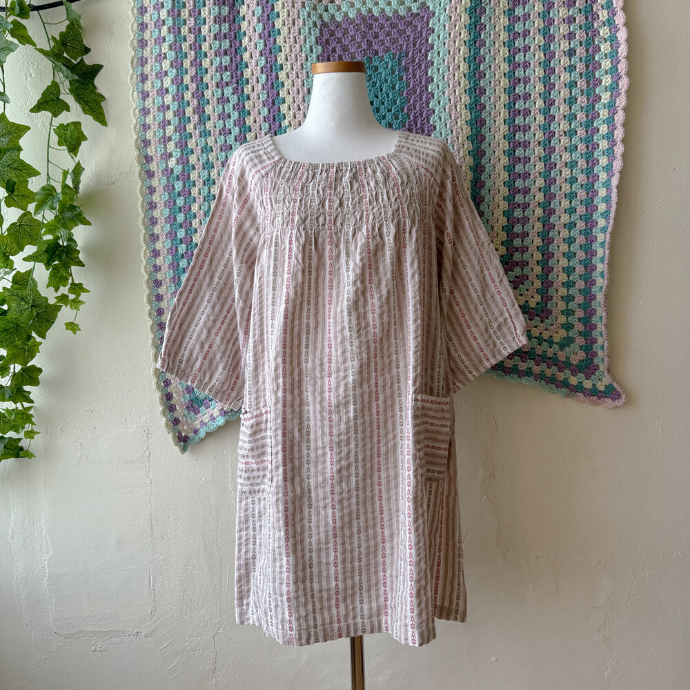 베이지, 핑크색감 조합의 코튼 원피스예요