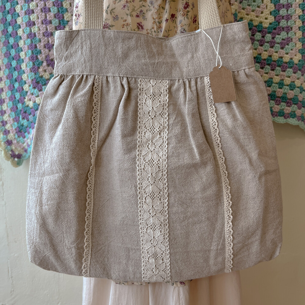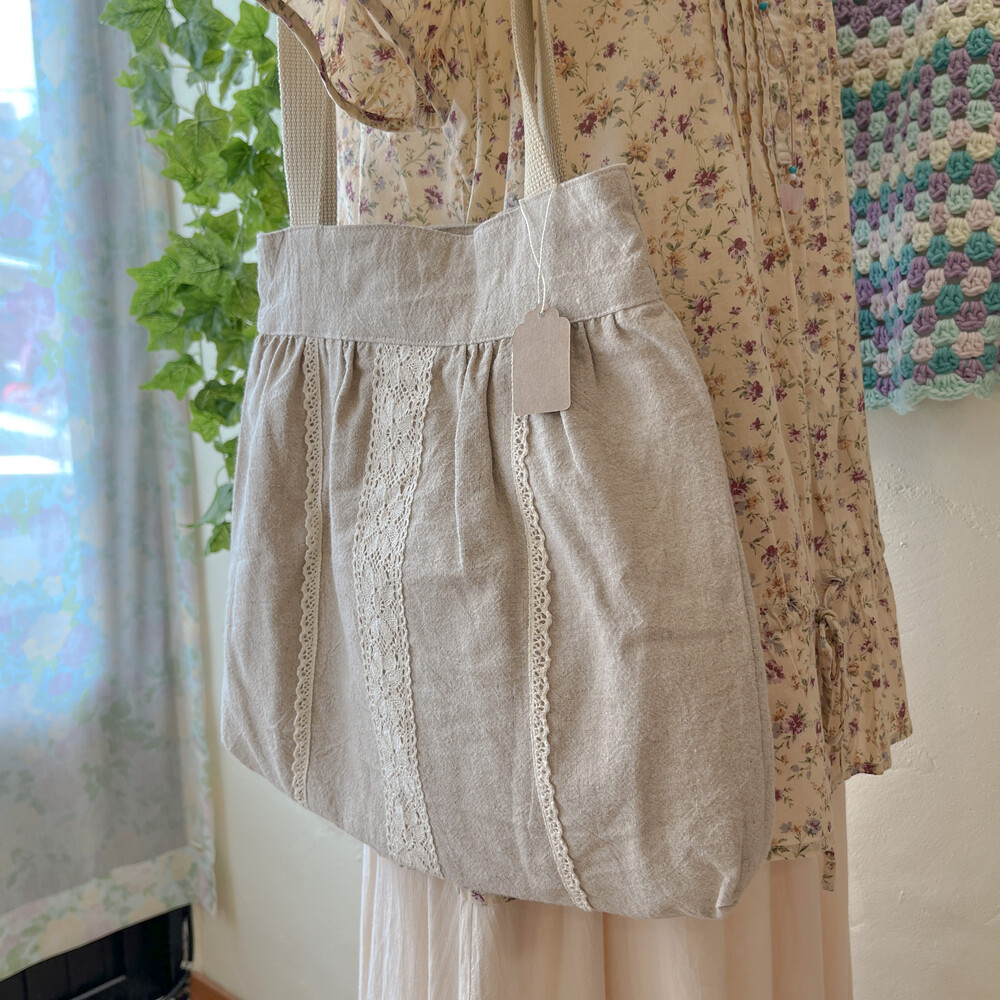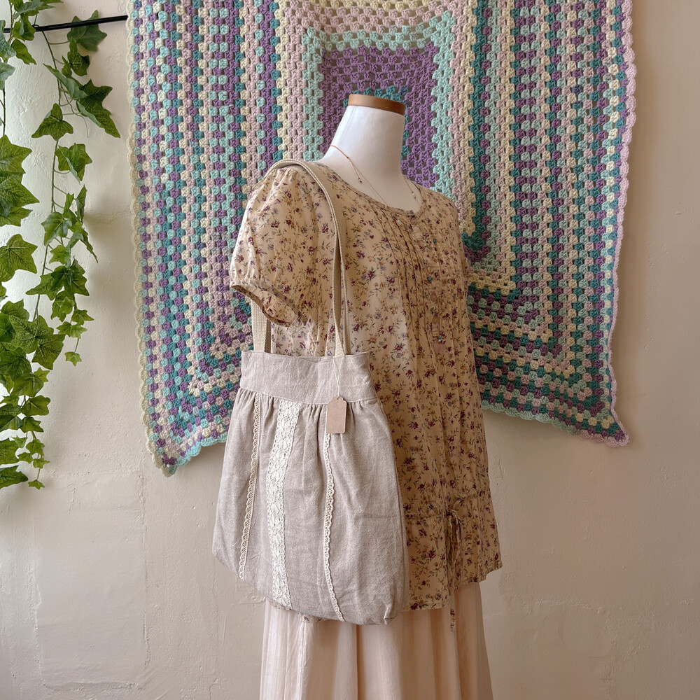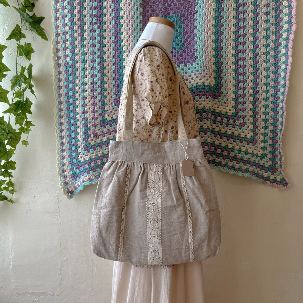 오트밀 베이지 색감의 린넨 소재 숄더백이에요