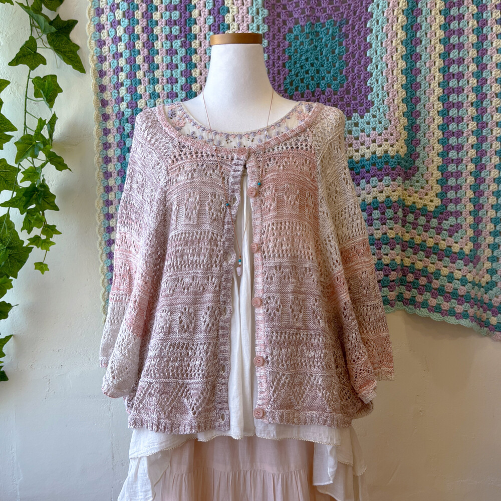 분홍, 보라 색감의 자수, 비즈 블라우스예요