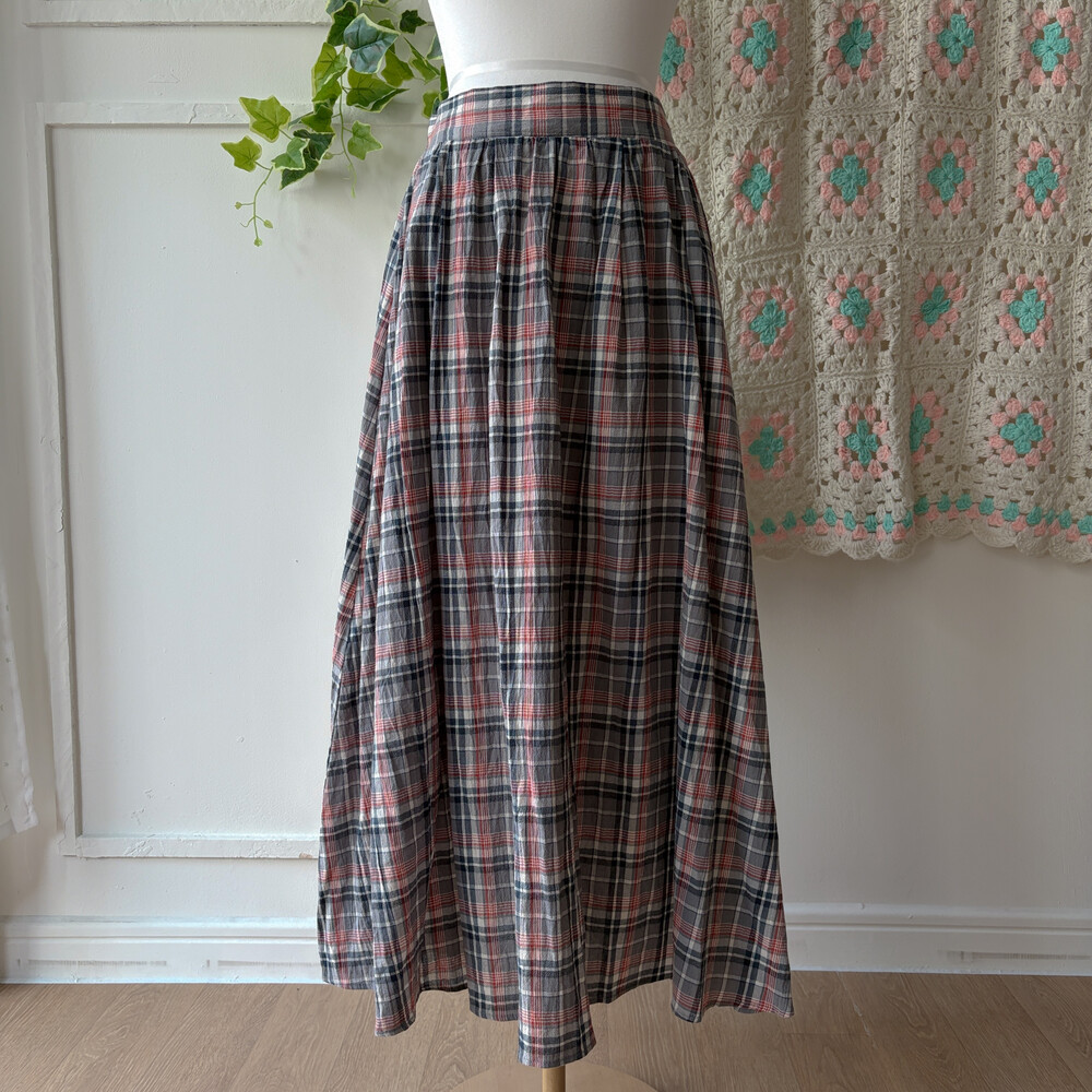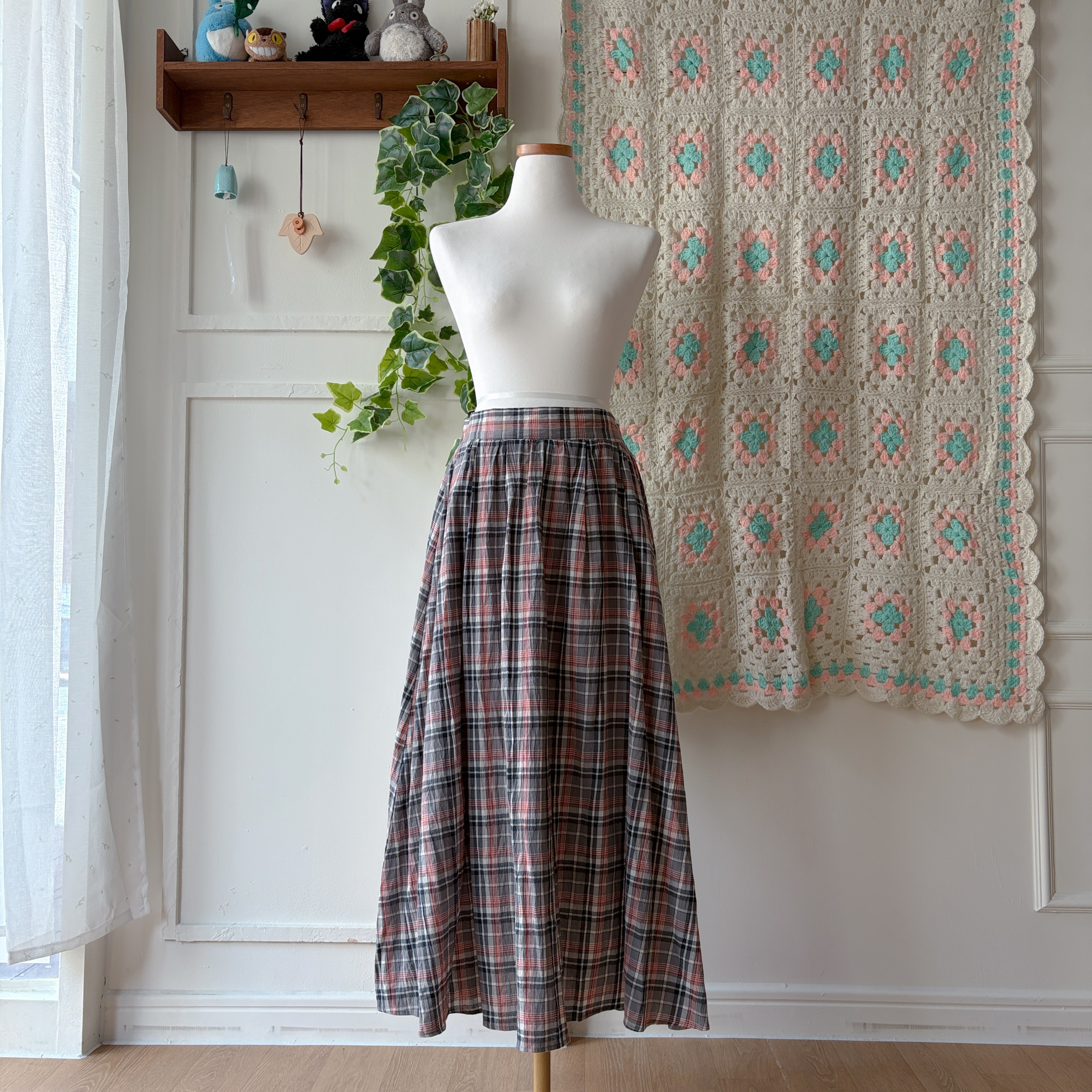 그레이 색감의 체크 스커트예요