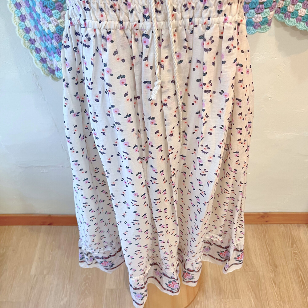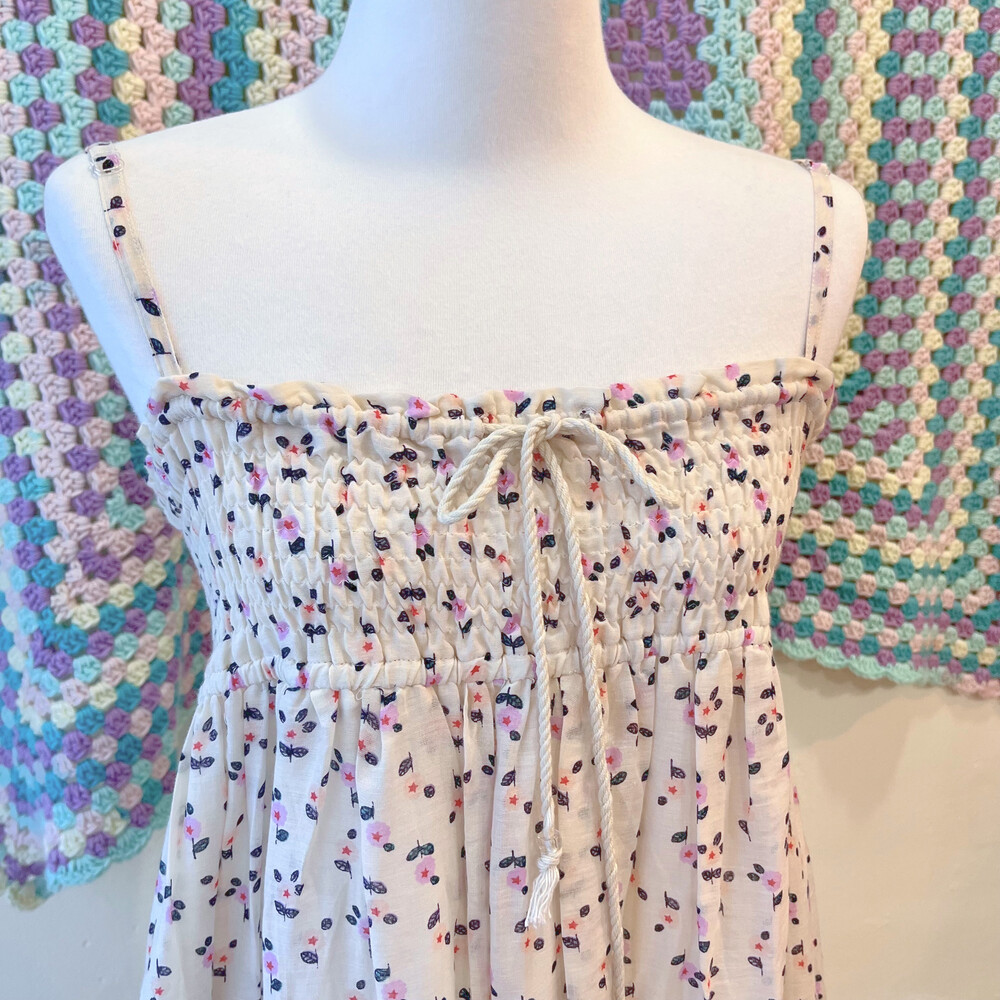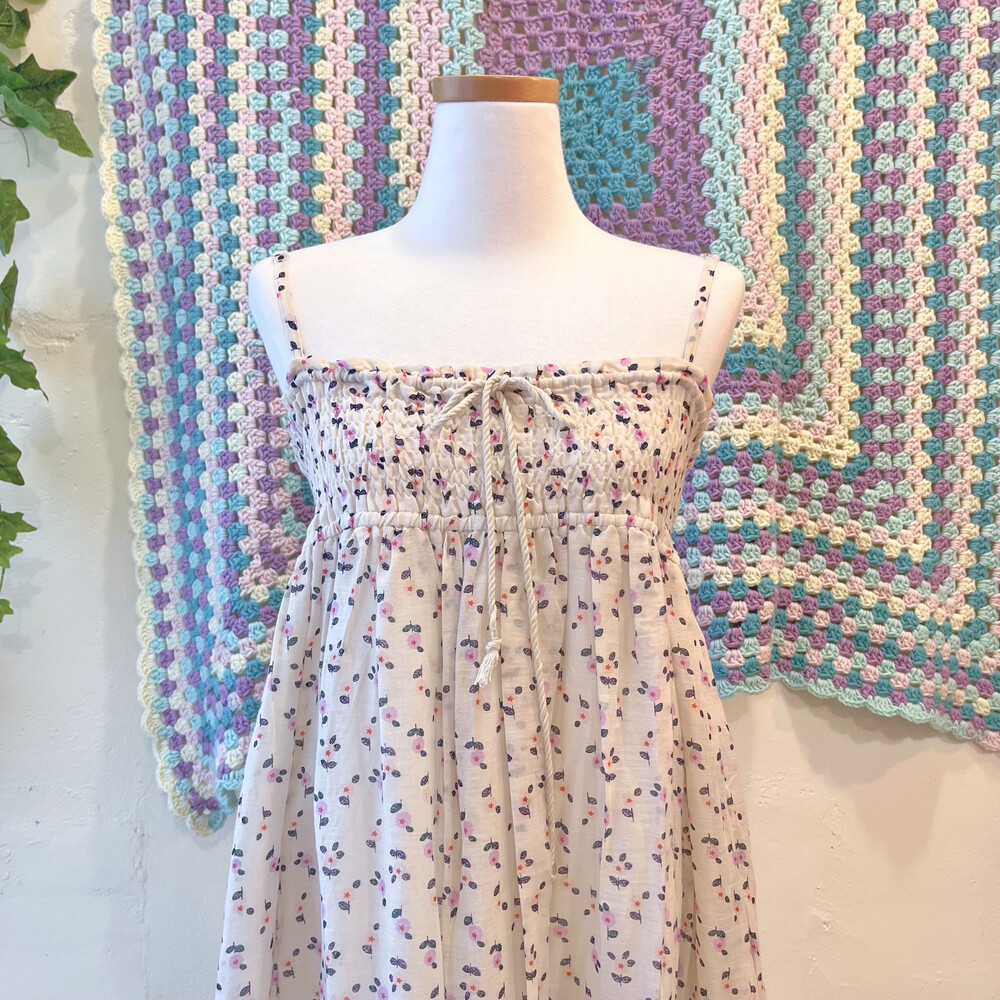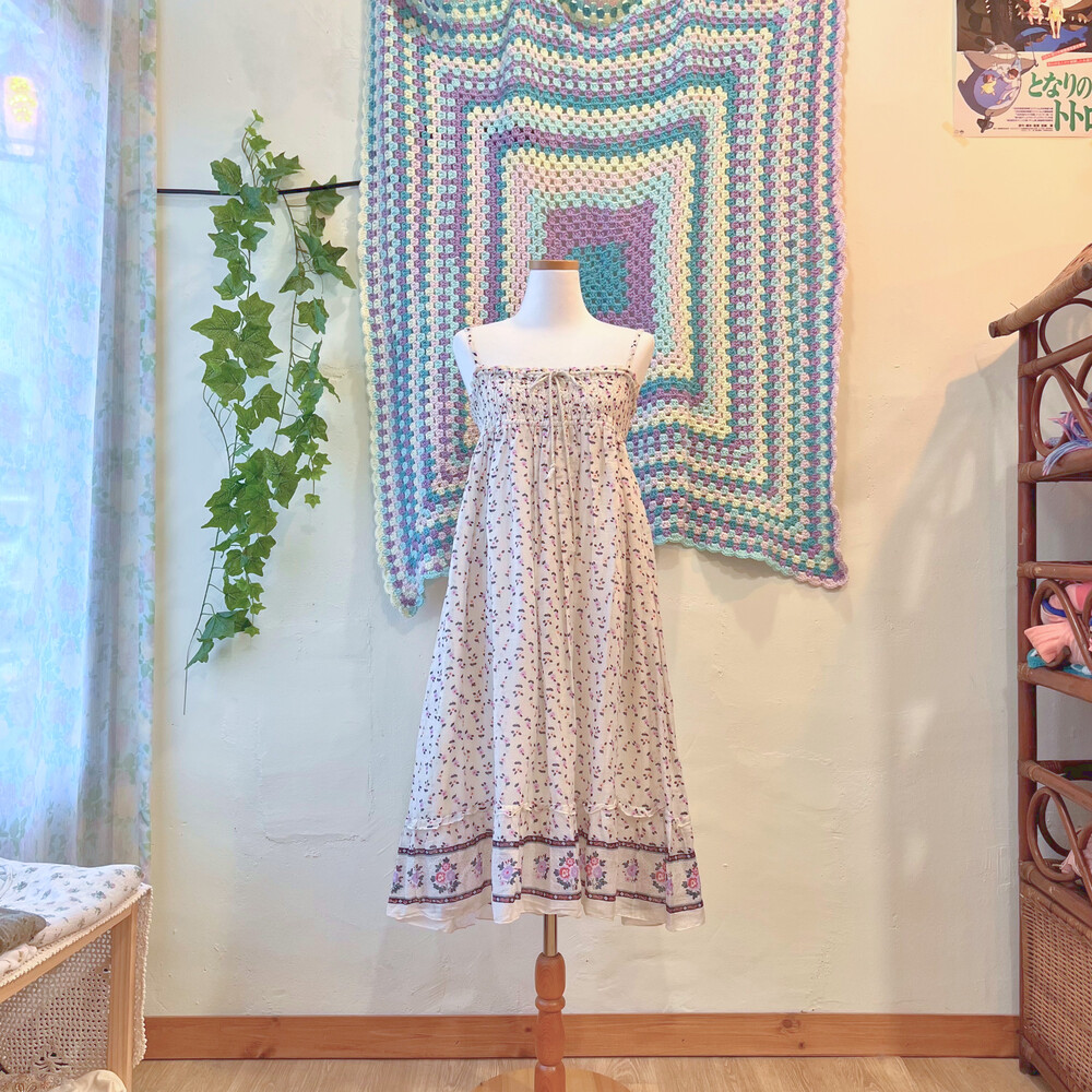 밀키한 색감 베이스의 잔꽃 끈원피스에요