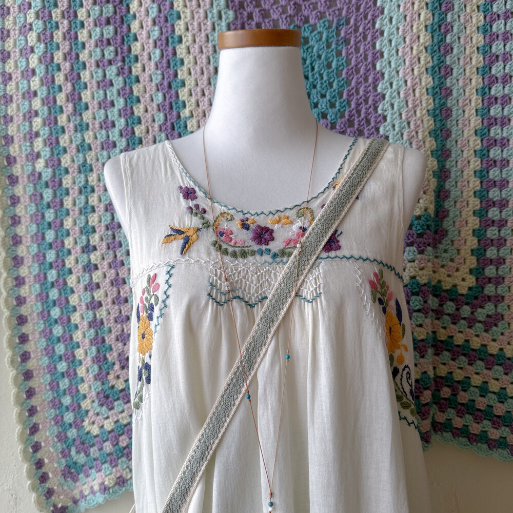 자수 포인트의 민소매 튜닉이에요