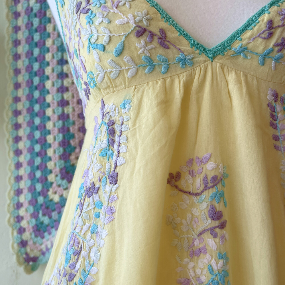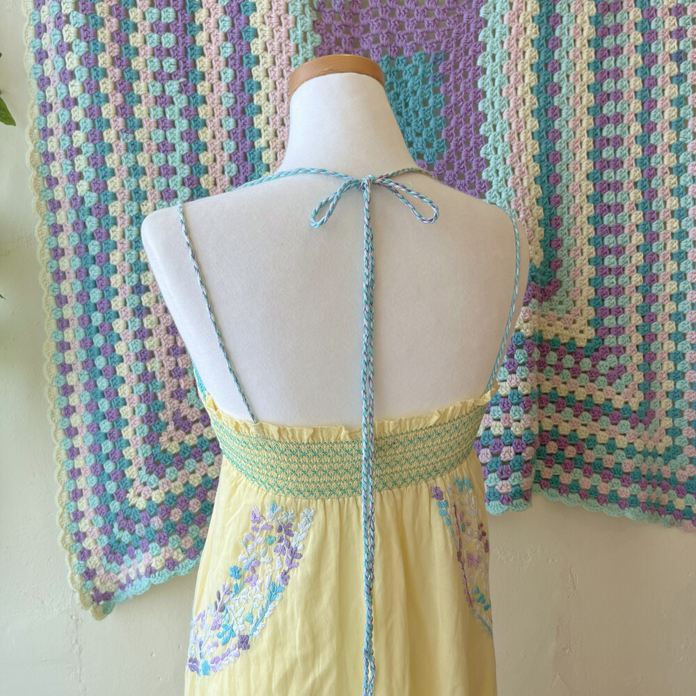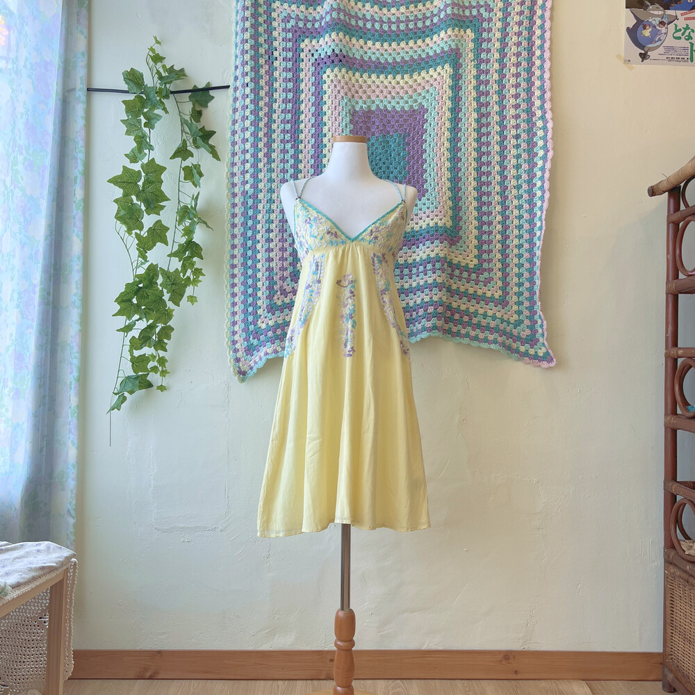 레몬 색감 베이스에 자수 포인트 끈원피스예요