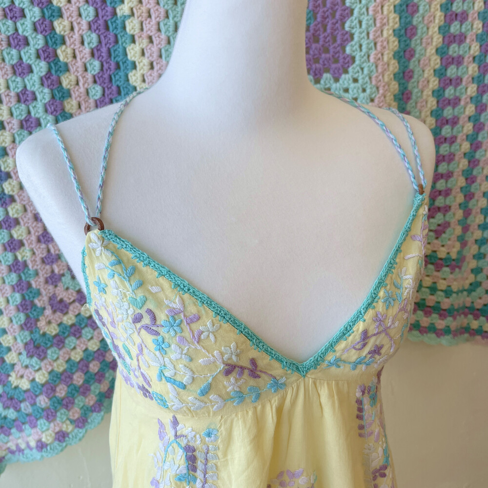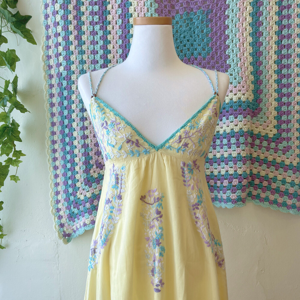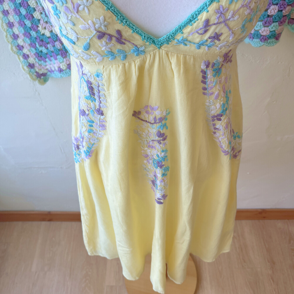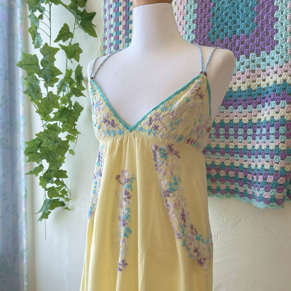 레몬 색감 베이스에 자수 포인트 끈원피스예요