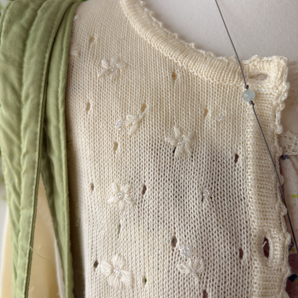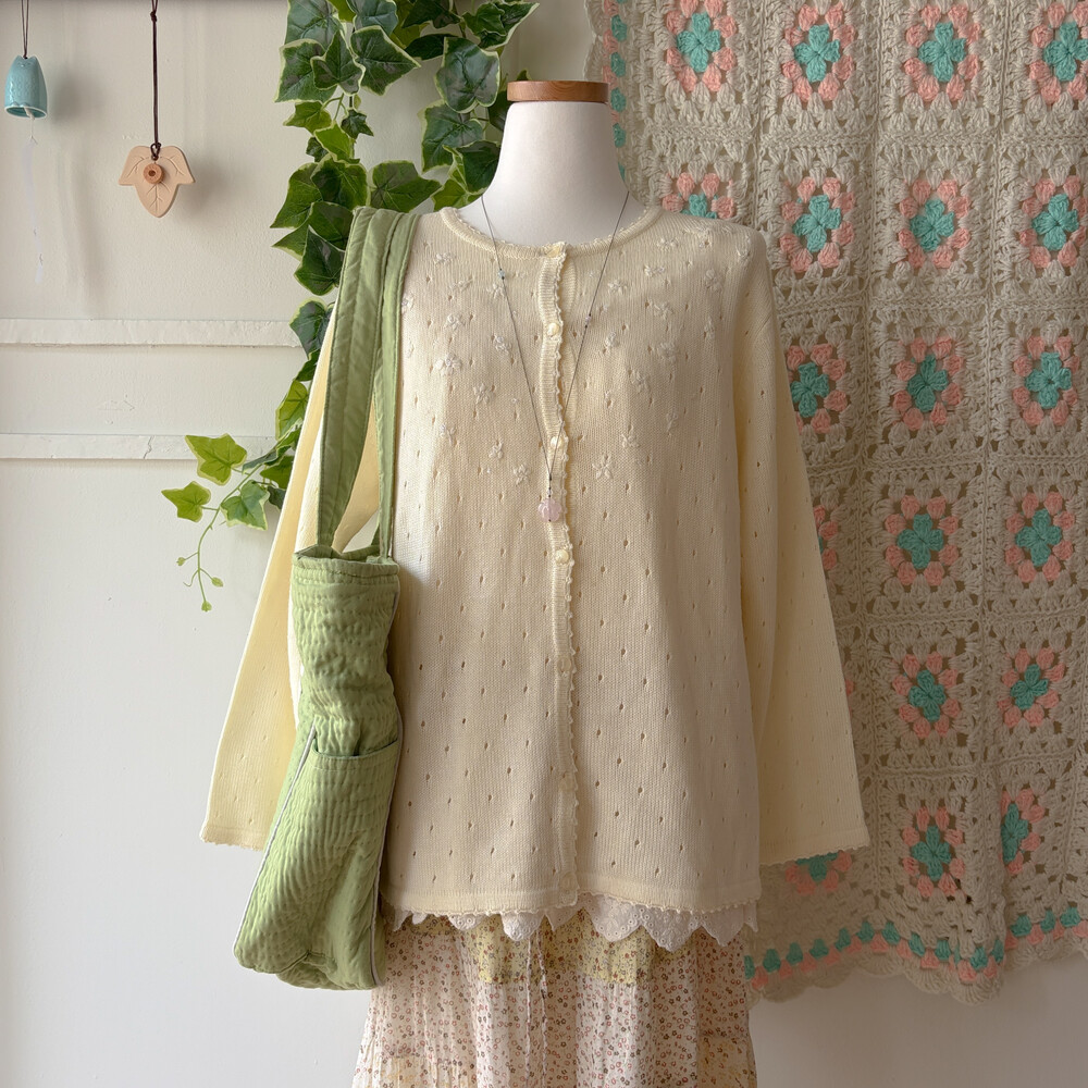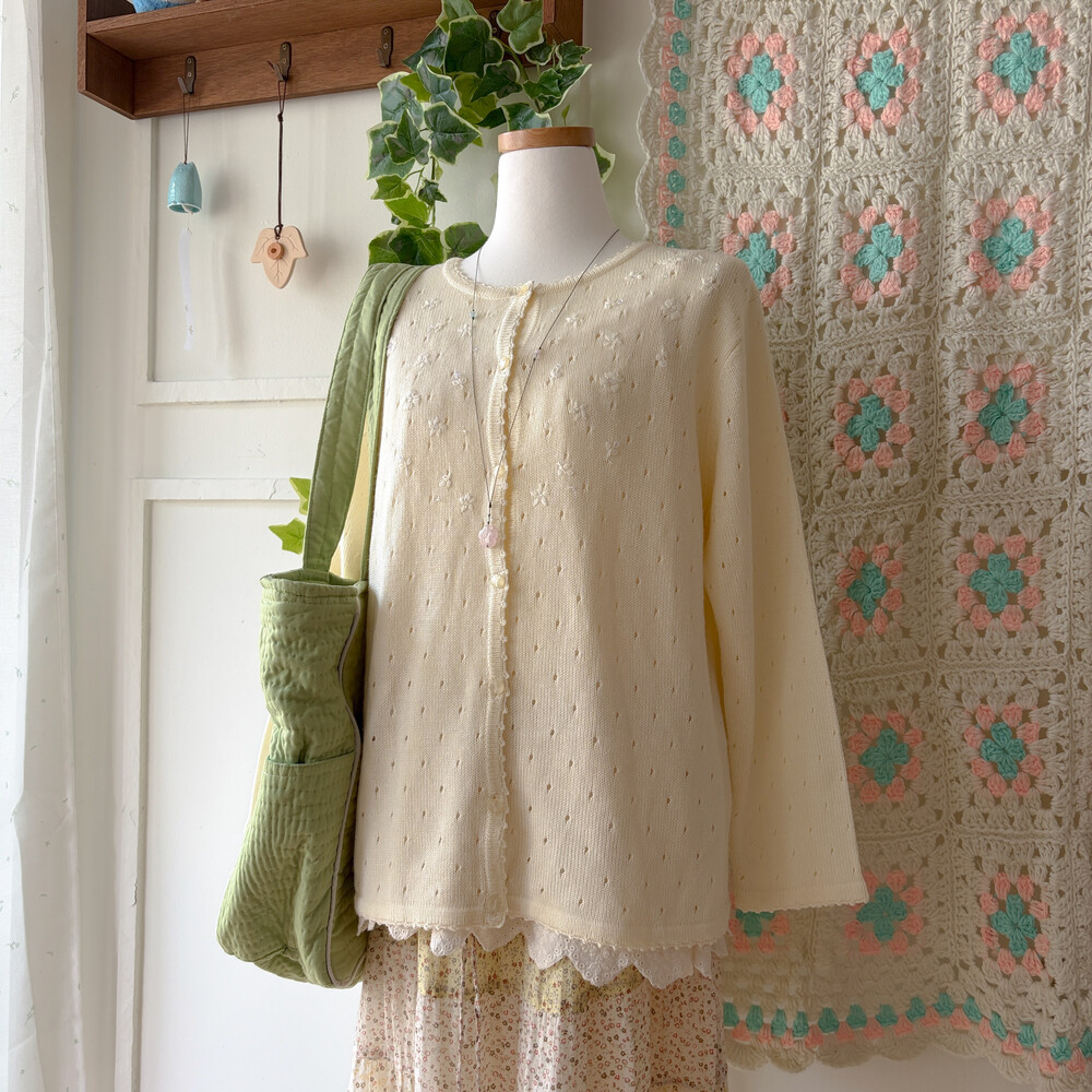 딥아이보리 색감의 자수 포인트 가디건이에요