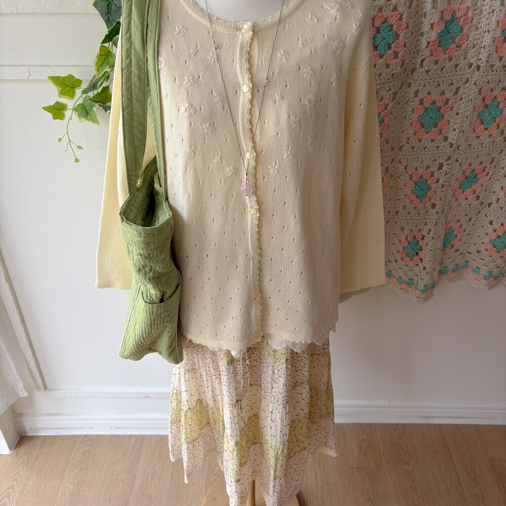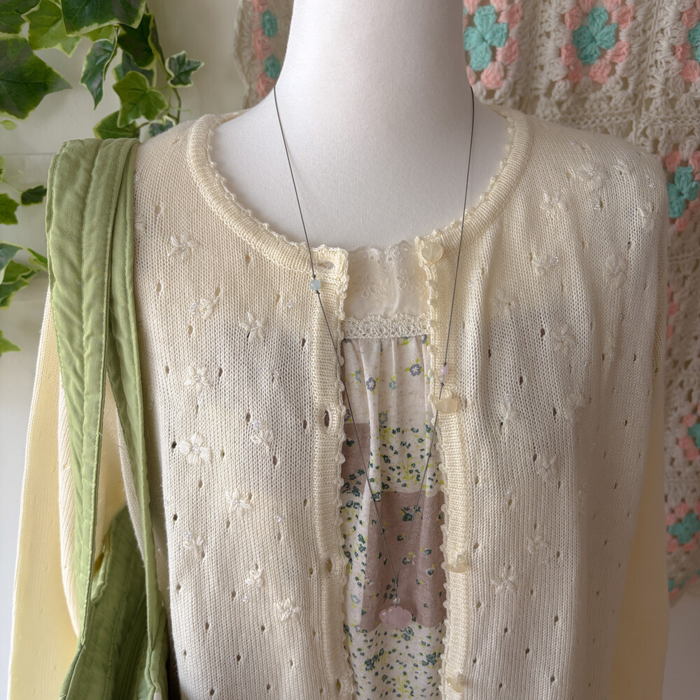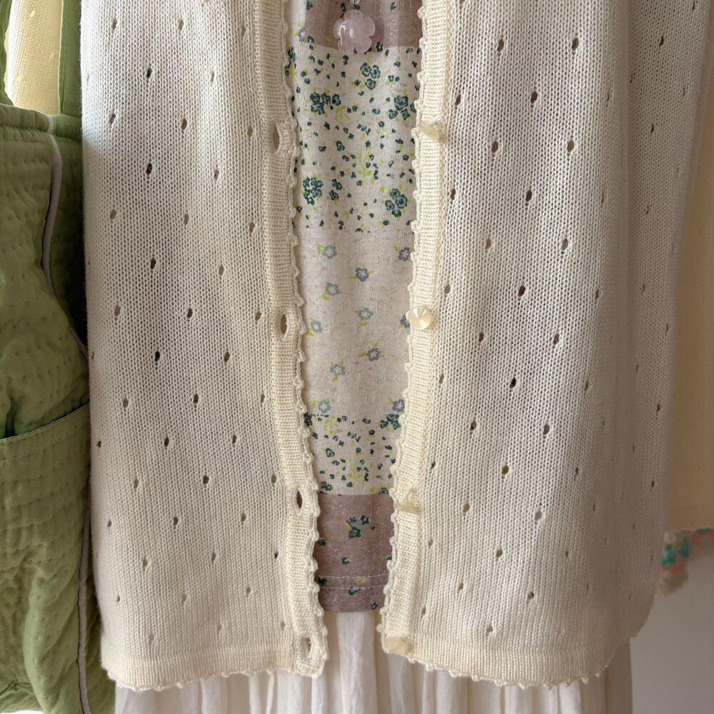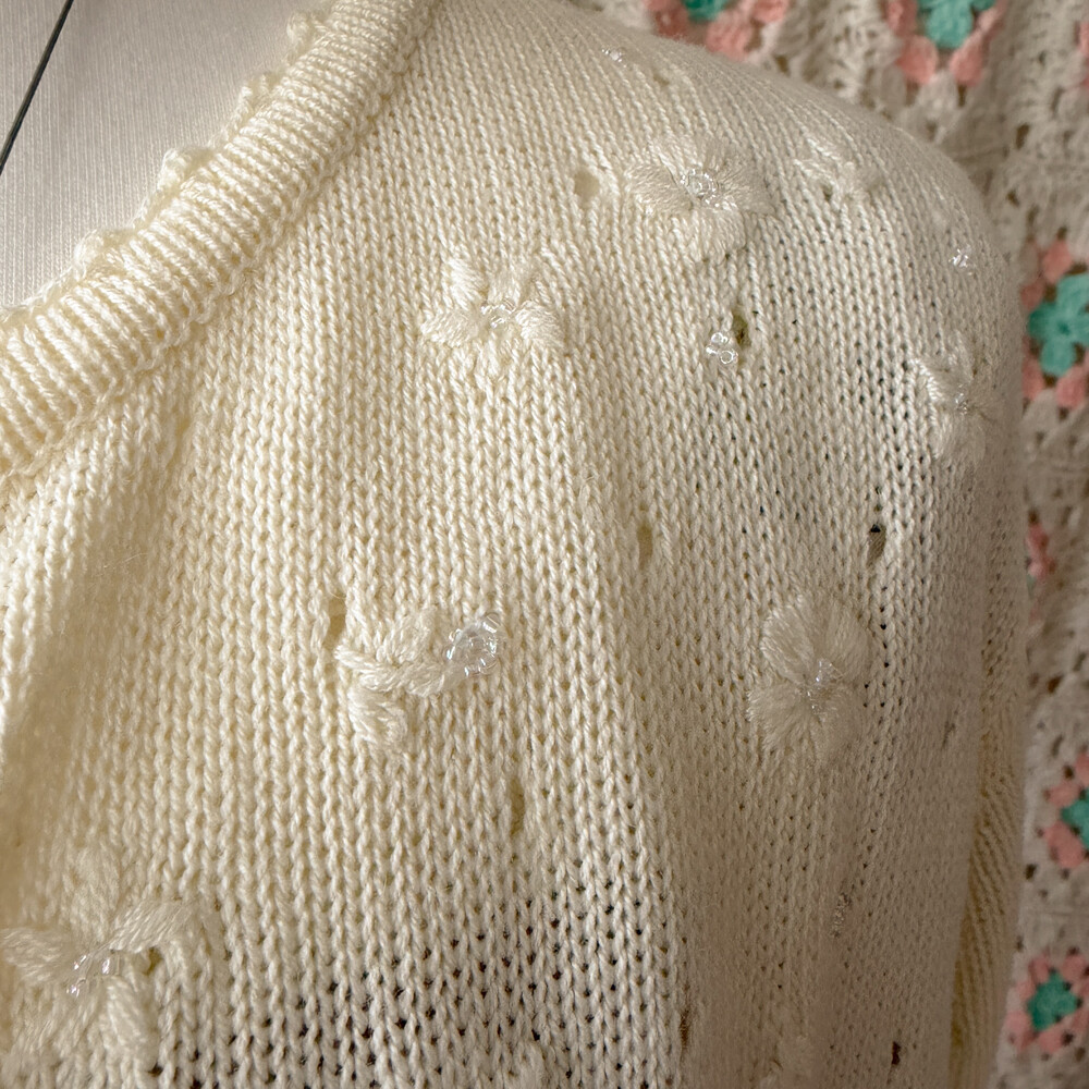 딥아이보리 색감의 자수 포인트 가디건이에요