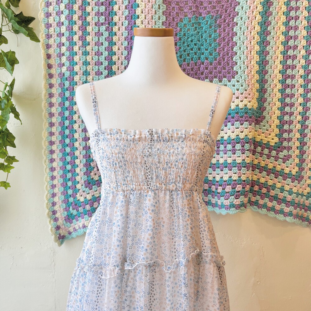 milky blue mini flower chiffon ops
