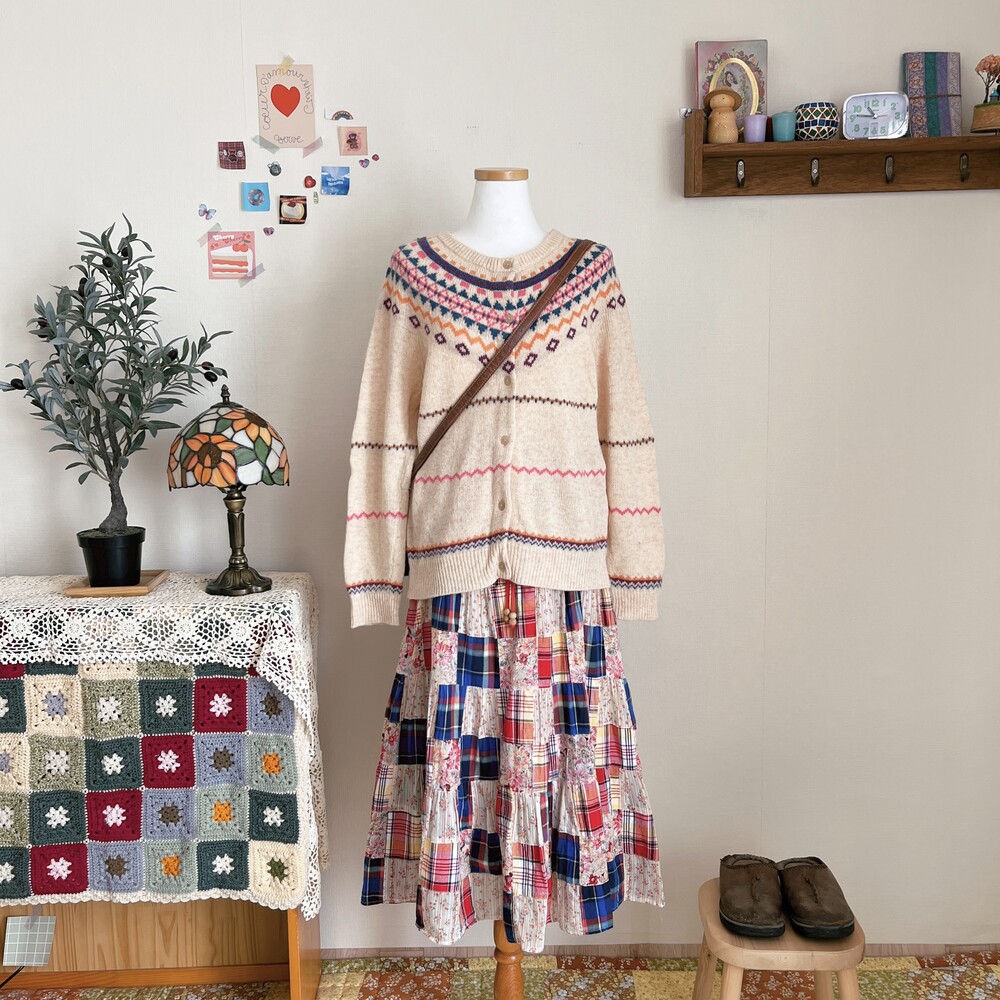 너무나 귀여운 색감과 패턴의 가디건이에요