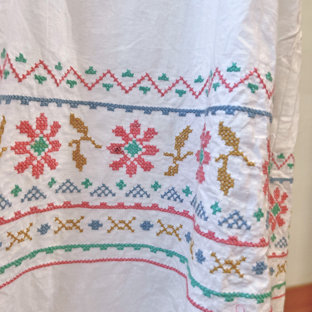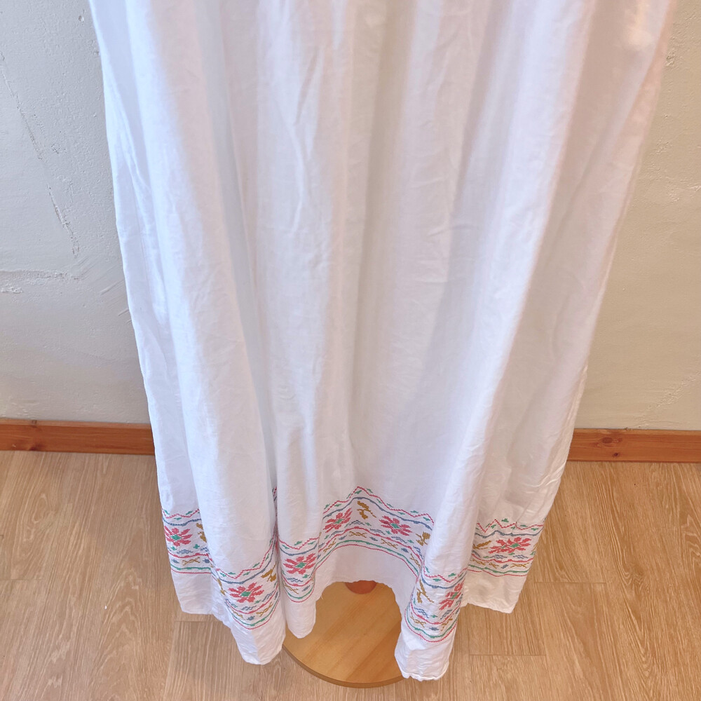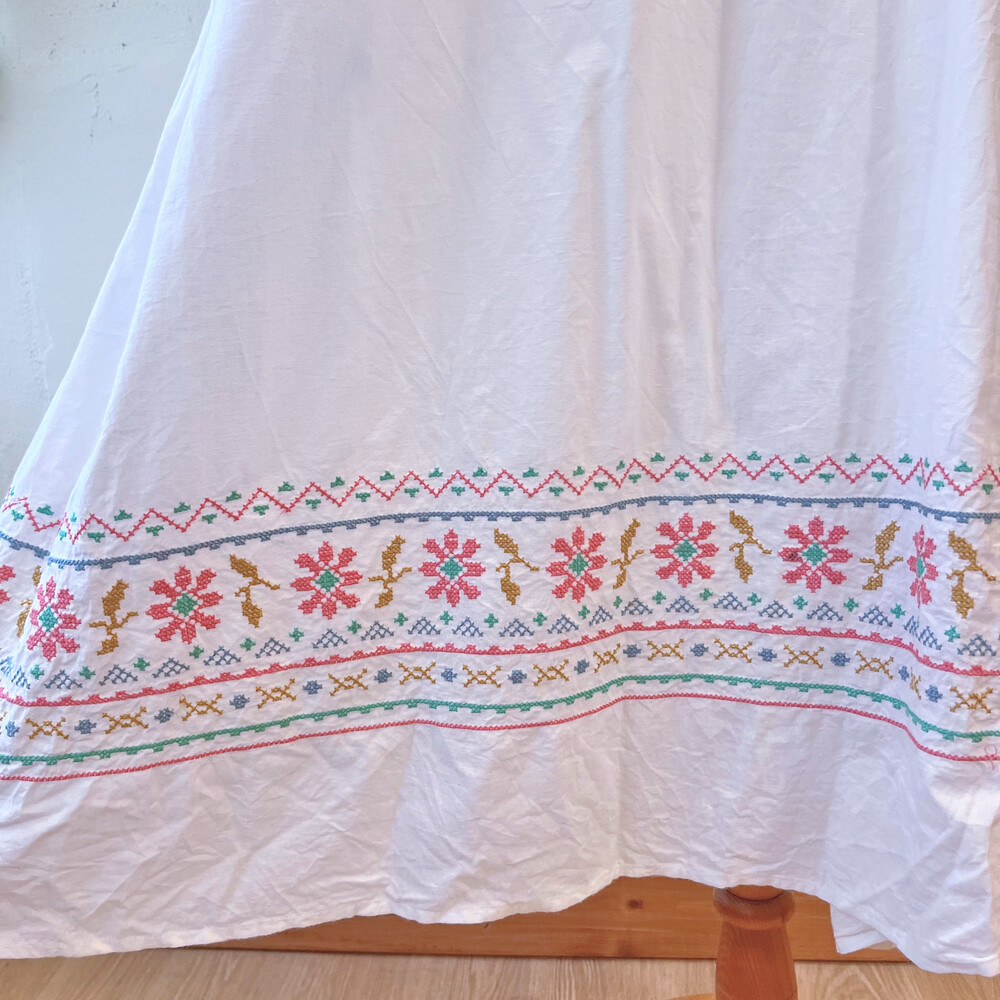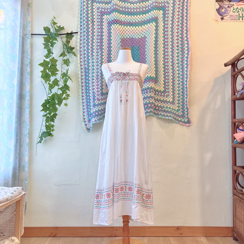 밑단 십자수 포인트의 코튼 끈원피스예요