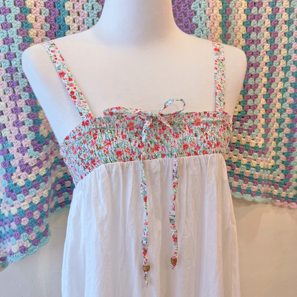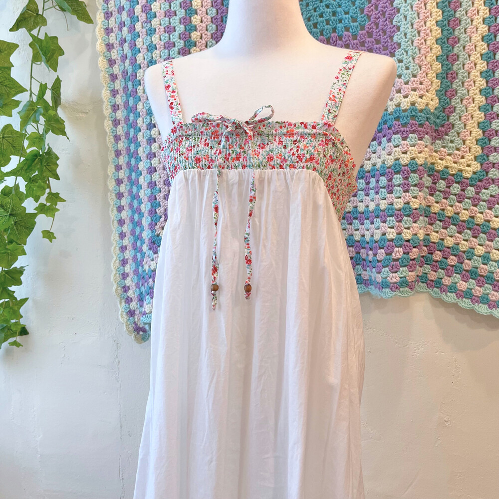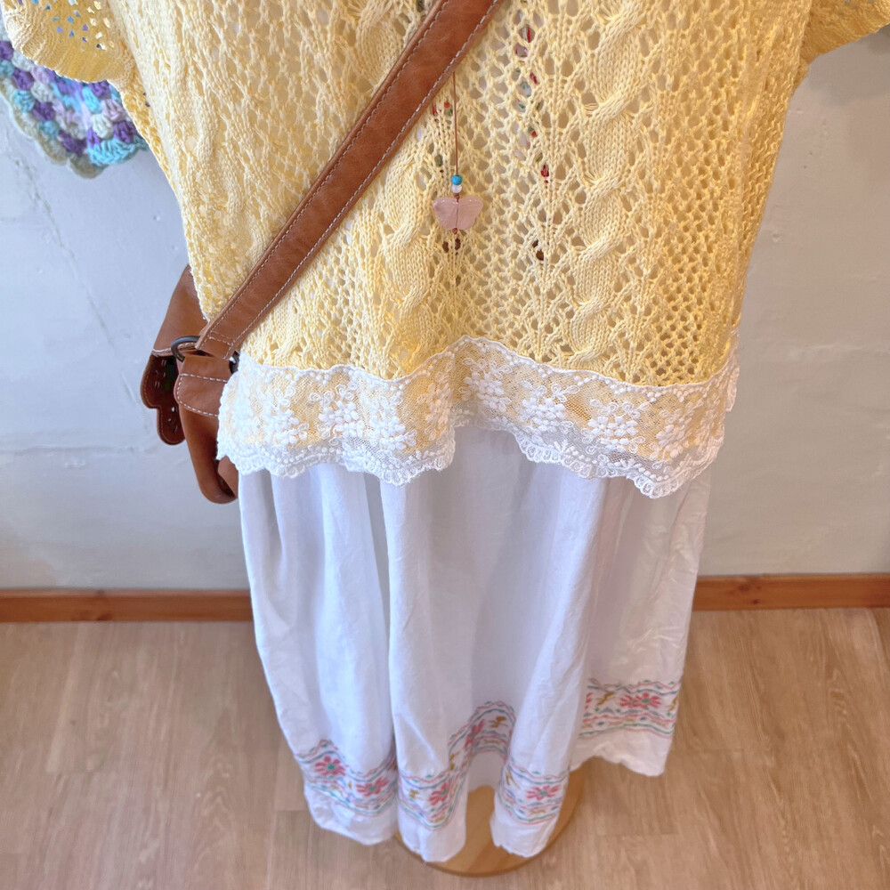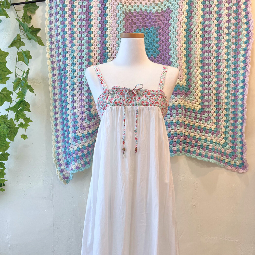 밑단 십자수 포인트의 코튼 끈원피스예요