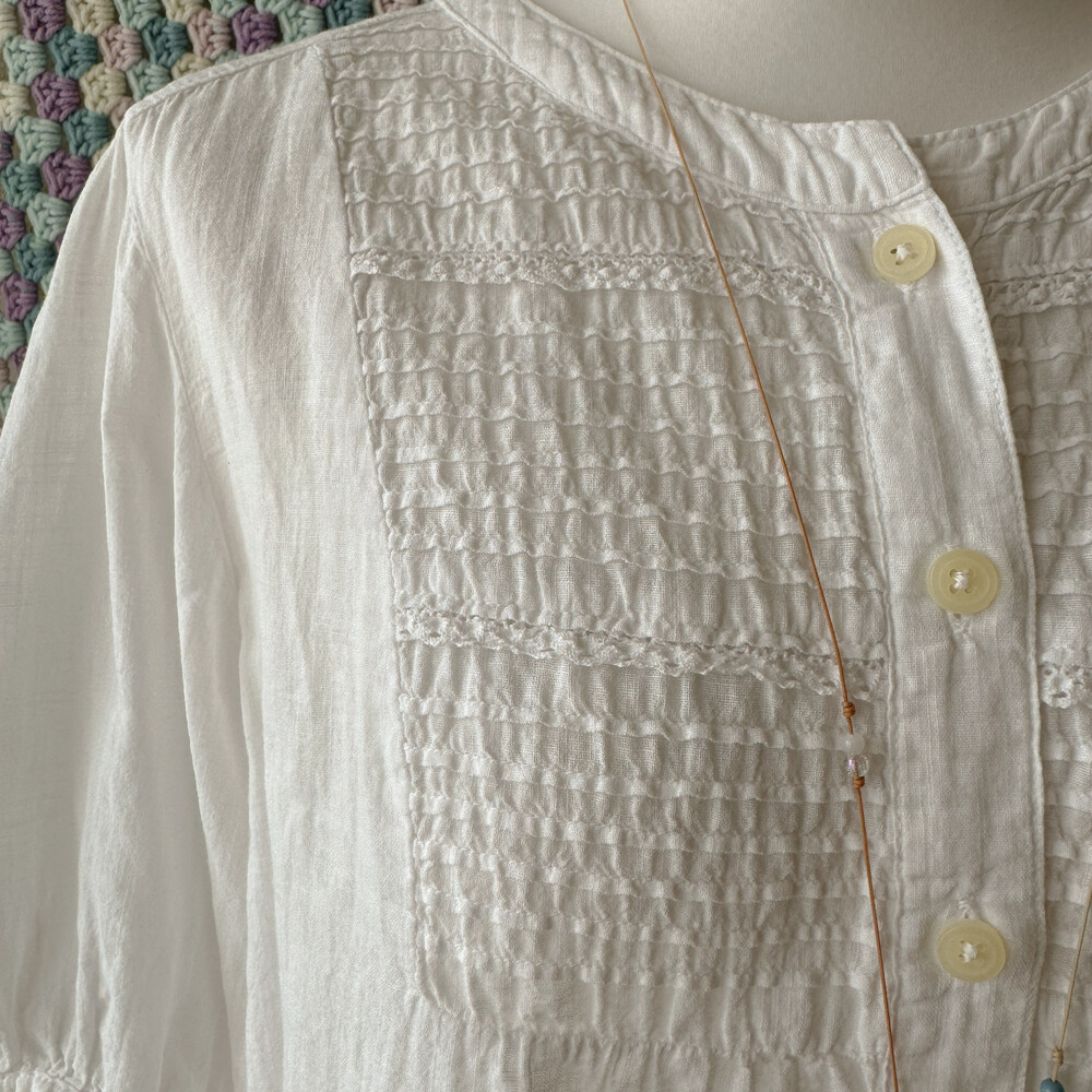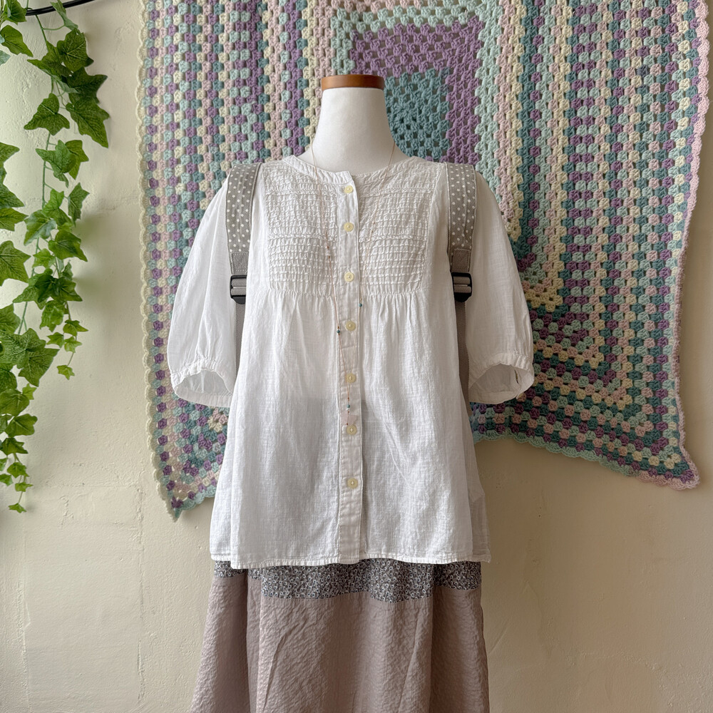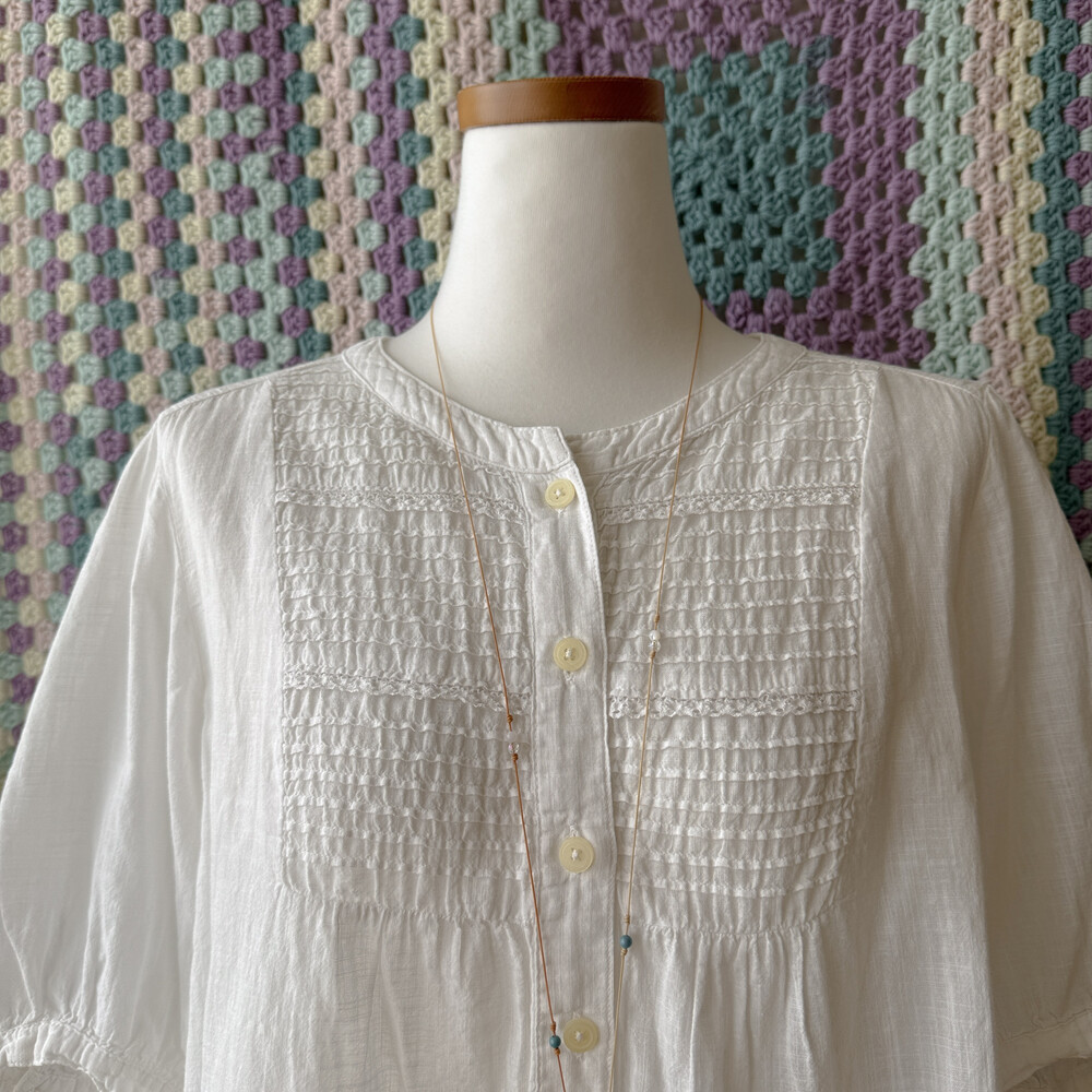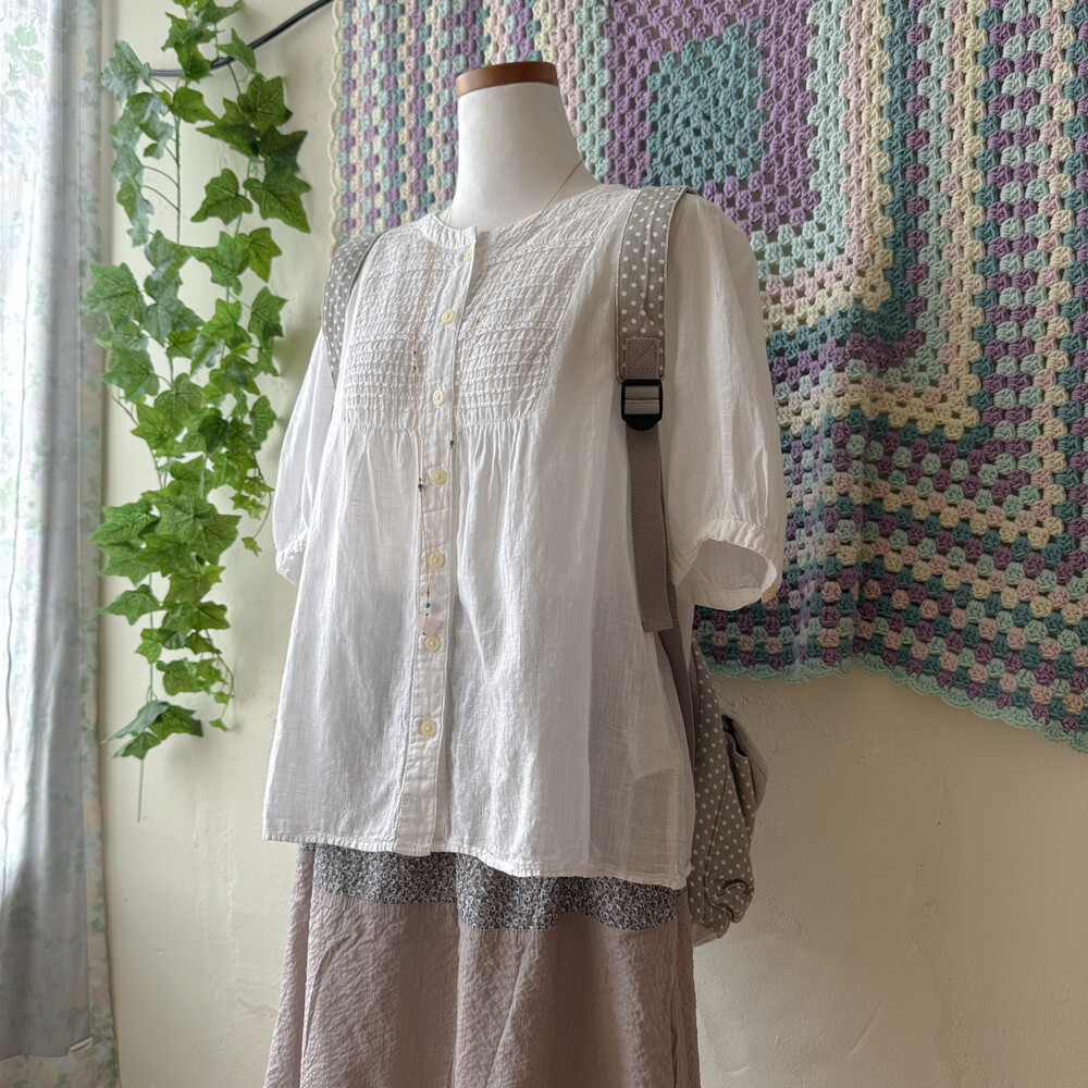 화이트 색감의 핀턱 블라우스예요