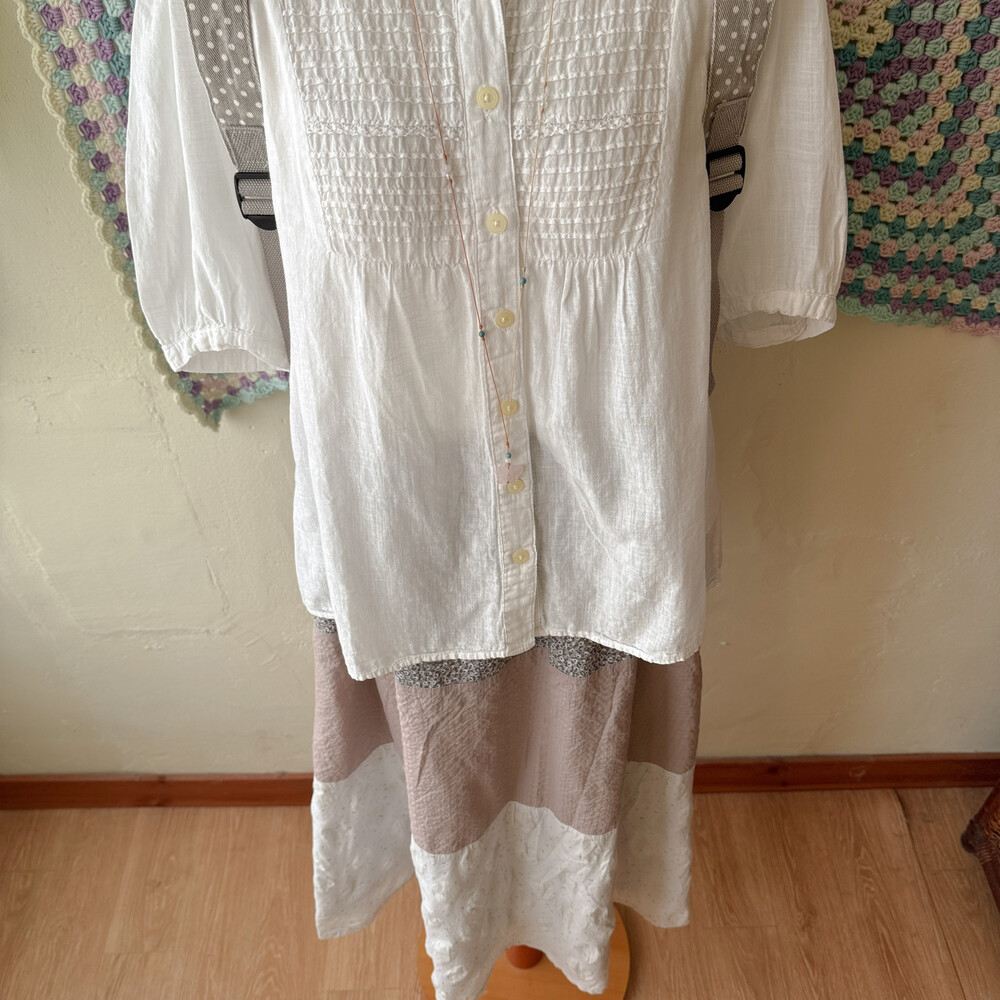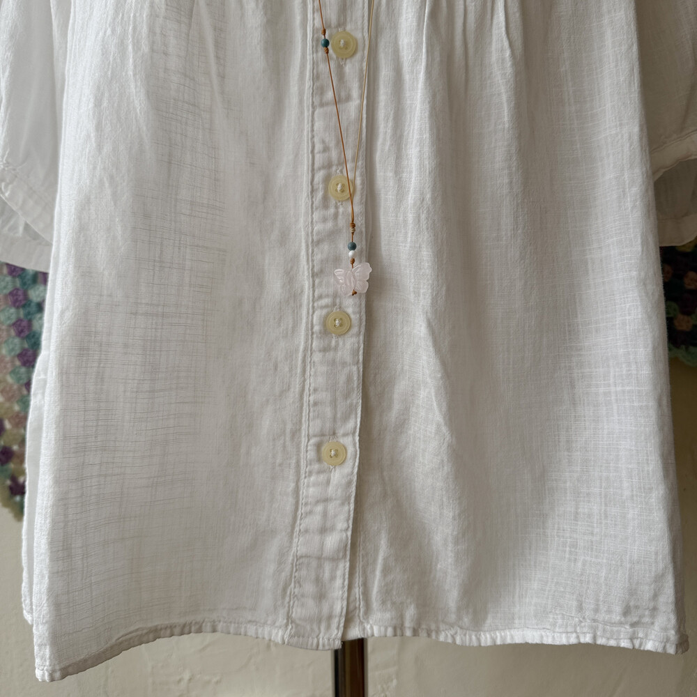 버튼업 디자인이구요, 깔끔하고 청초한 분위기가 나요!