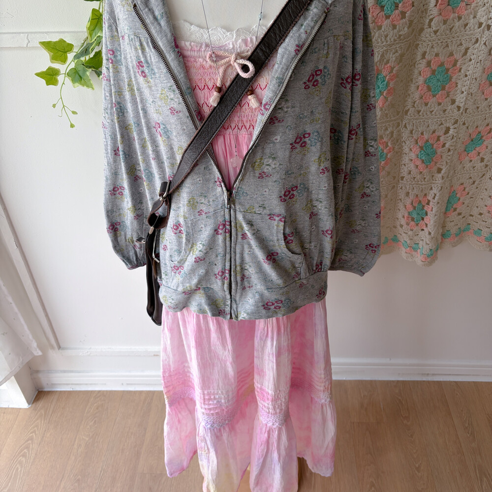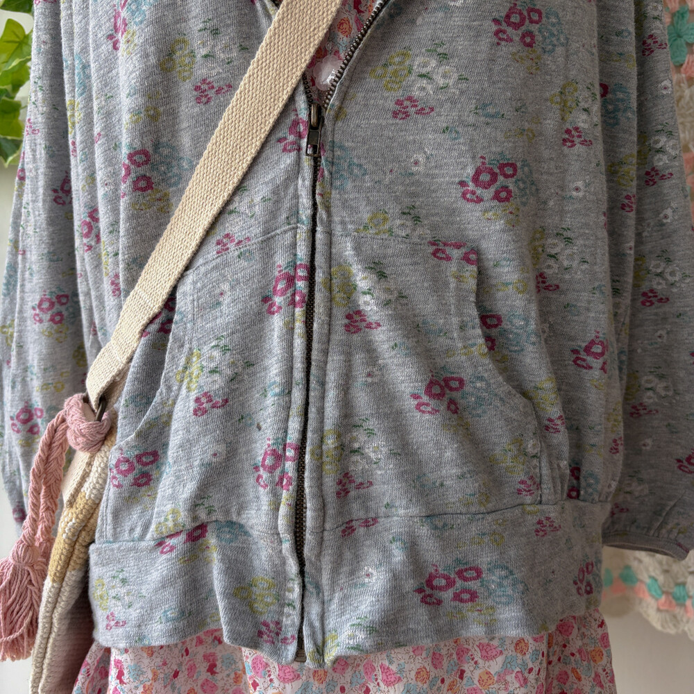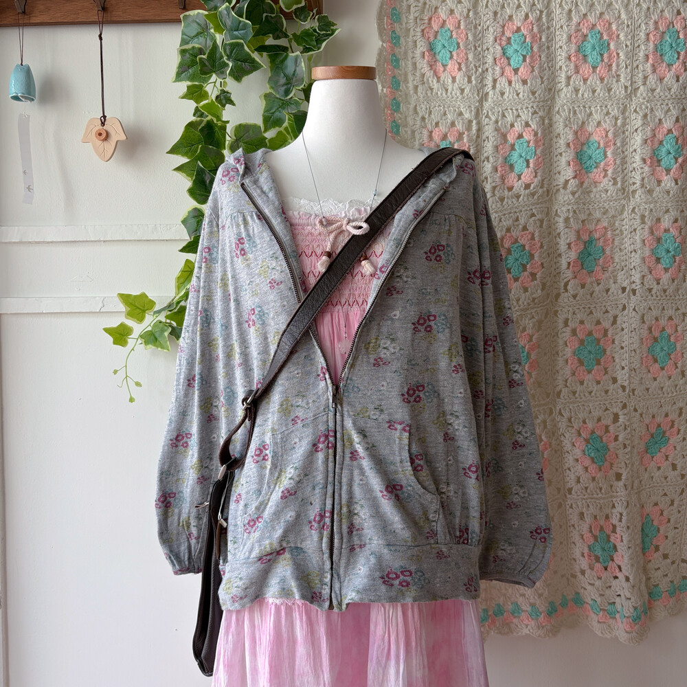 mori gray base flower hood zipup