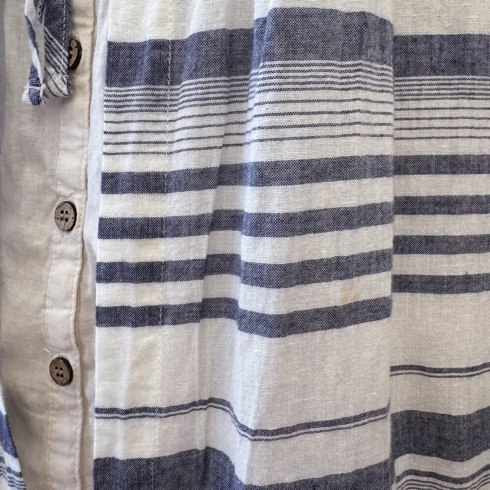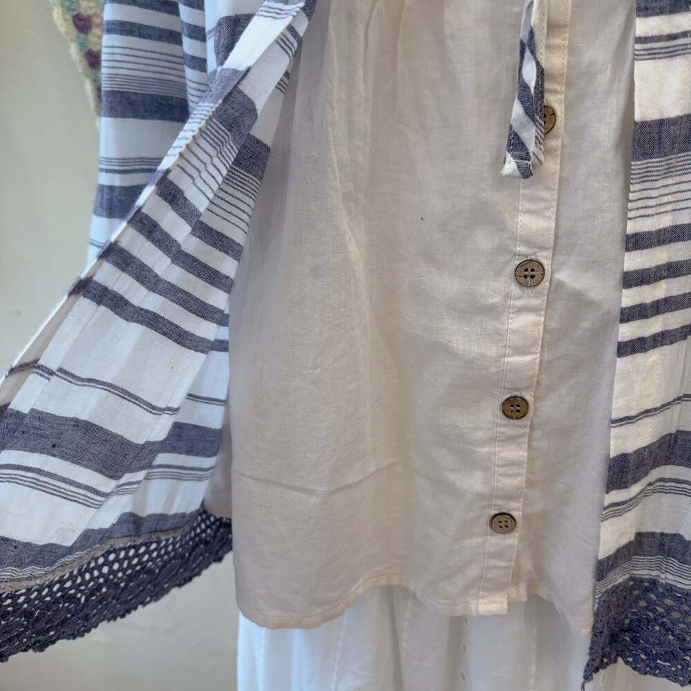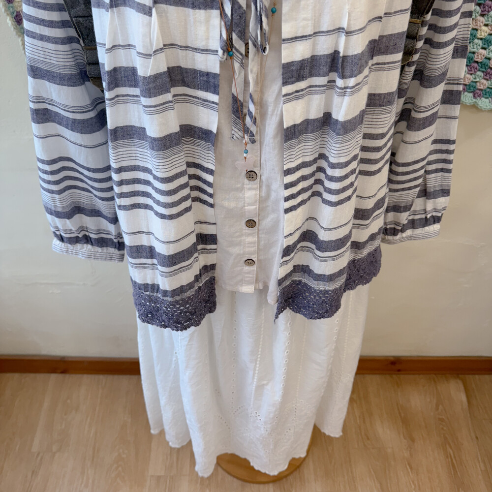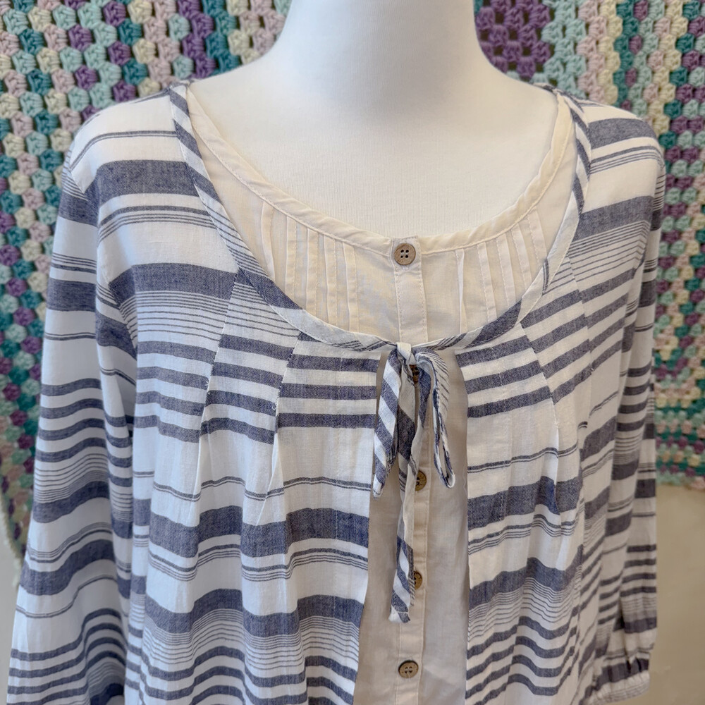 블루 퍼플 섞인 색감의 스트라이프 바선생 블라우스예요