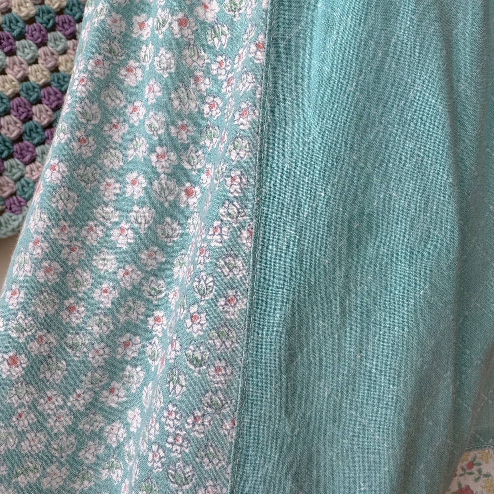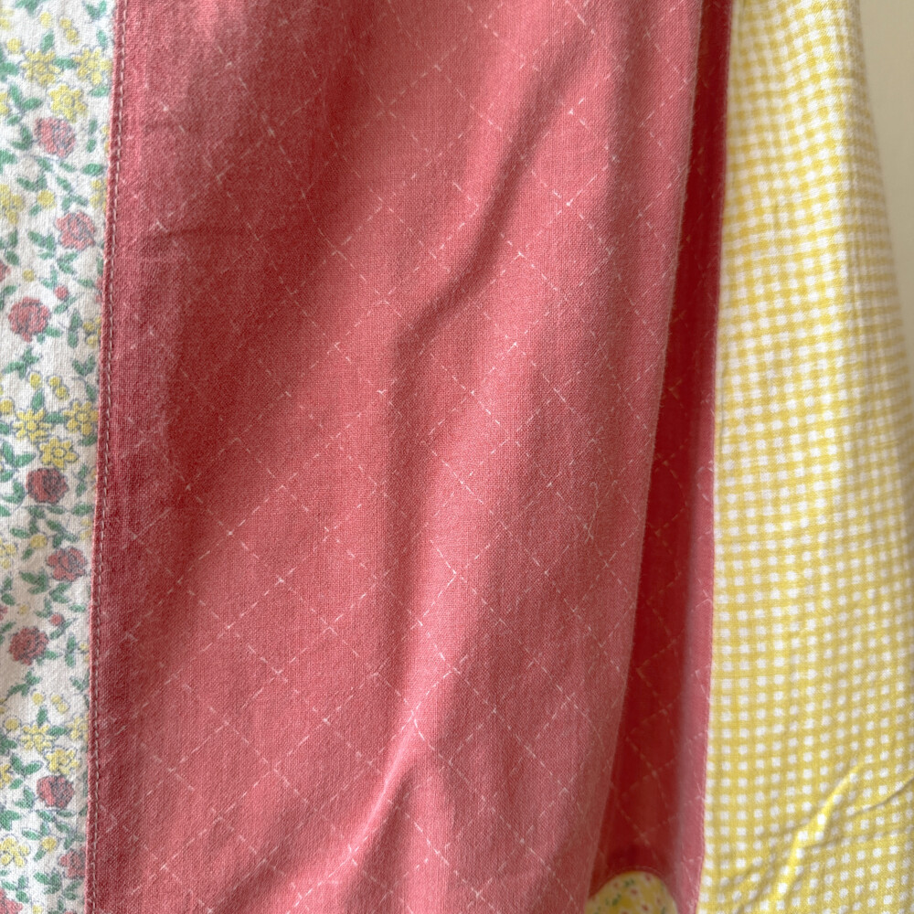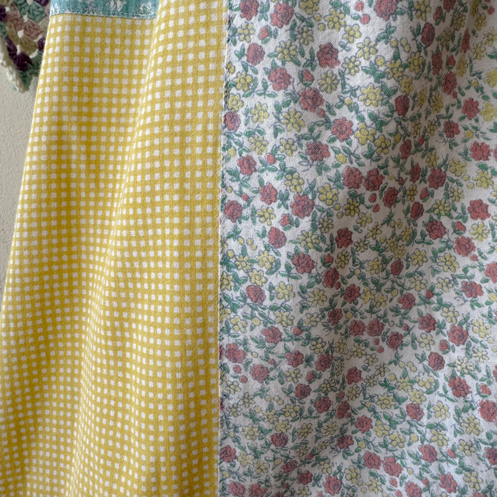 꽃무늬와 체크 패턴의 패치들이 조합되어 있어요