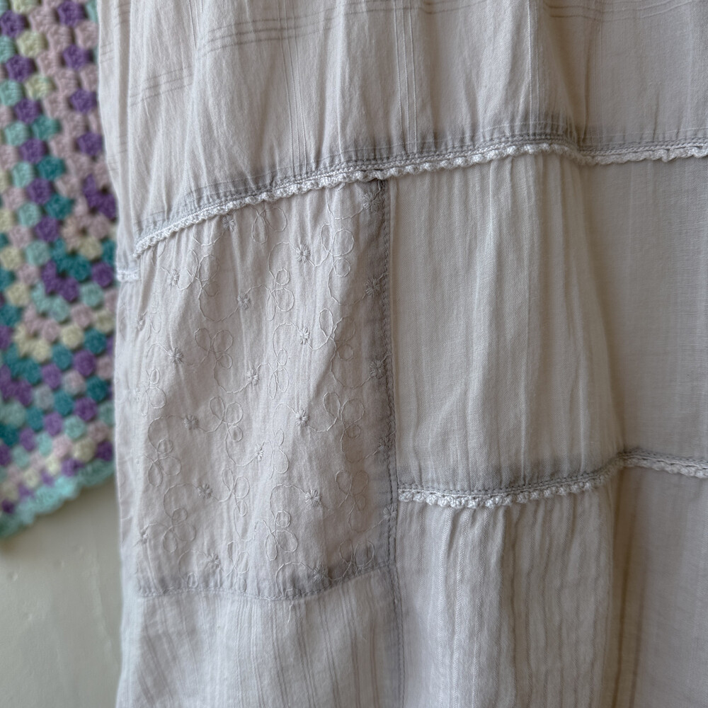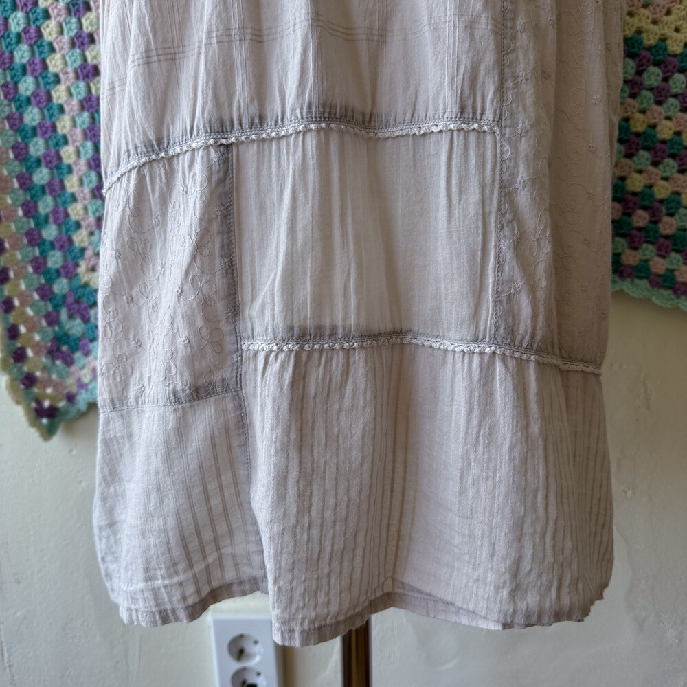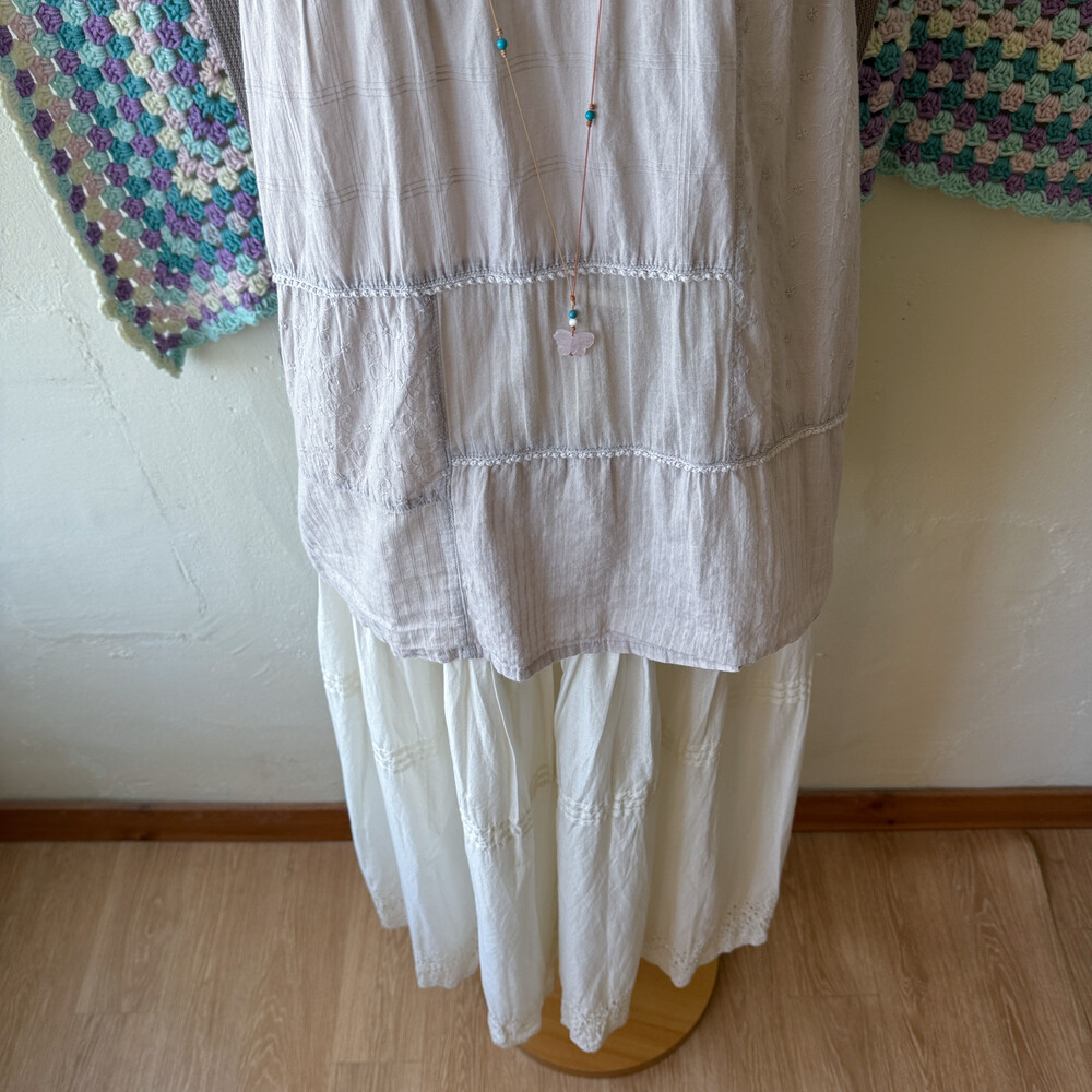 뮤트한 그레이 색감의 패치워크 블라우스예요