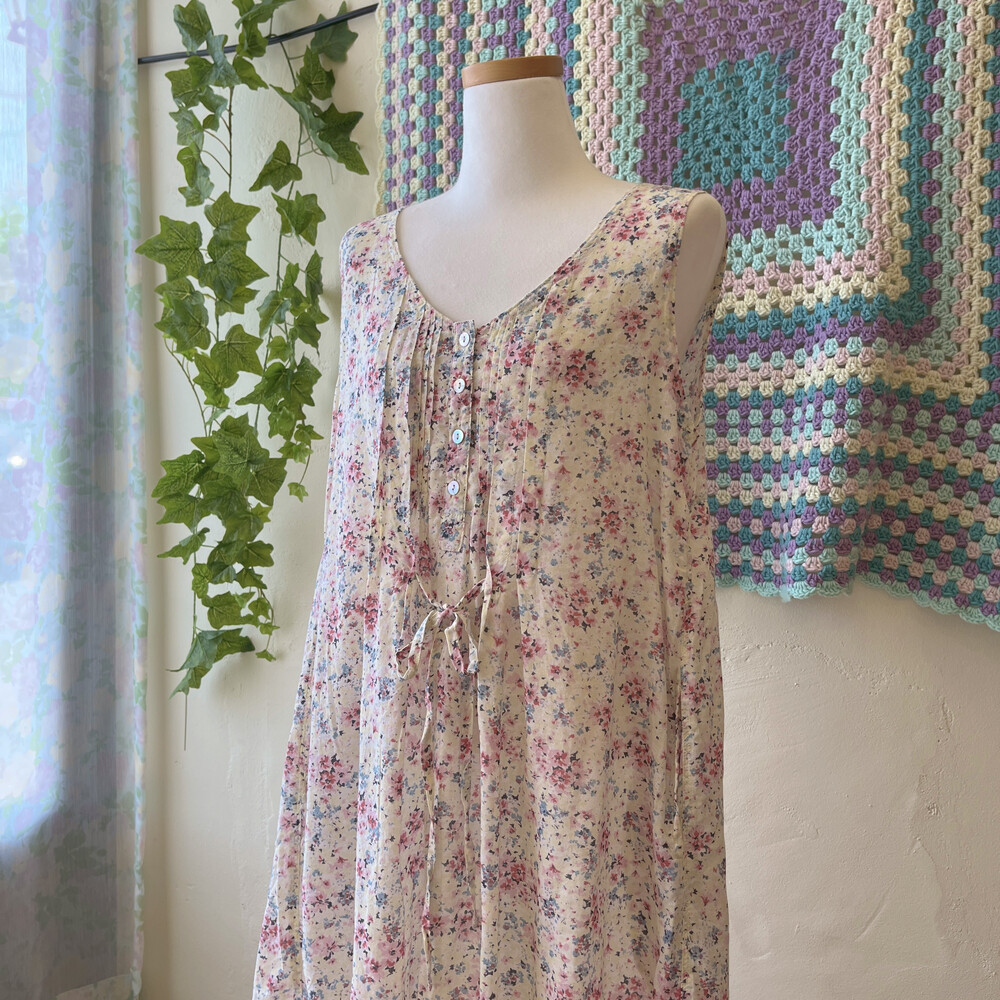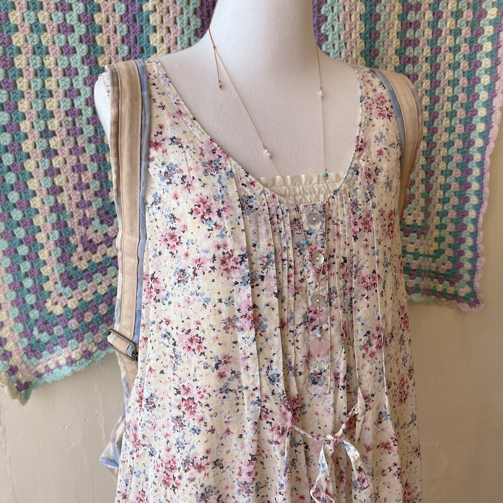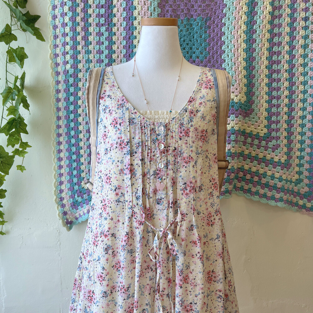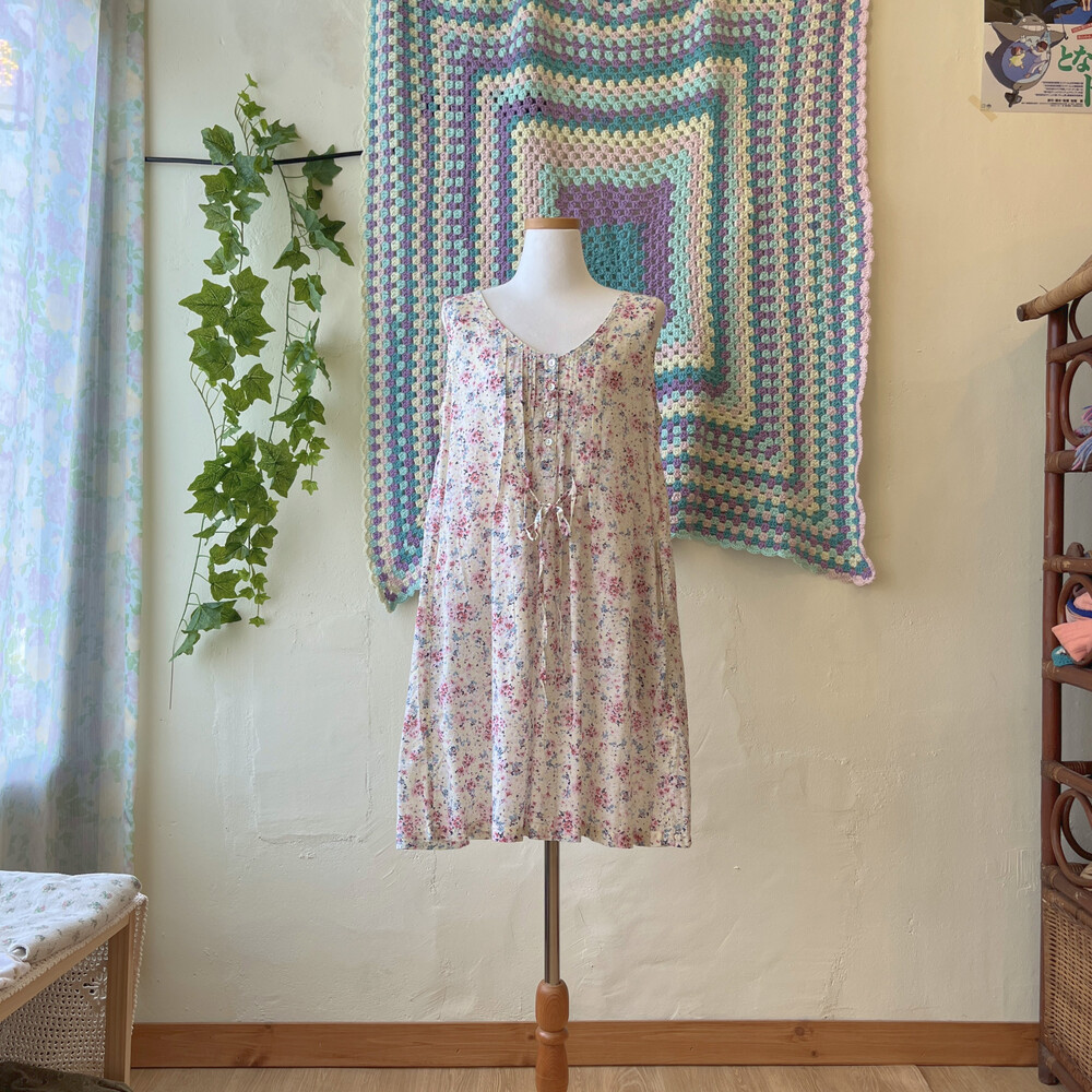 분홍, 소라 색감의 수채화 민소매 원피스예요