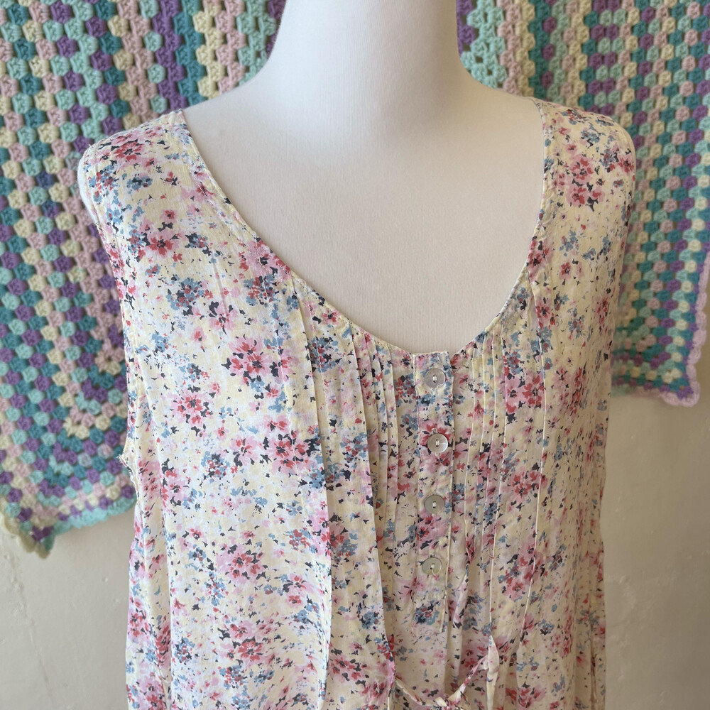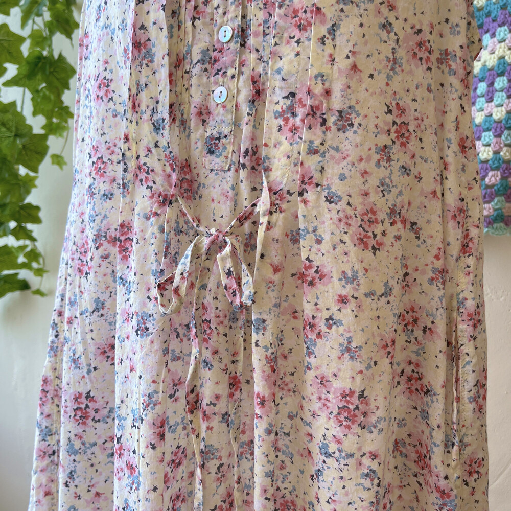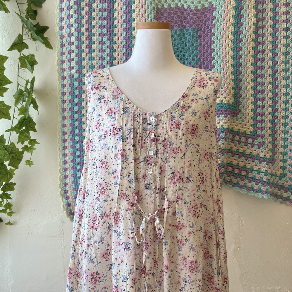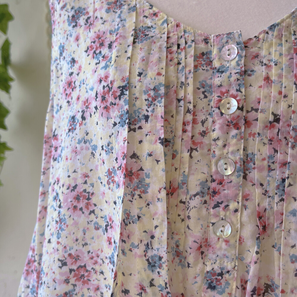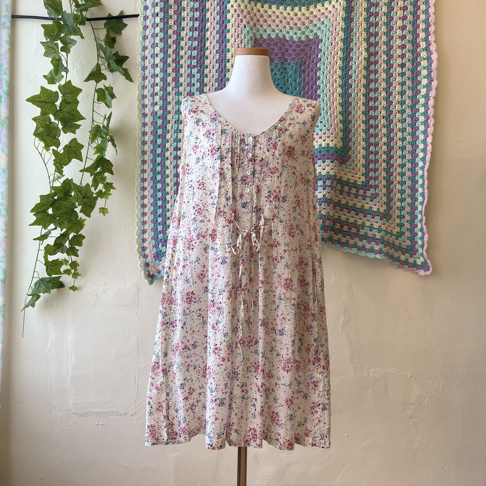 분홍, 소라 색감의 수채화 민소매 원피스예요