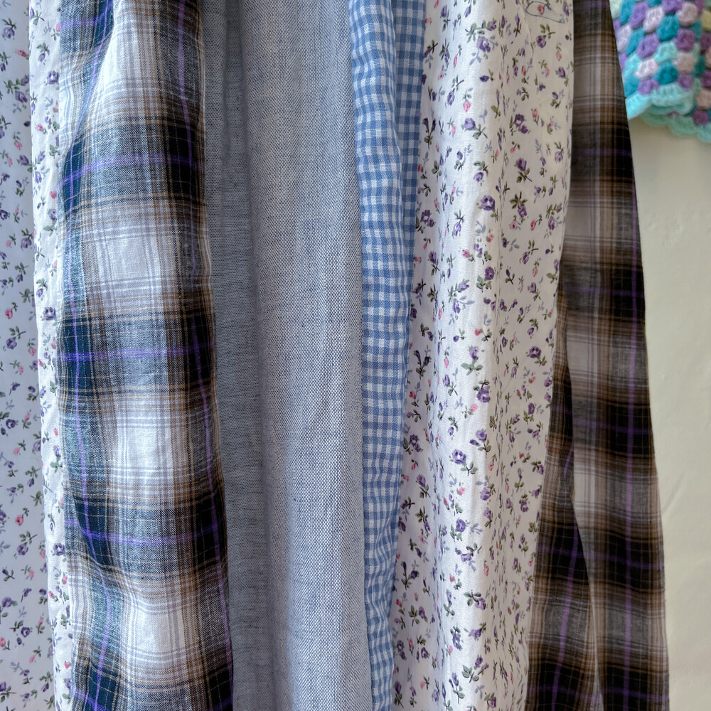 체크, 꽃무늬의 코지한 분위기 패치들로 조합되어 있어요