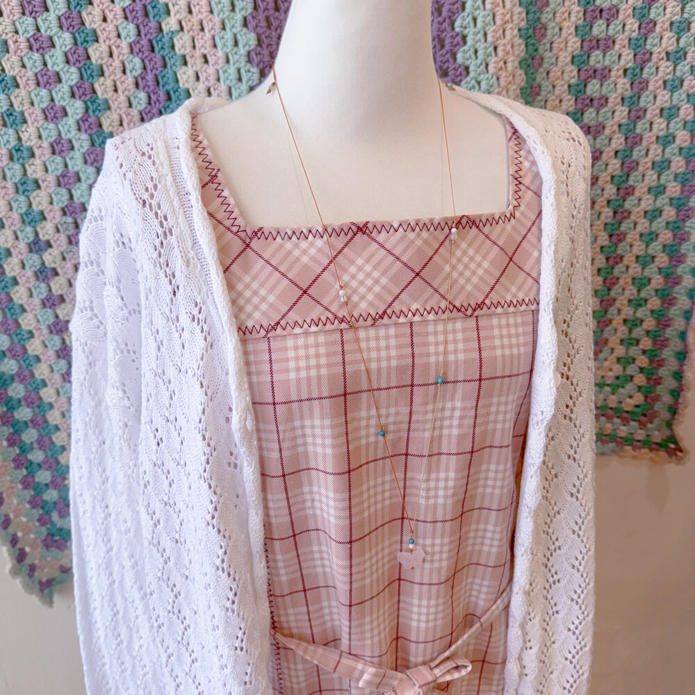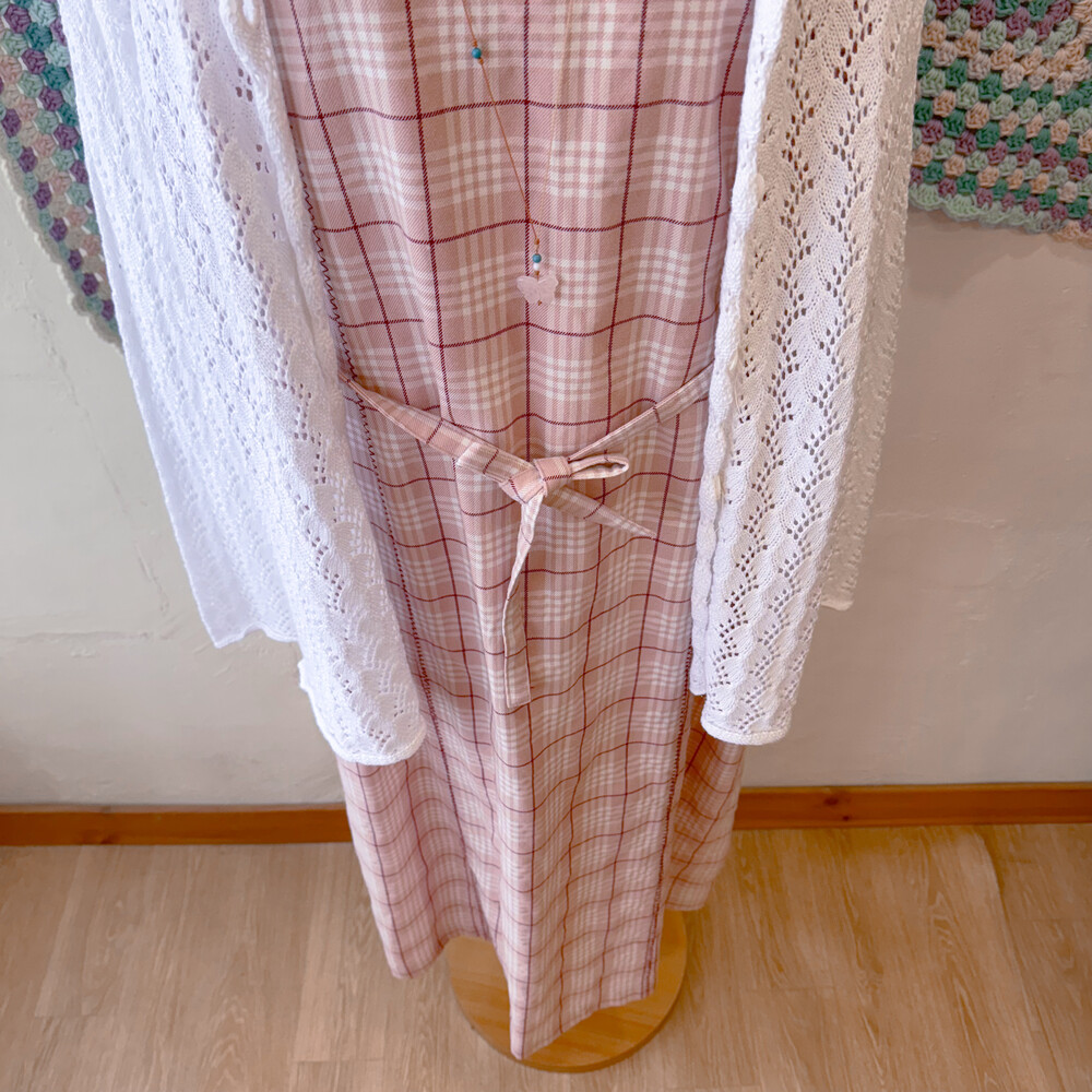 오버롤 같은 느낌의 원피스예요! 블라우스나 티셔츠와 레이어드해주셔도 예뻐요
