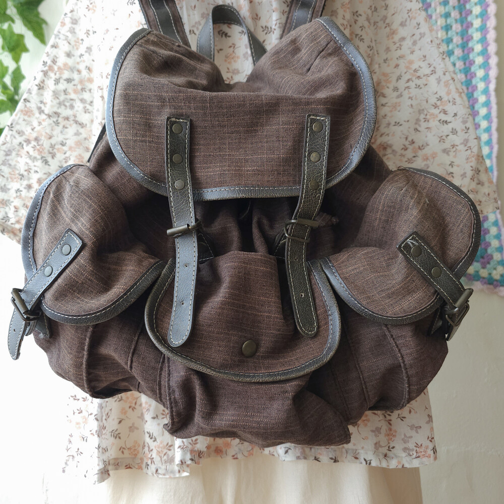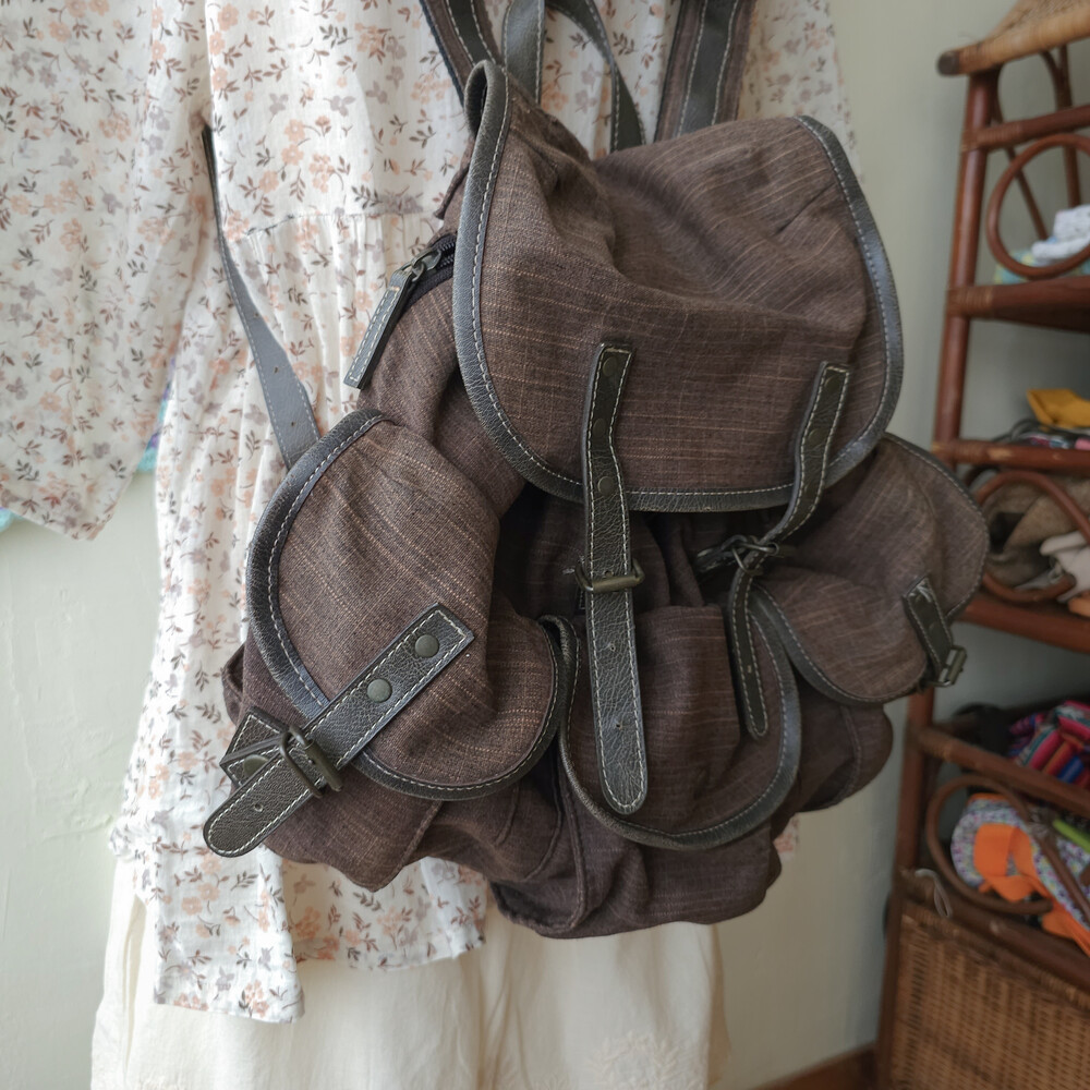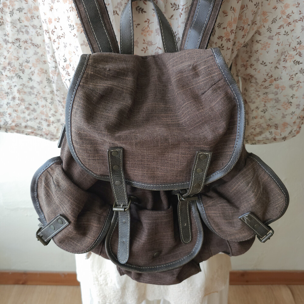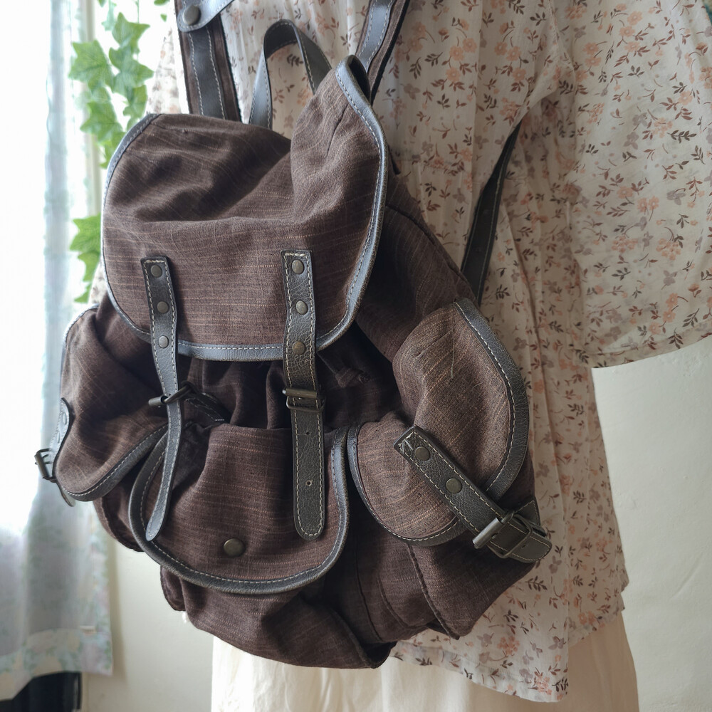 초콜릿 브라운 색감의 3포켓 백팩이에요