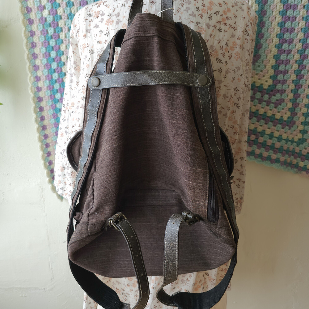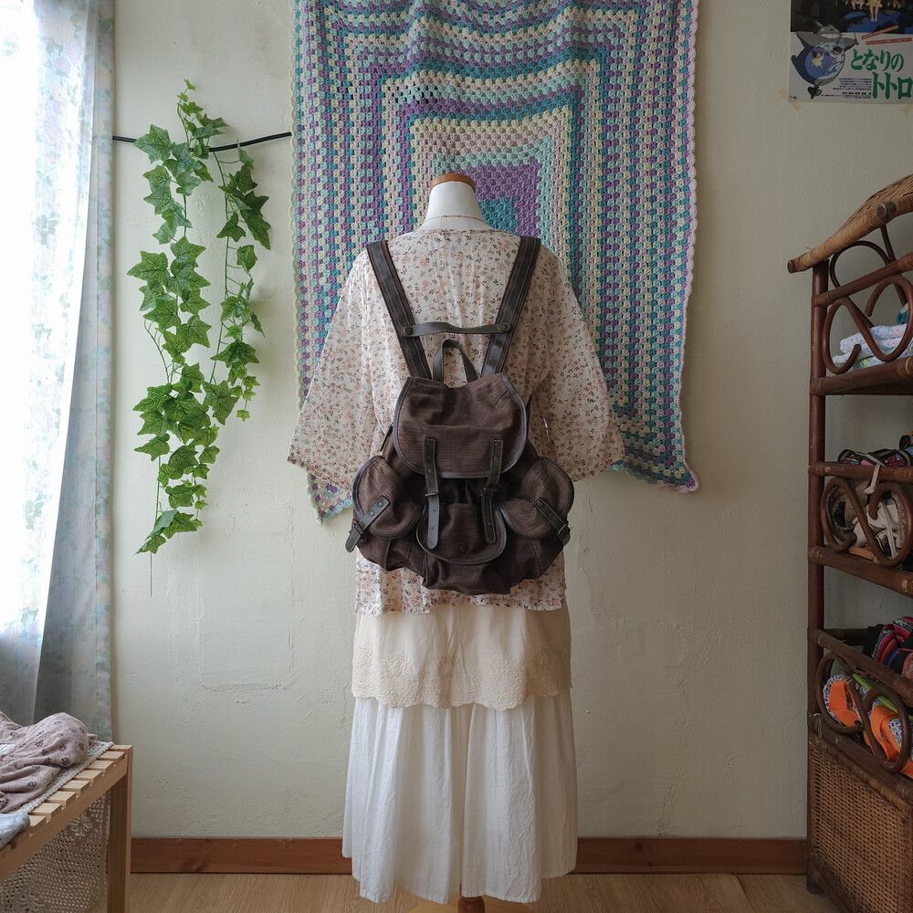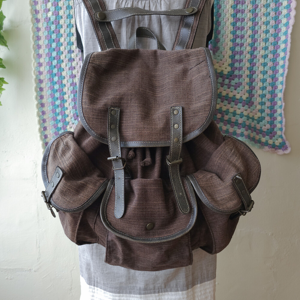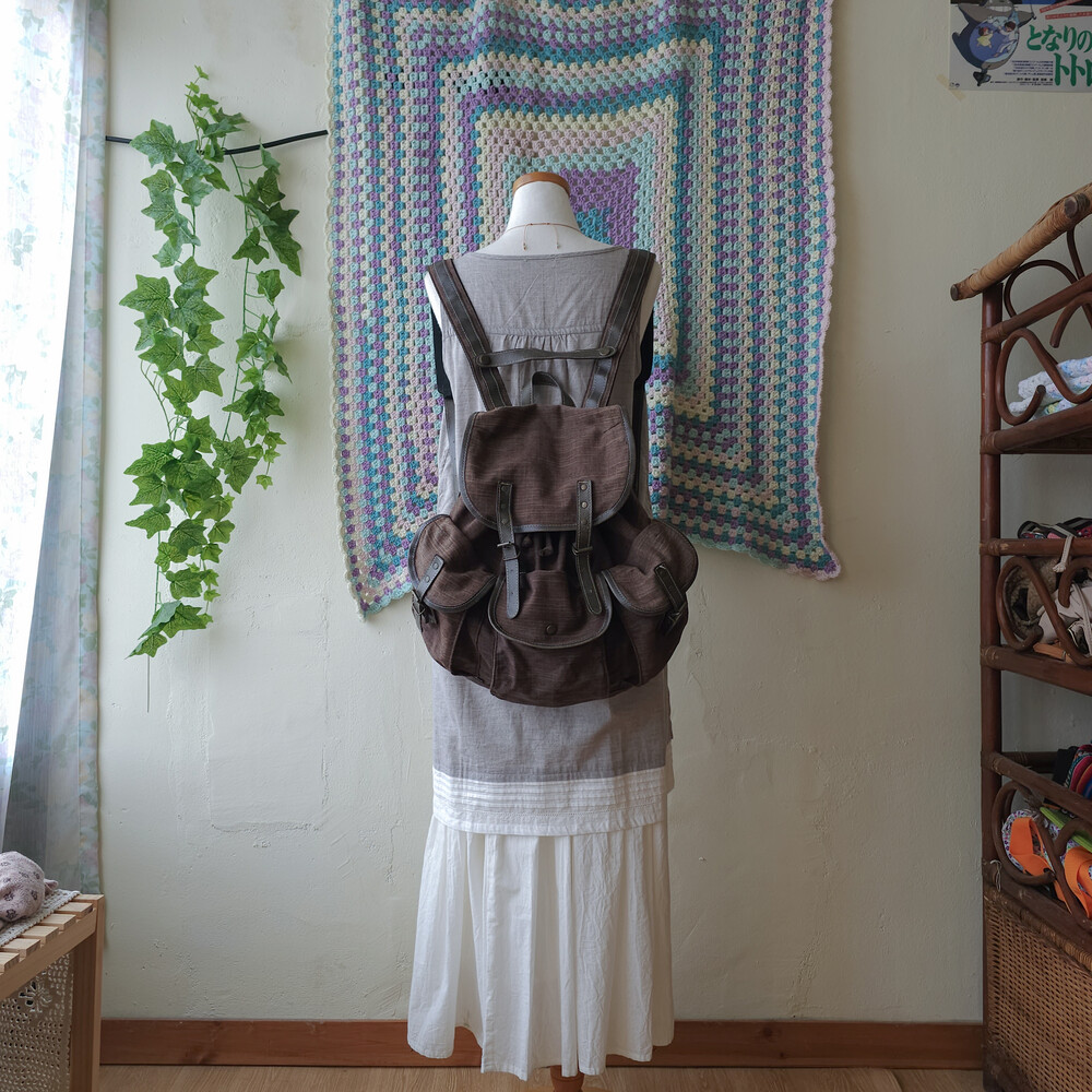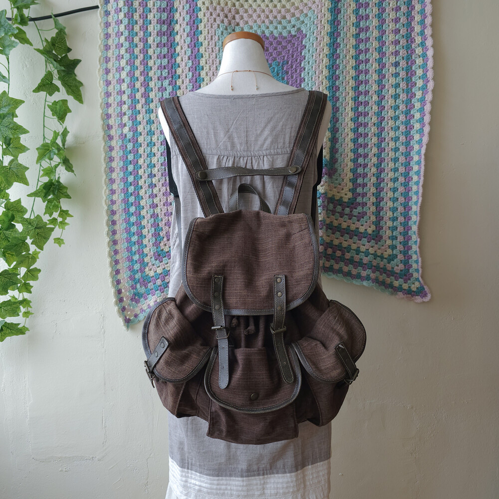 초콜릿 브라운 색감의 3포켓 백팩이에요