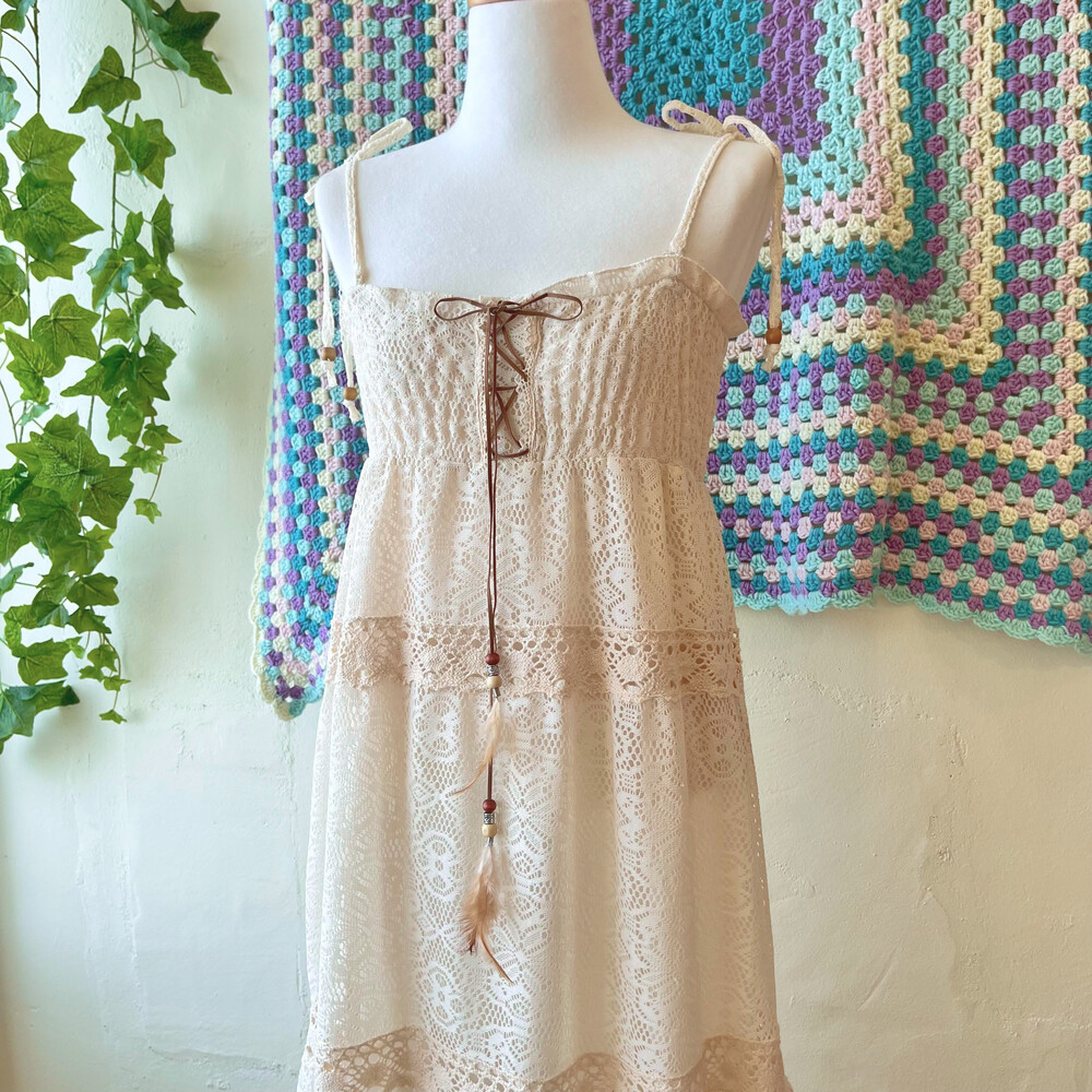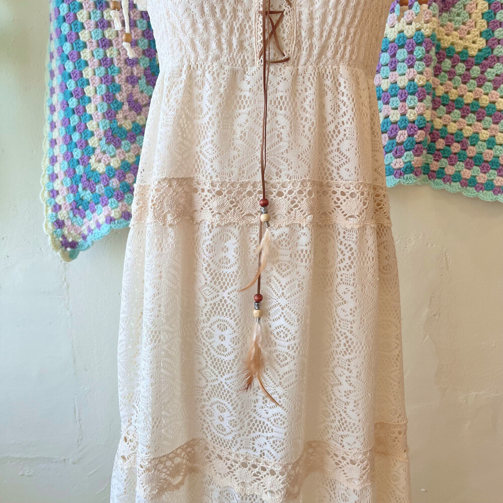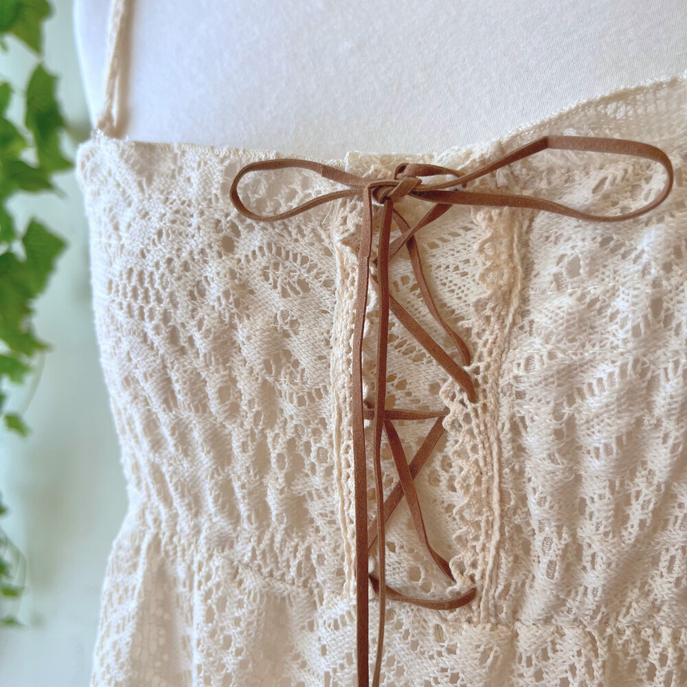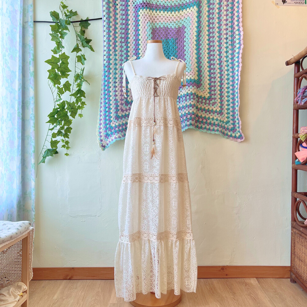 아이보리 색감의 레이스 끈원피스예요