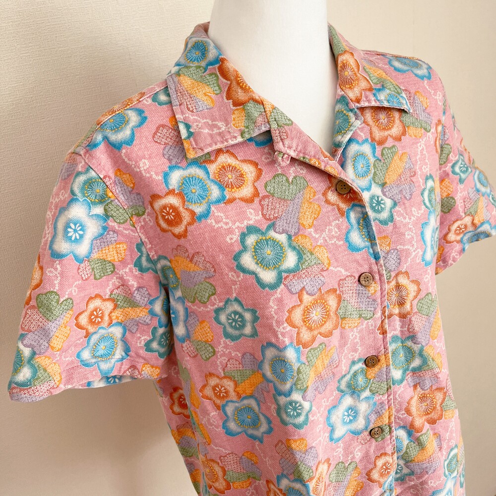cherry blossom linen collar shirts