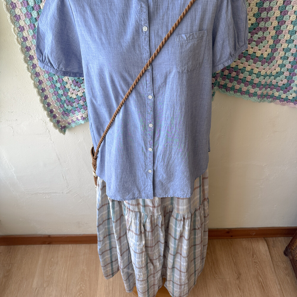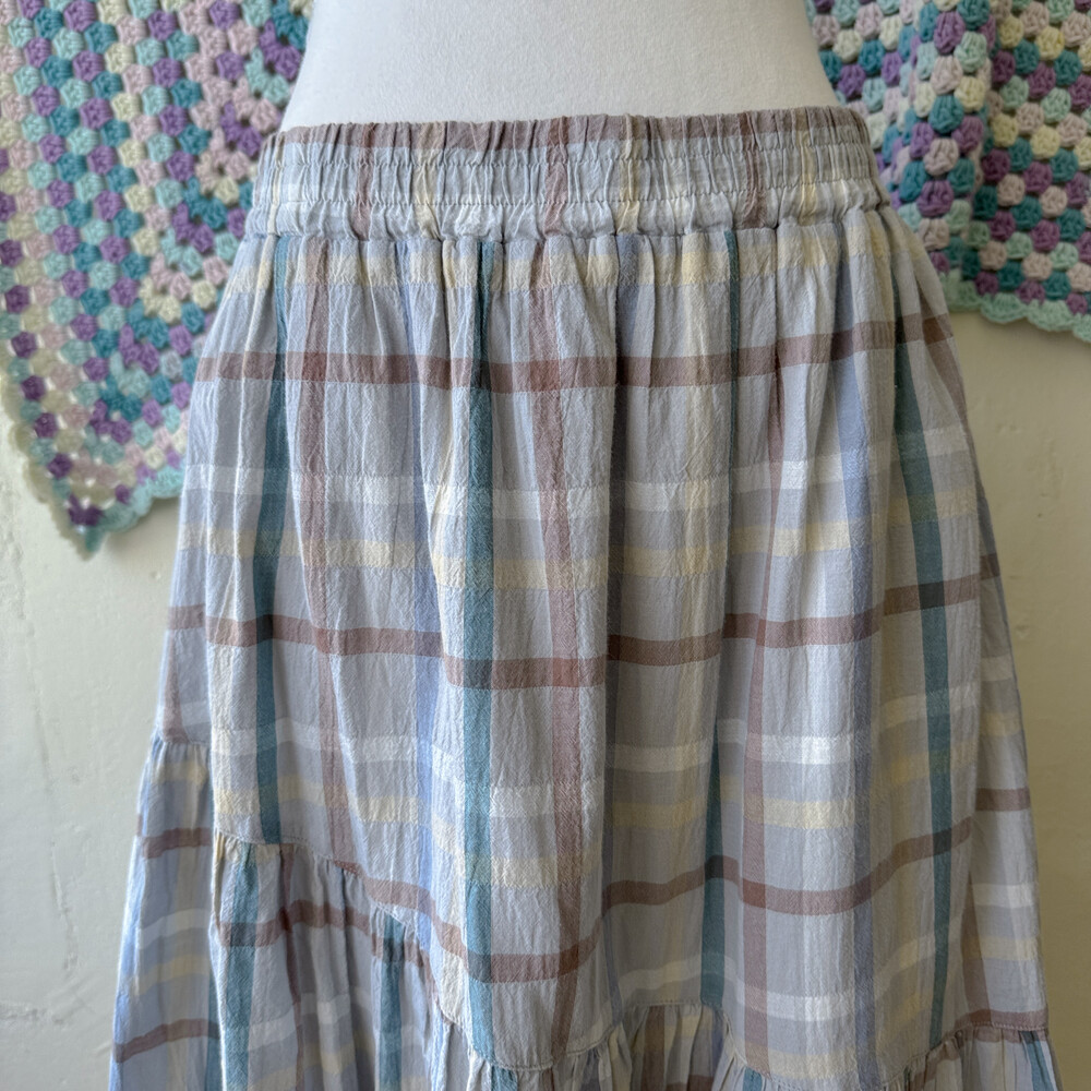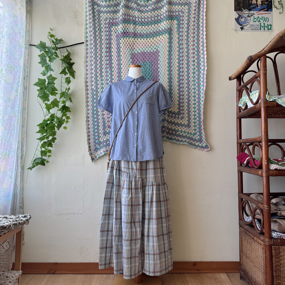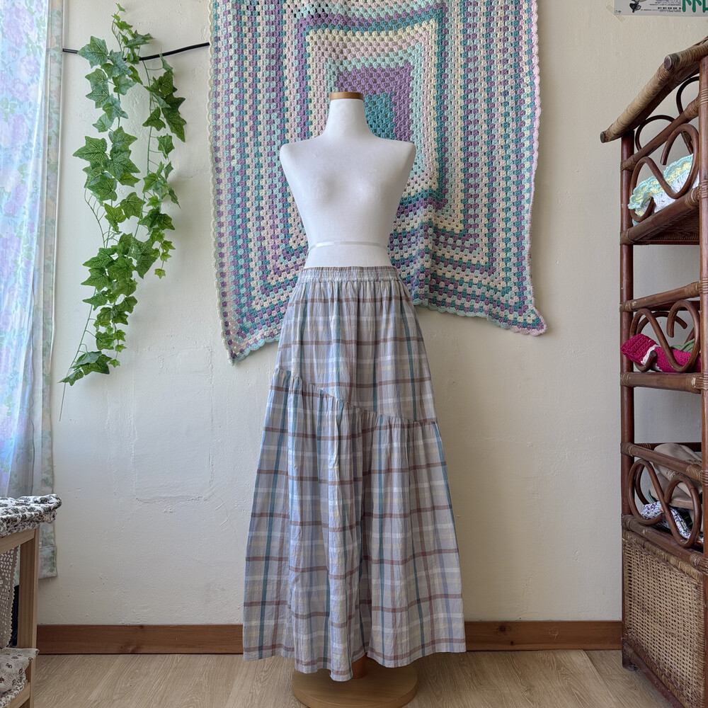 그레이 바탕의 체크 코튼 스커트예요