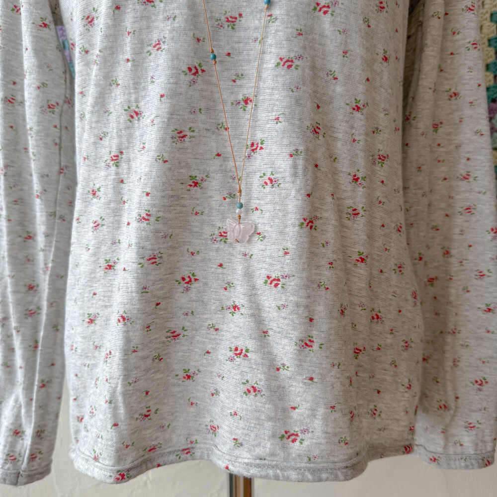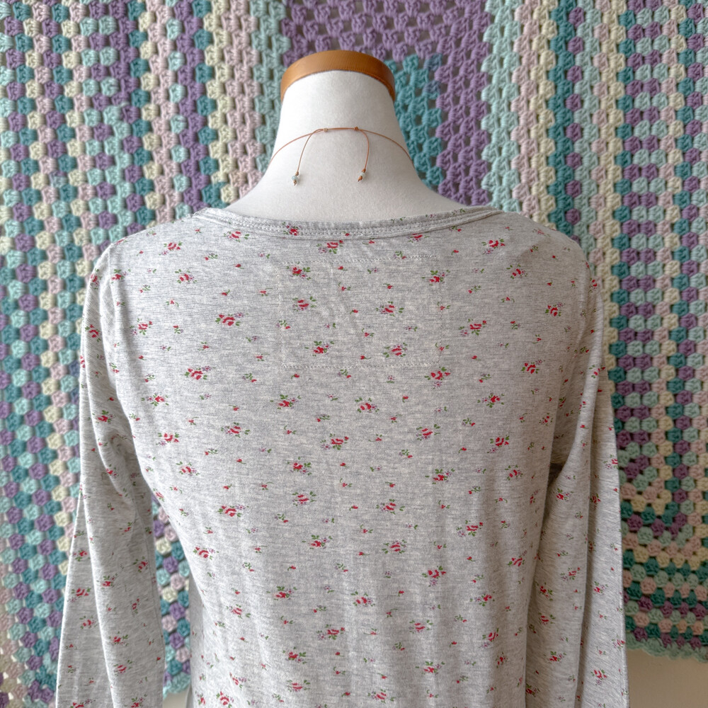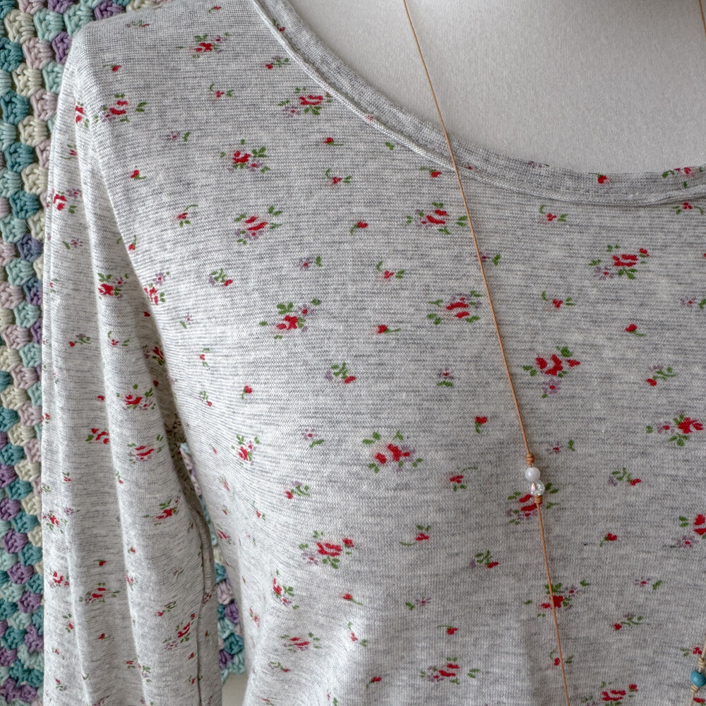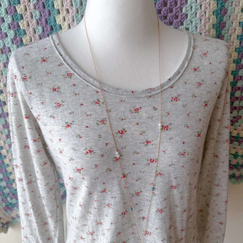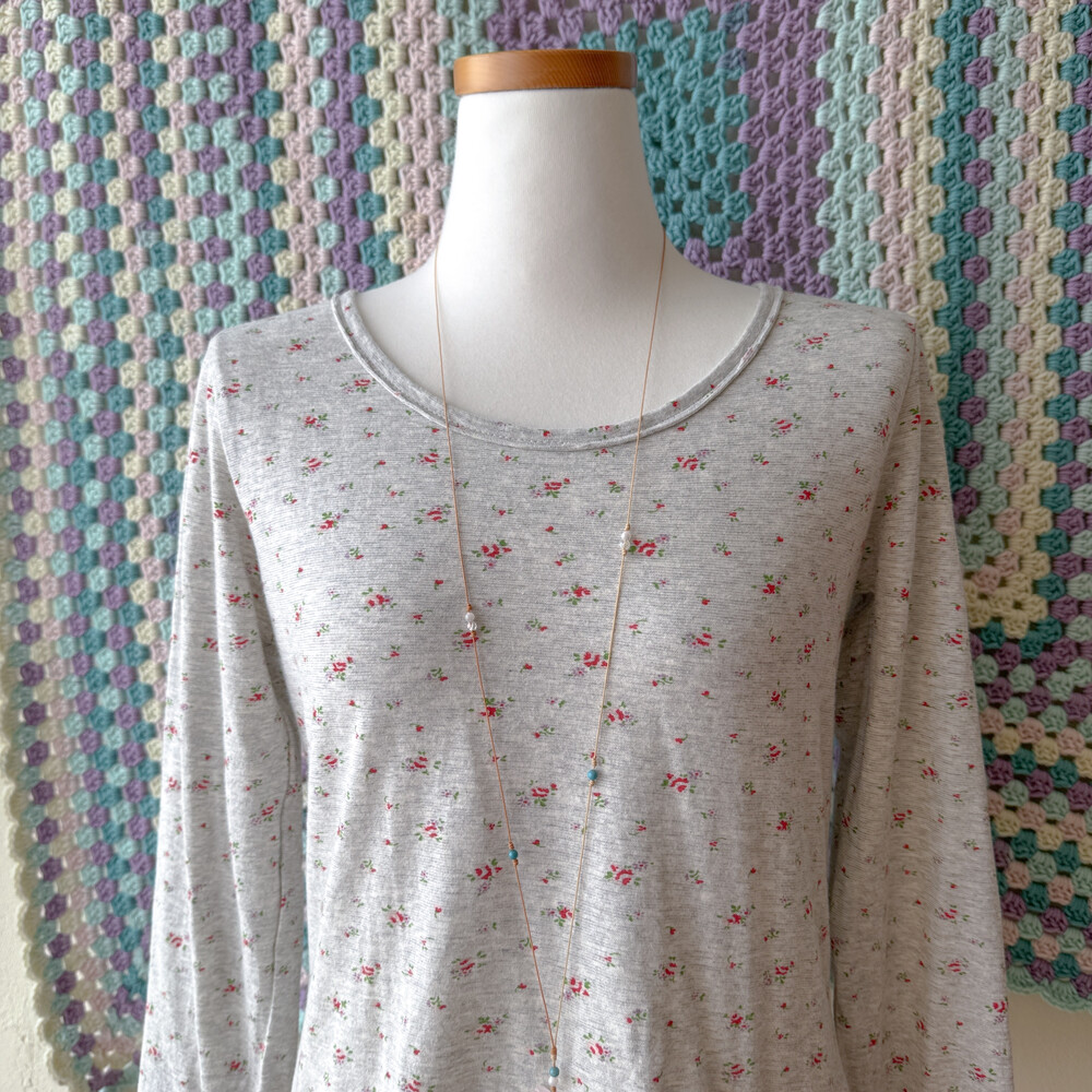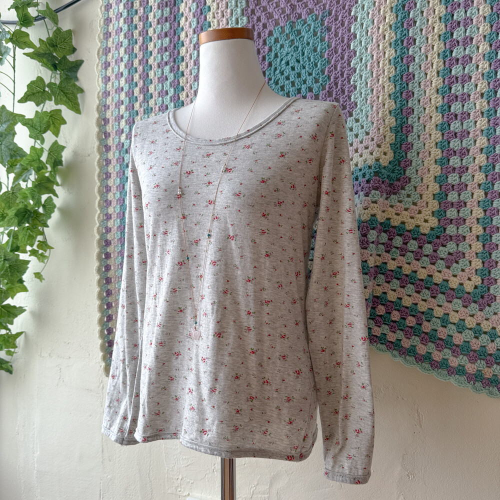 연그레이 색감의 얇은 잔꽃 긴팔 티셔츠예요