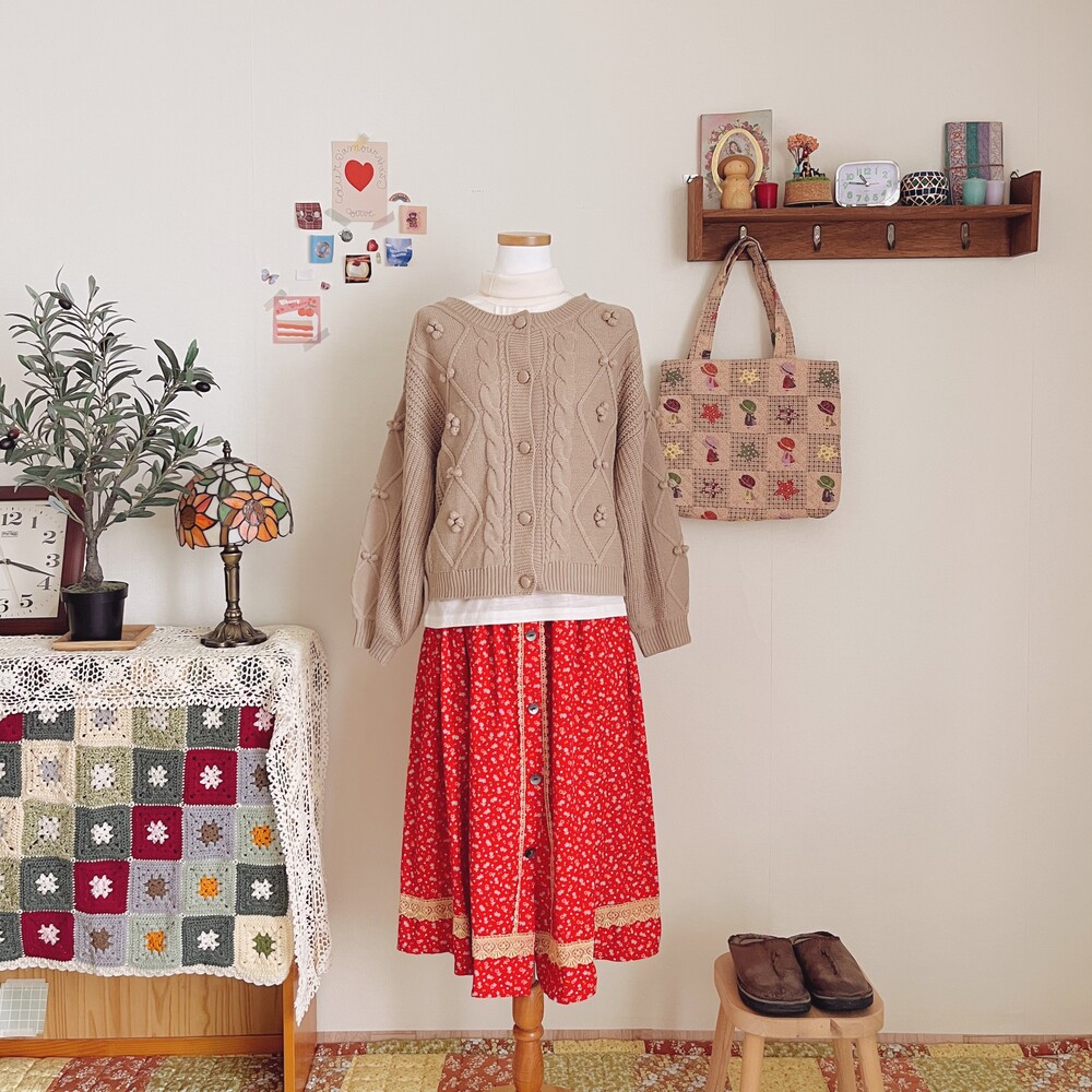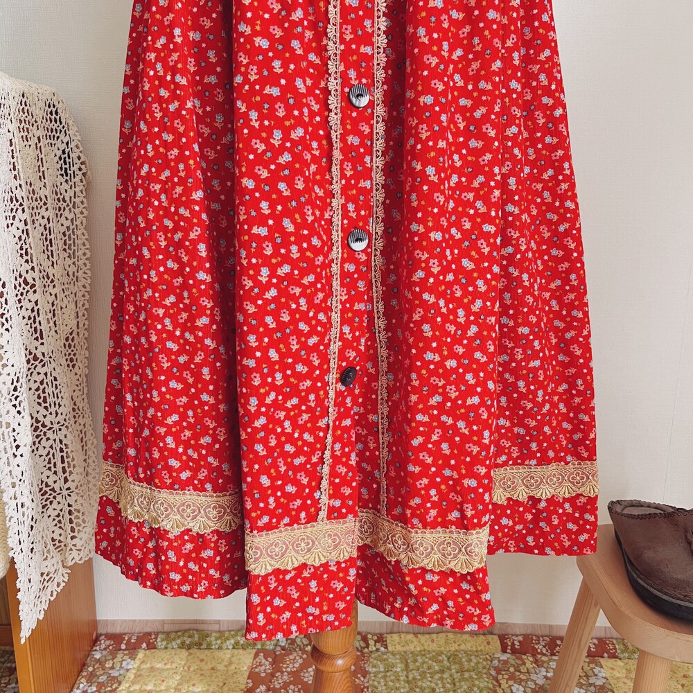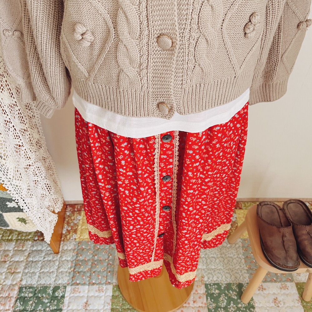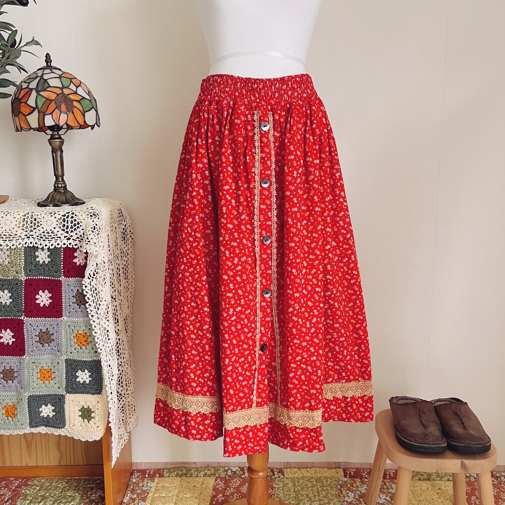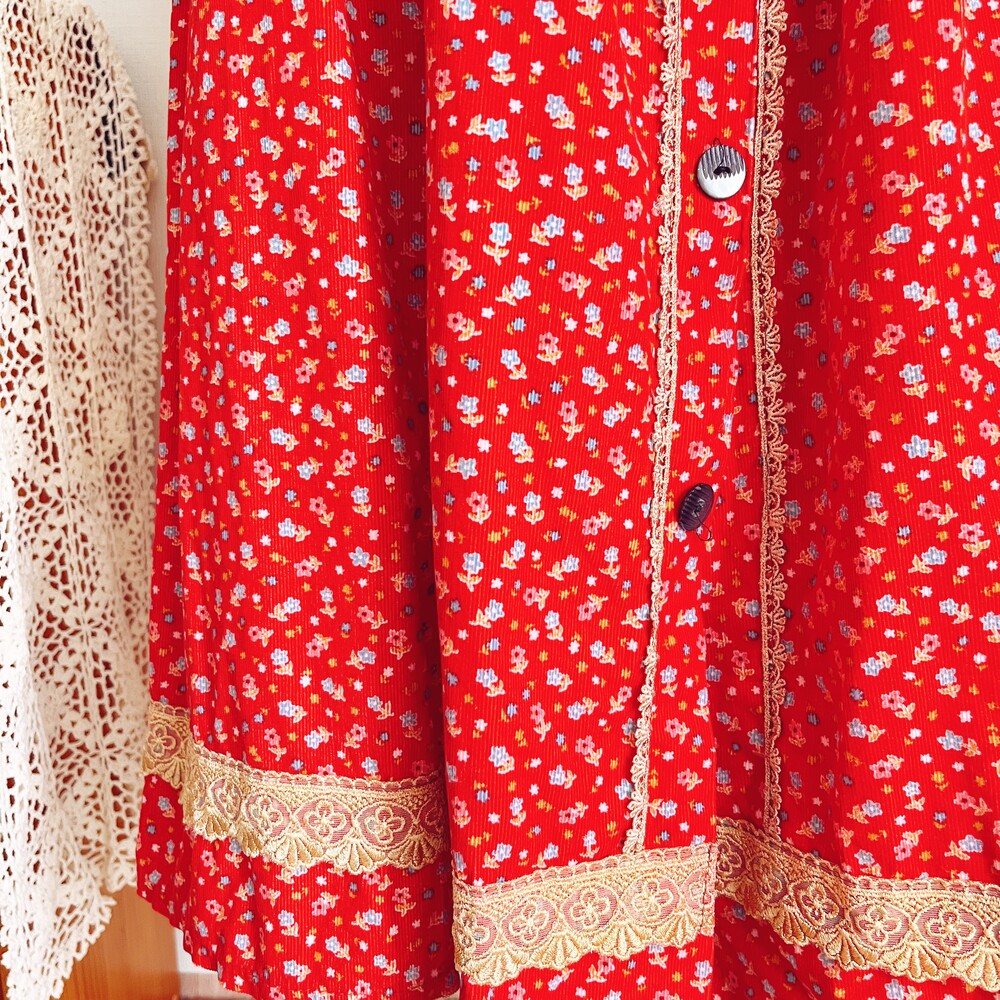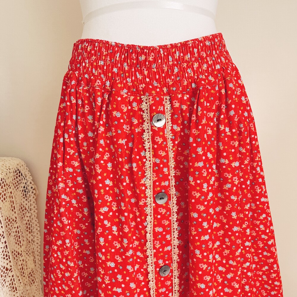 잔 코듀로이 소재의 레드 잔꽃 스커트예요