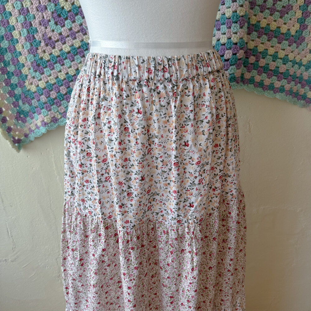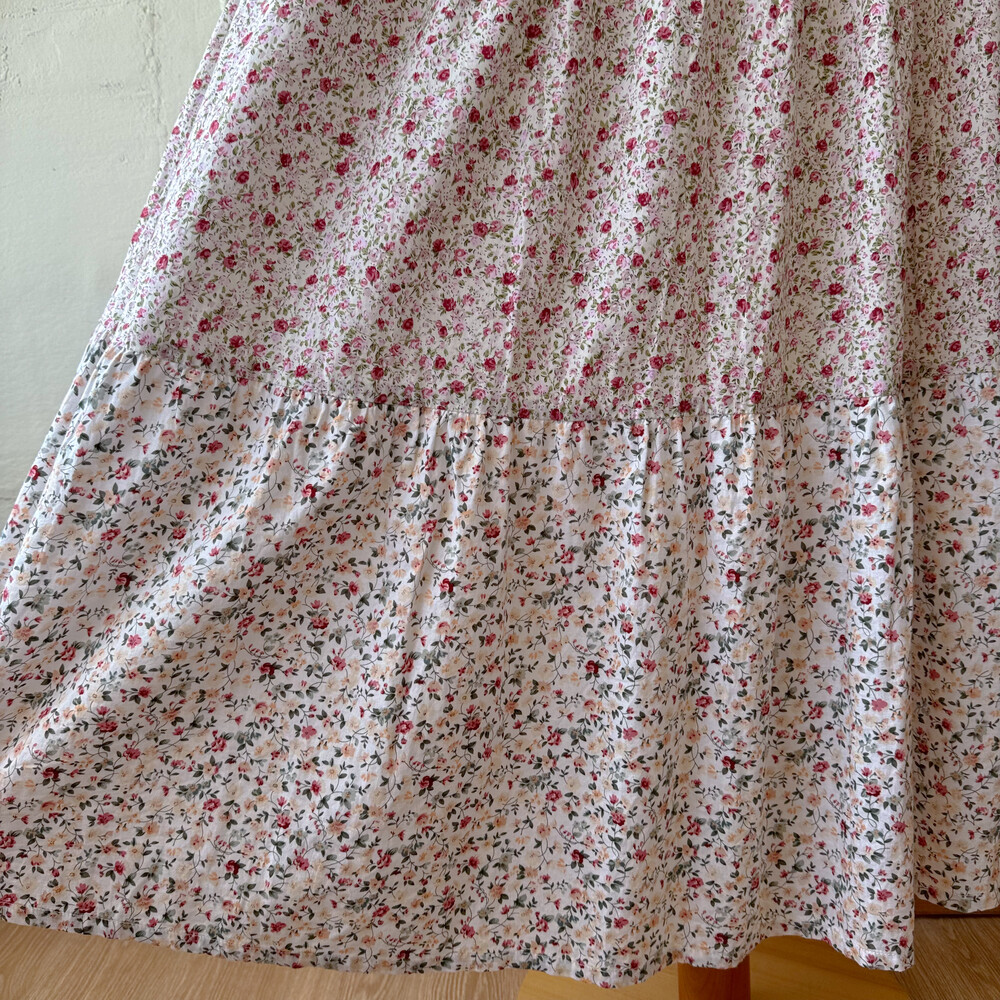 봄 느낌 가득한 꽃무늬 패치 스커트예요