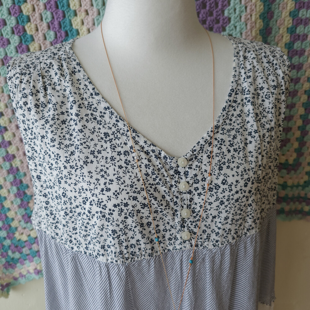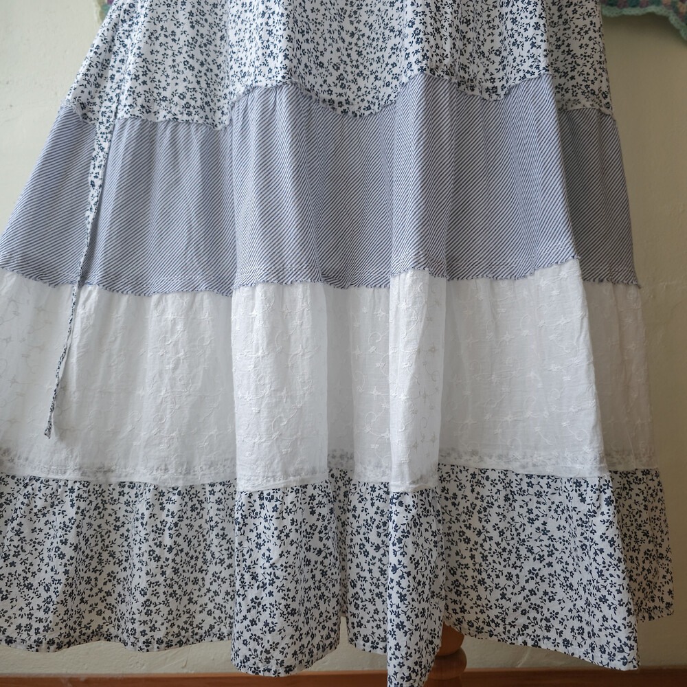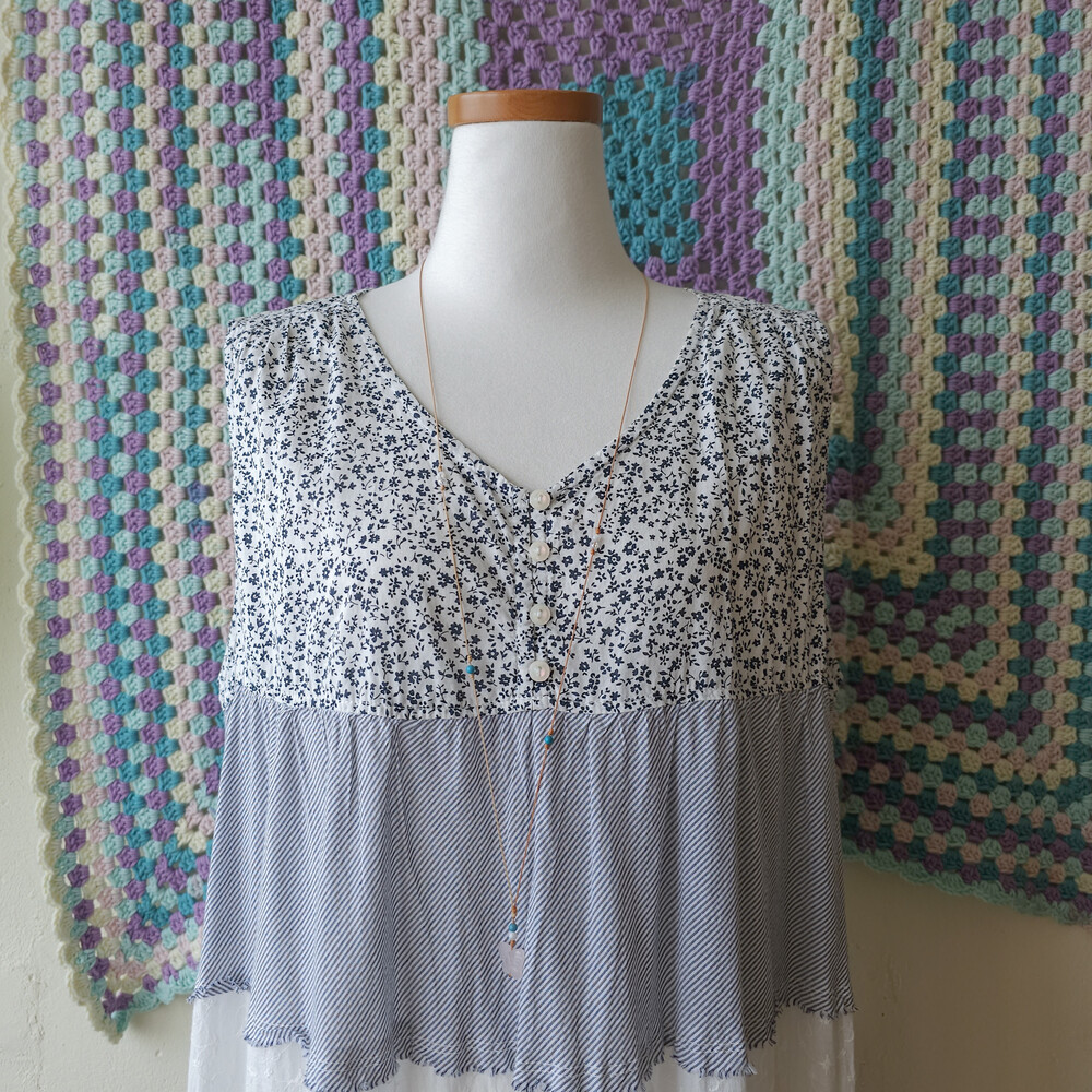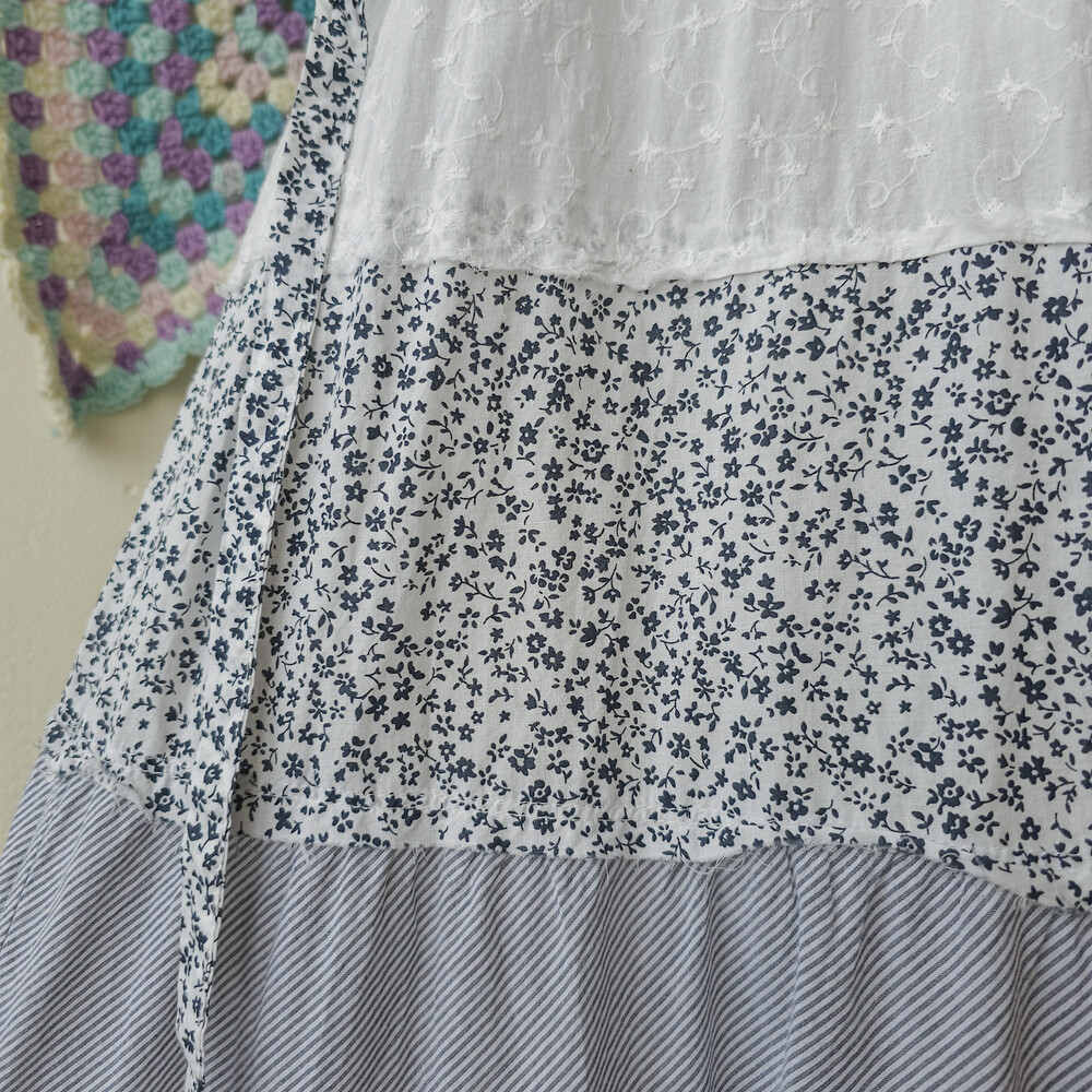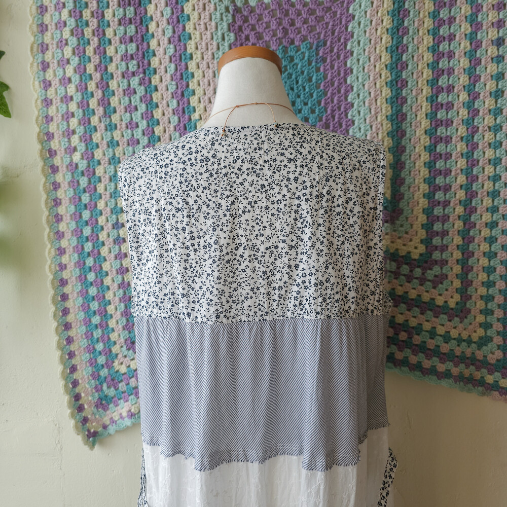 블랙 잔꽃 패턴의 민소매 패치워크 원피스예요