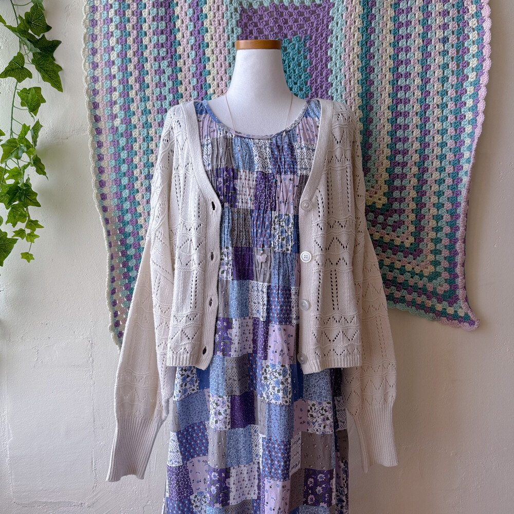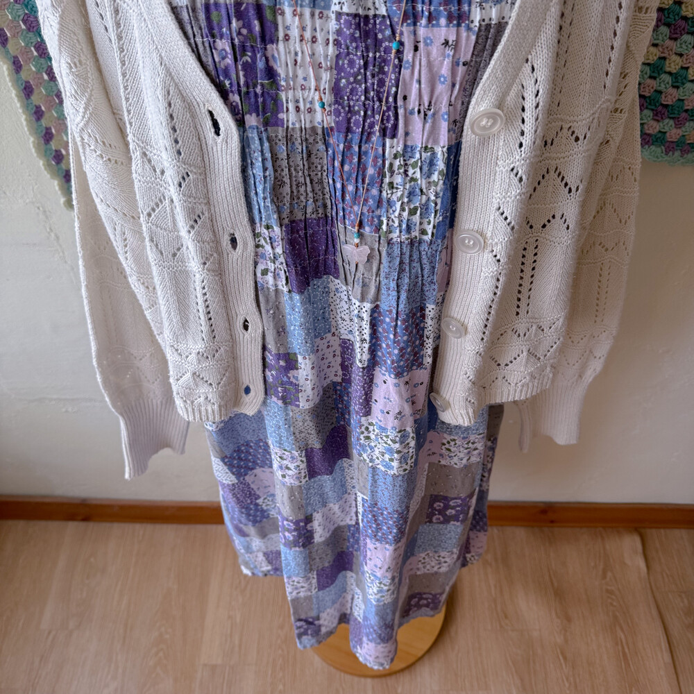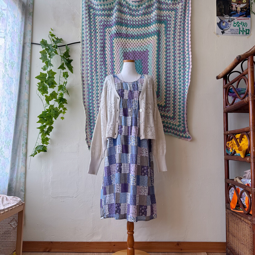 모리모리한 분위기의 보라 잔꽃 원피스예요