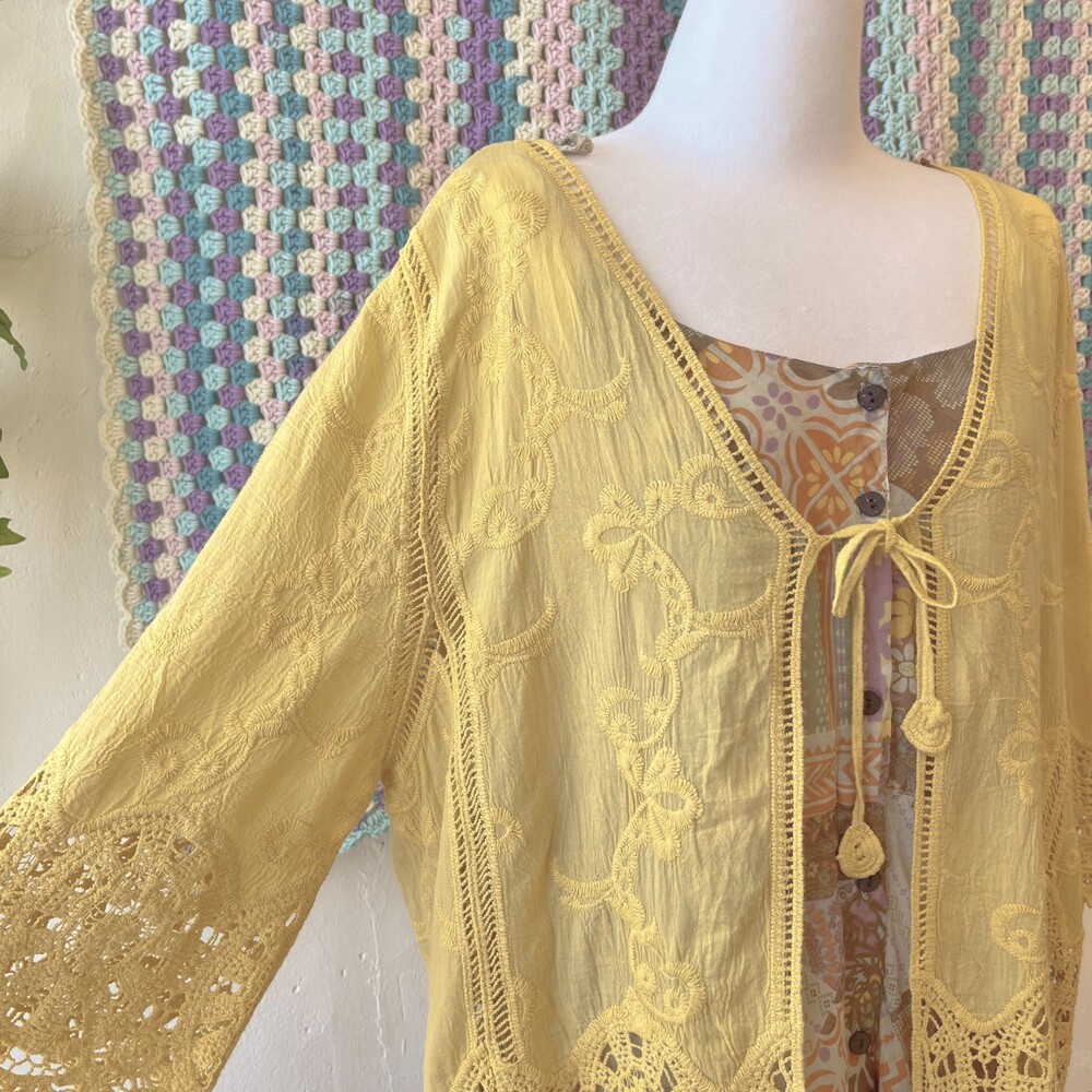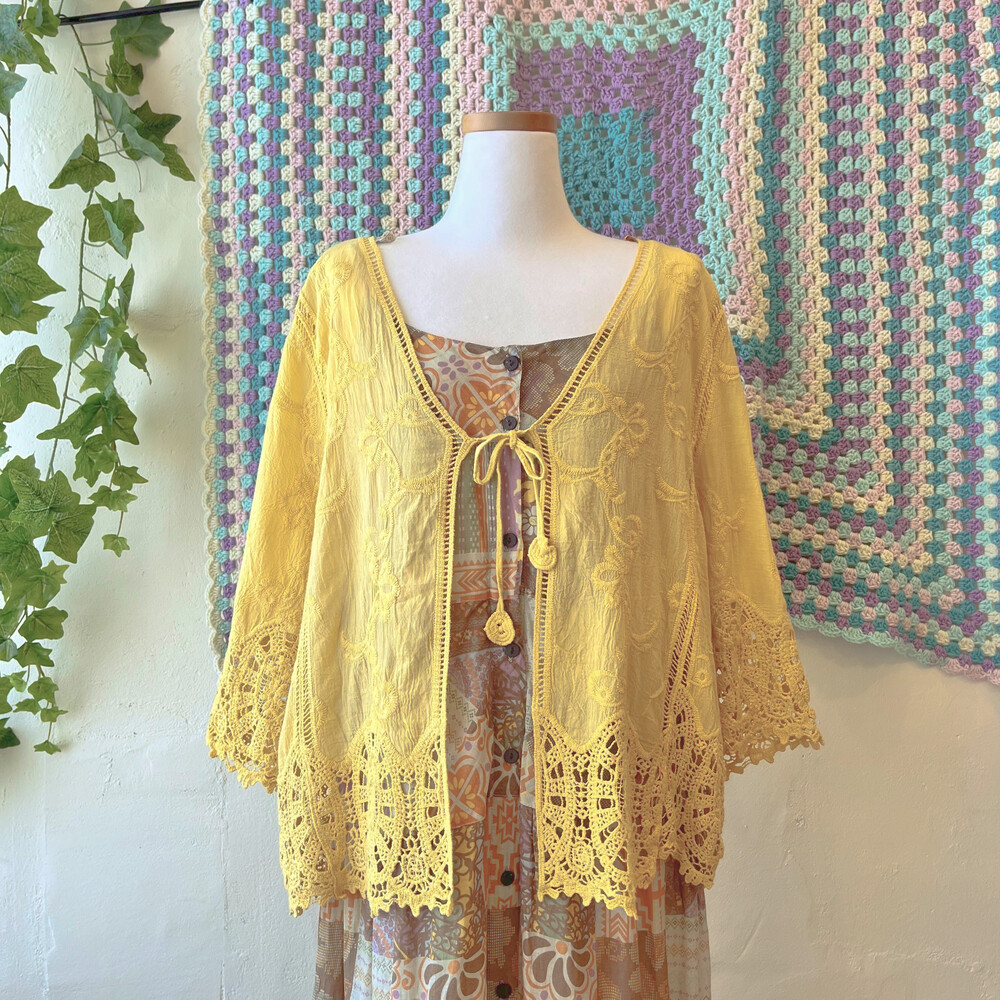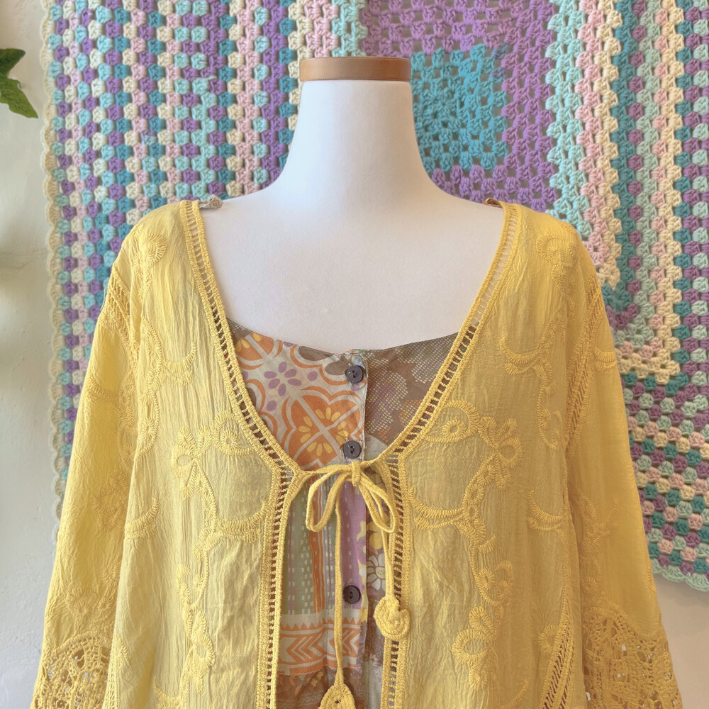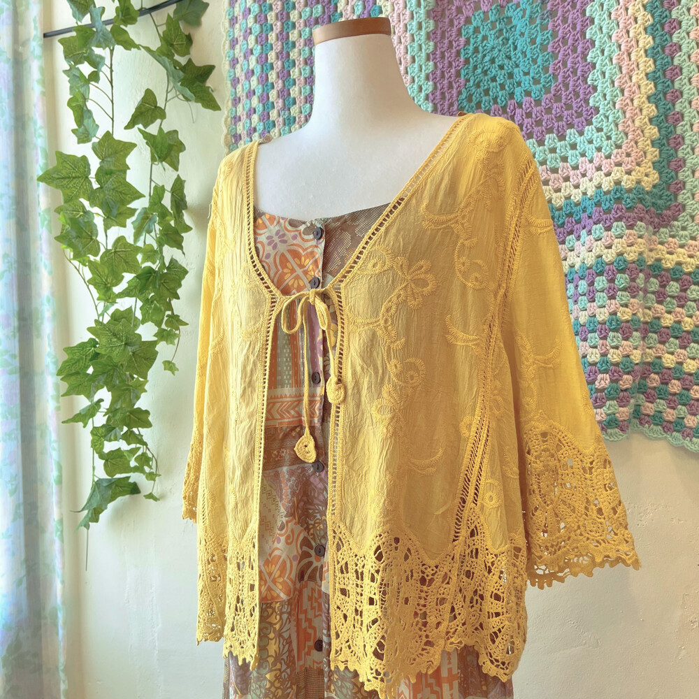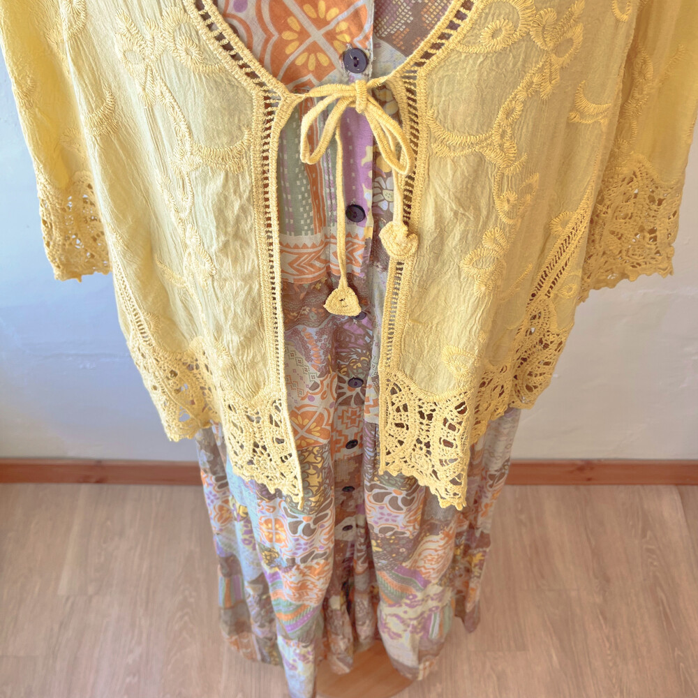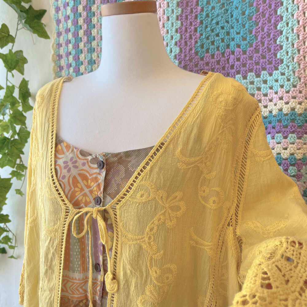 히피한 분위기의 겨자 코튼 가디건이에요