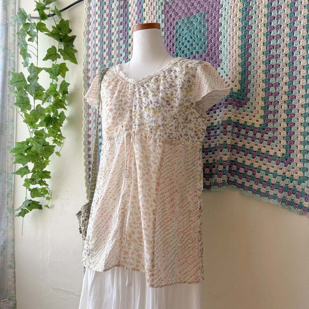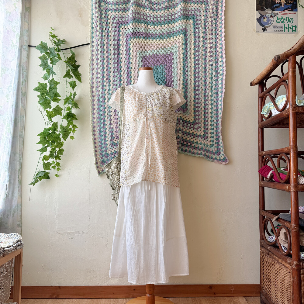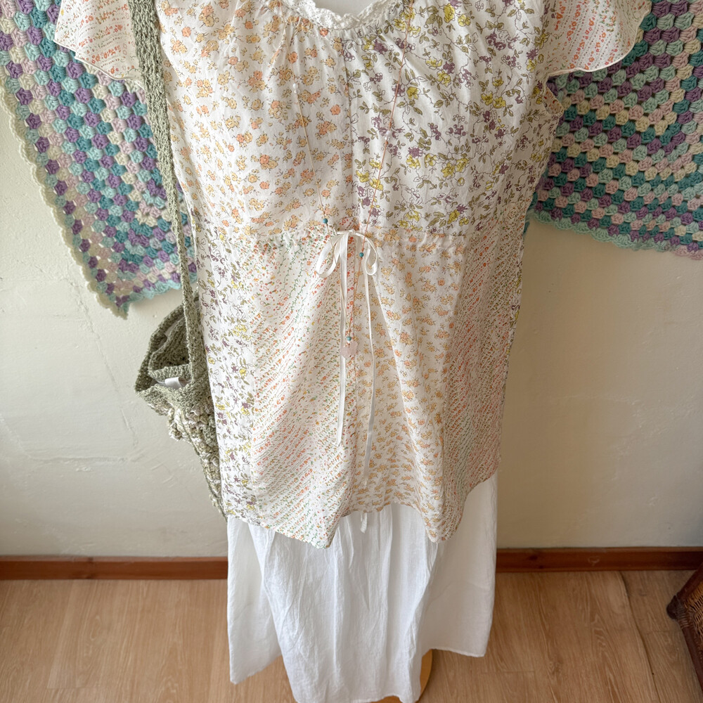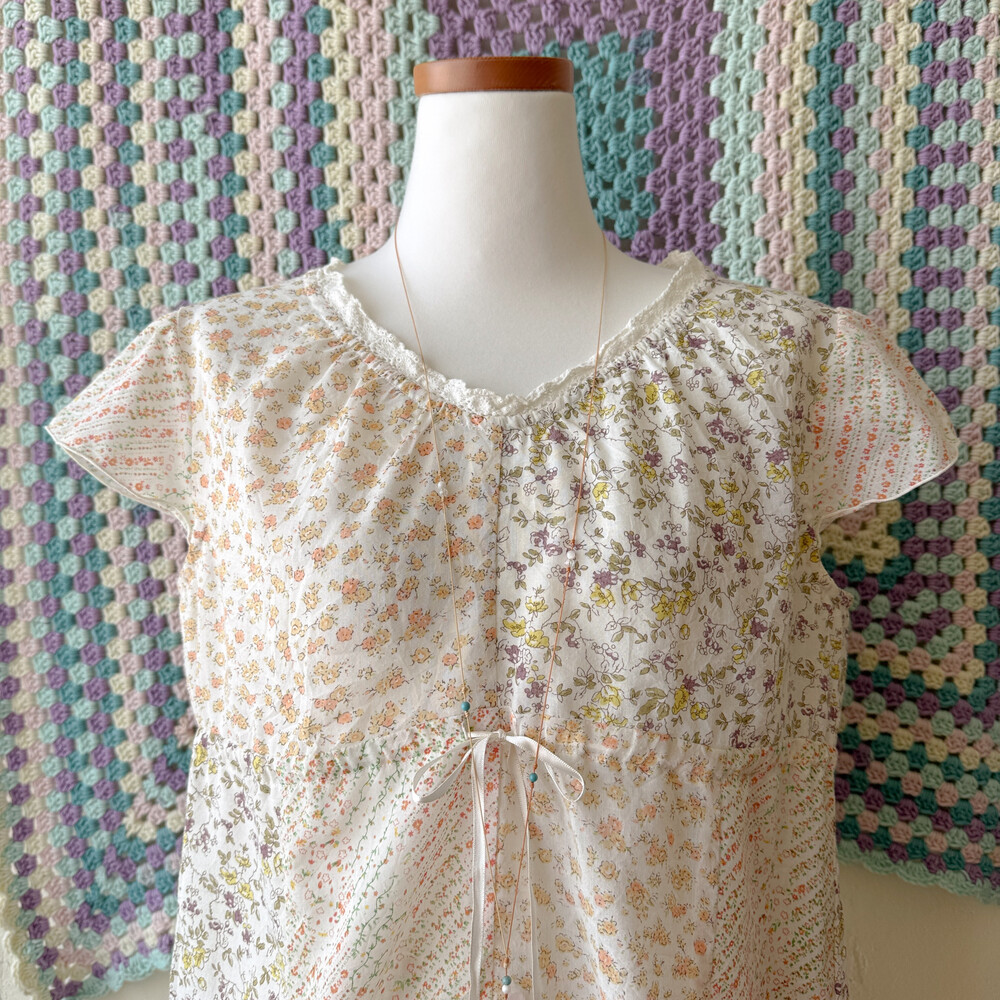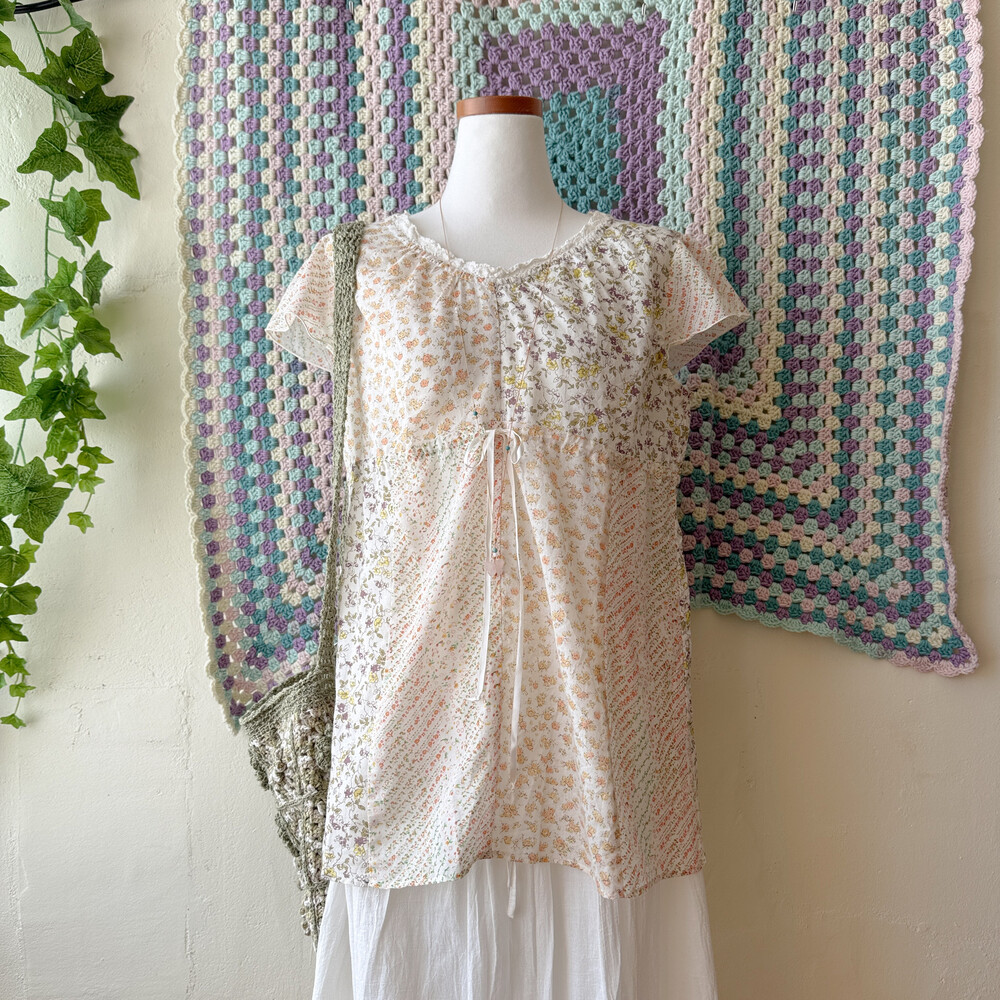 살구 꽃무늬 등의 패치워크 블라우스예요