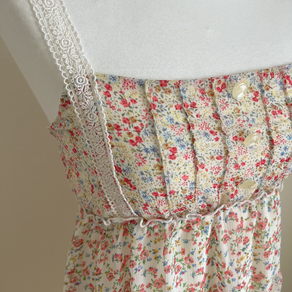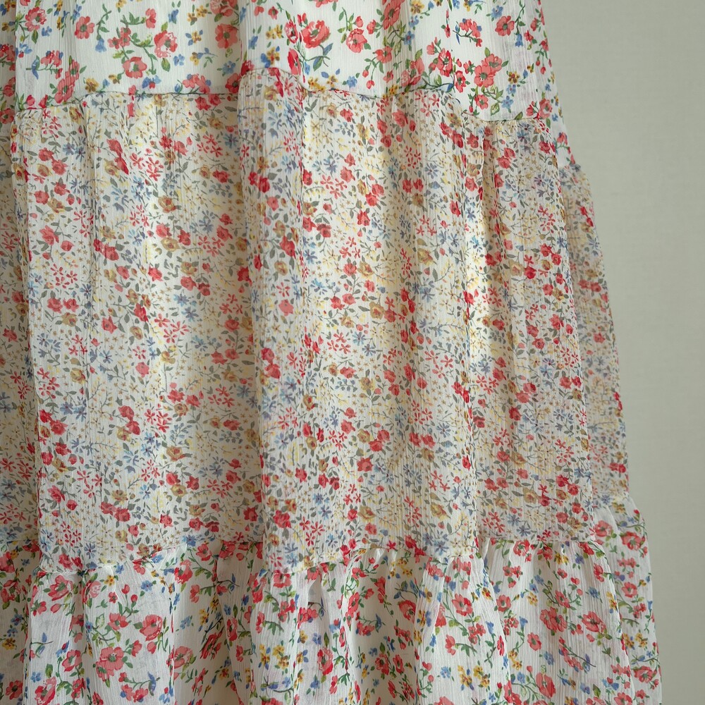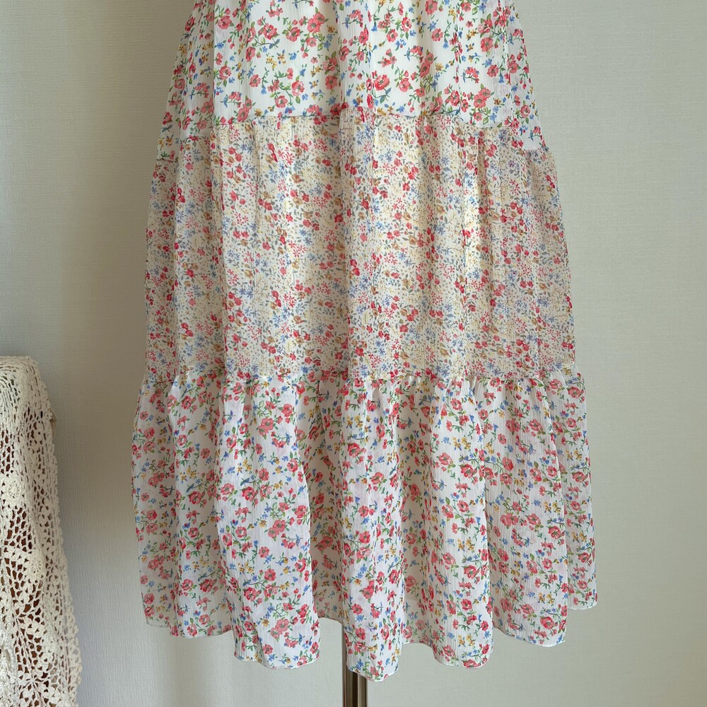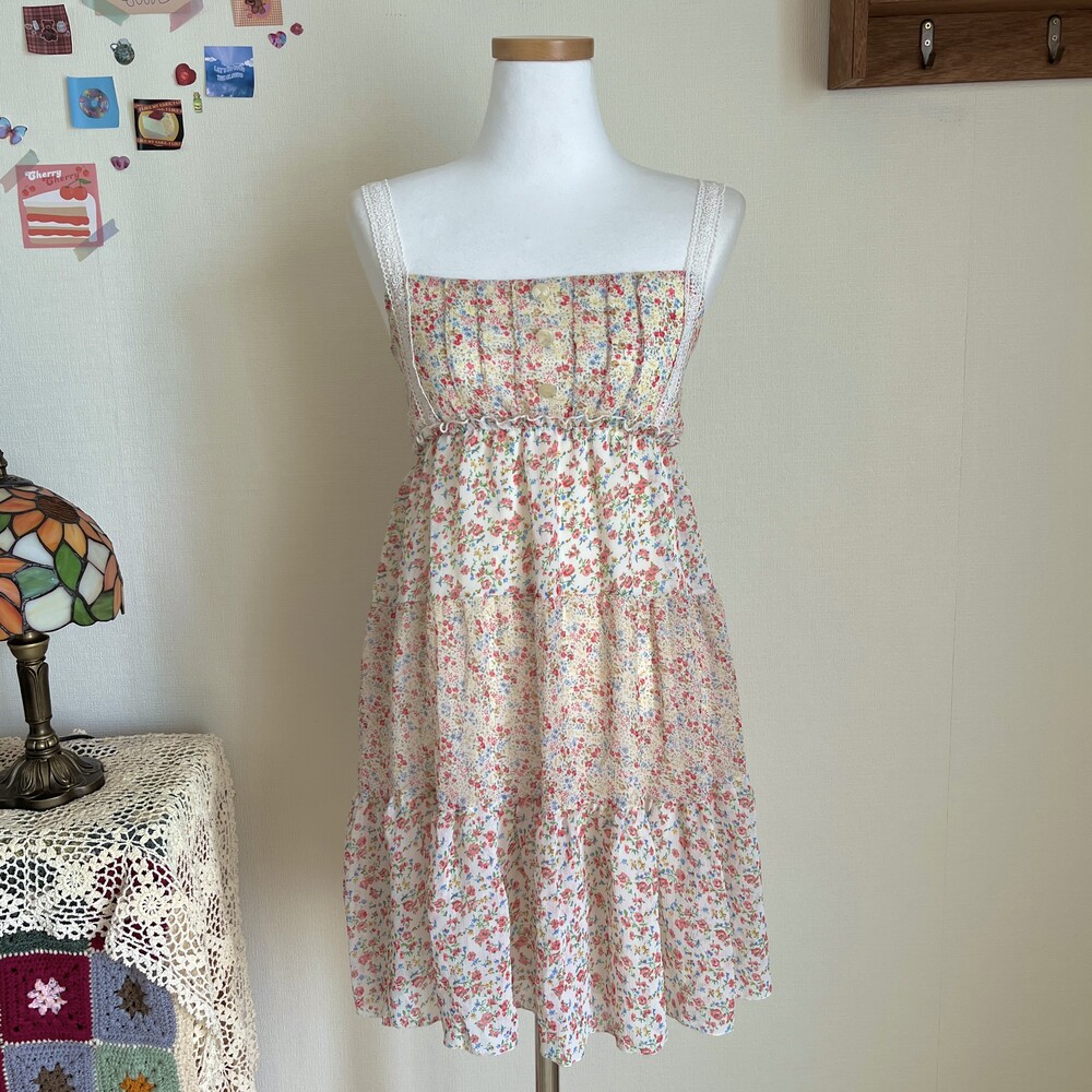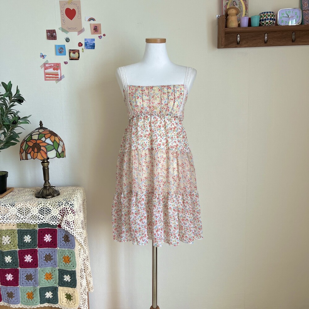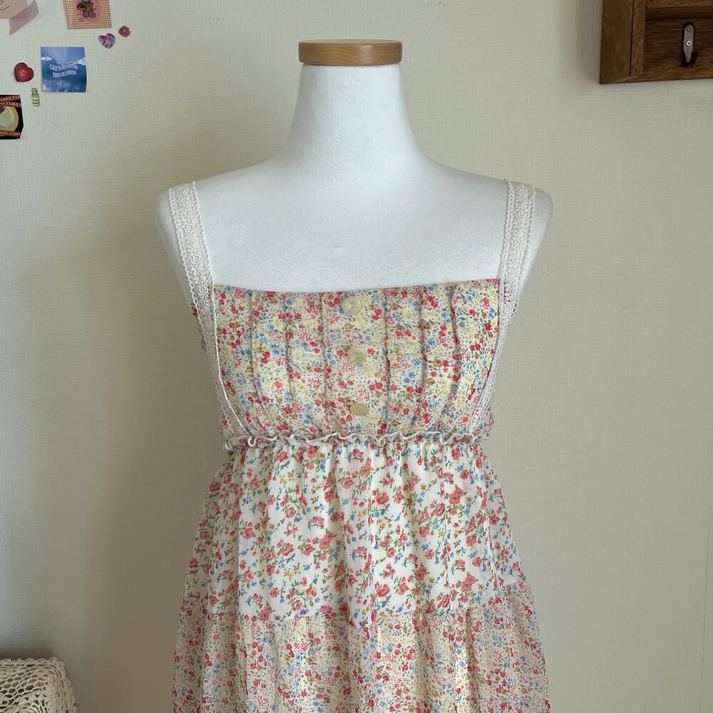 레이스 스트랩 디자인의 쉬폰 끈원피스예요