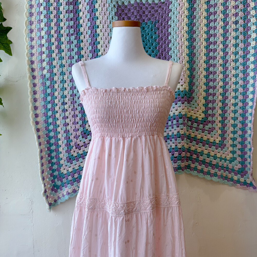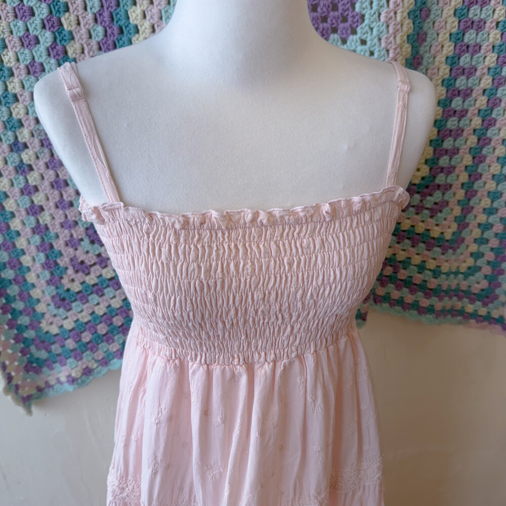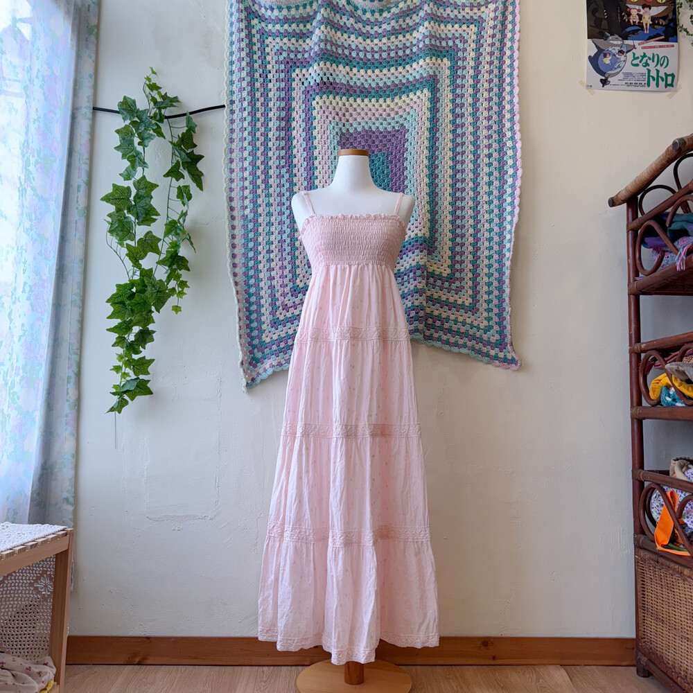 연분홍 색감의 코튼 끈원피스예요