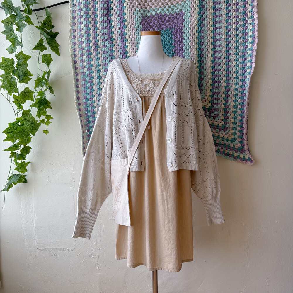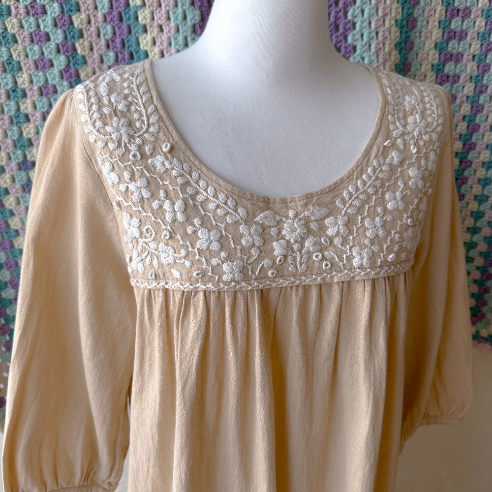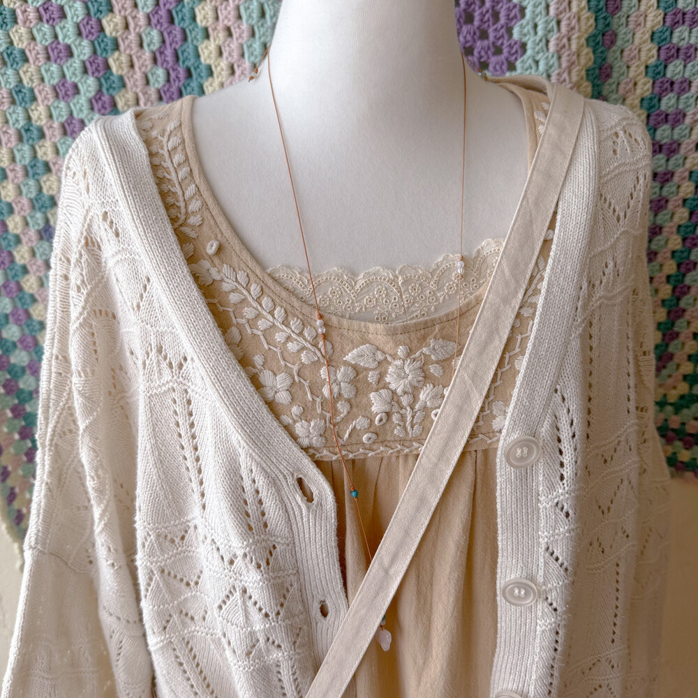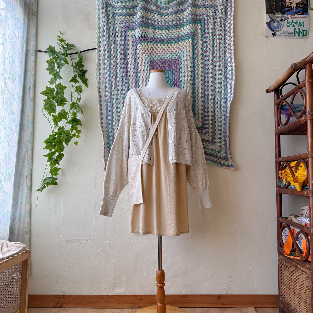 베이지 색감의 자수 원피스예요