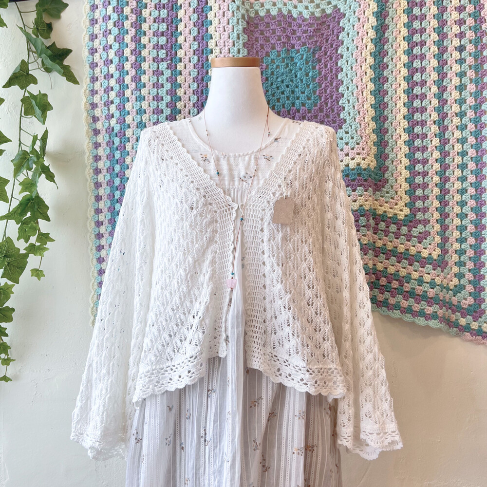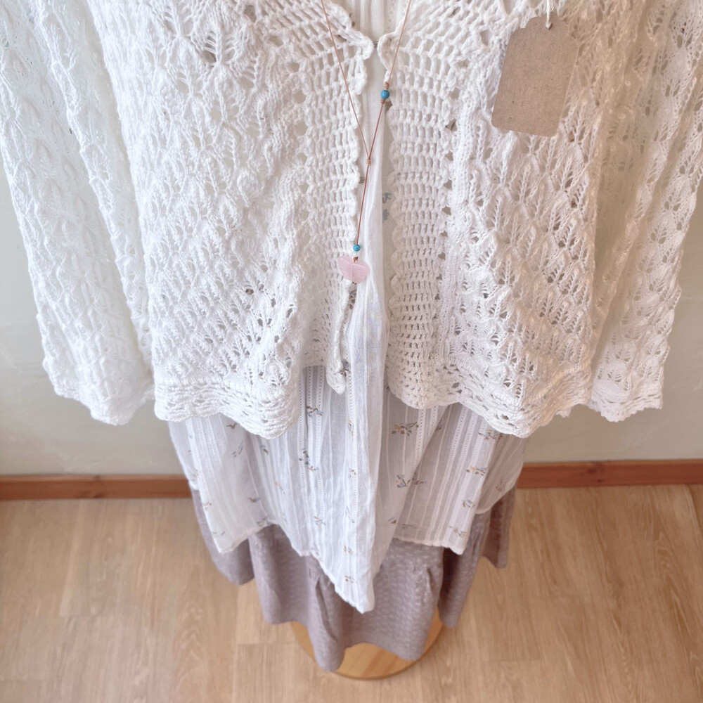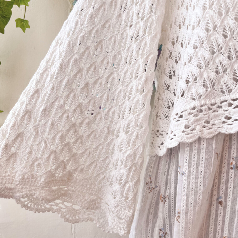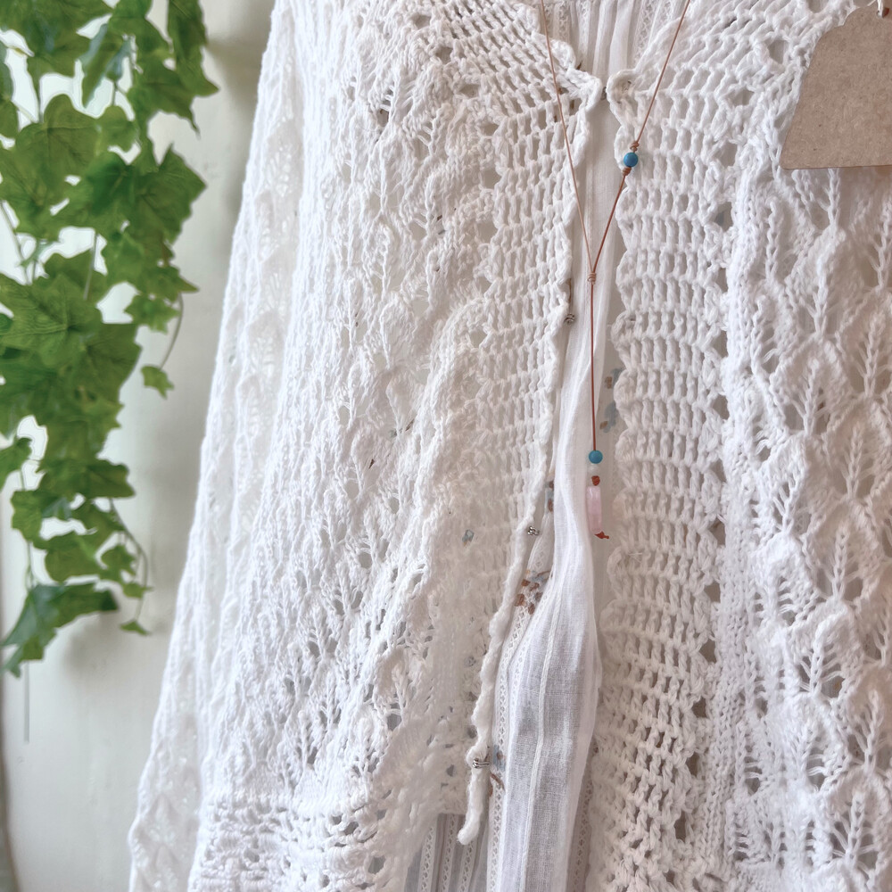 나뭇잎 모양의 크로셰 디자인과 물결 포인트들이