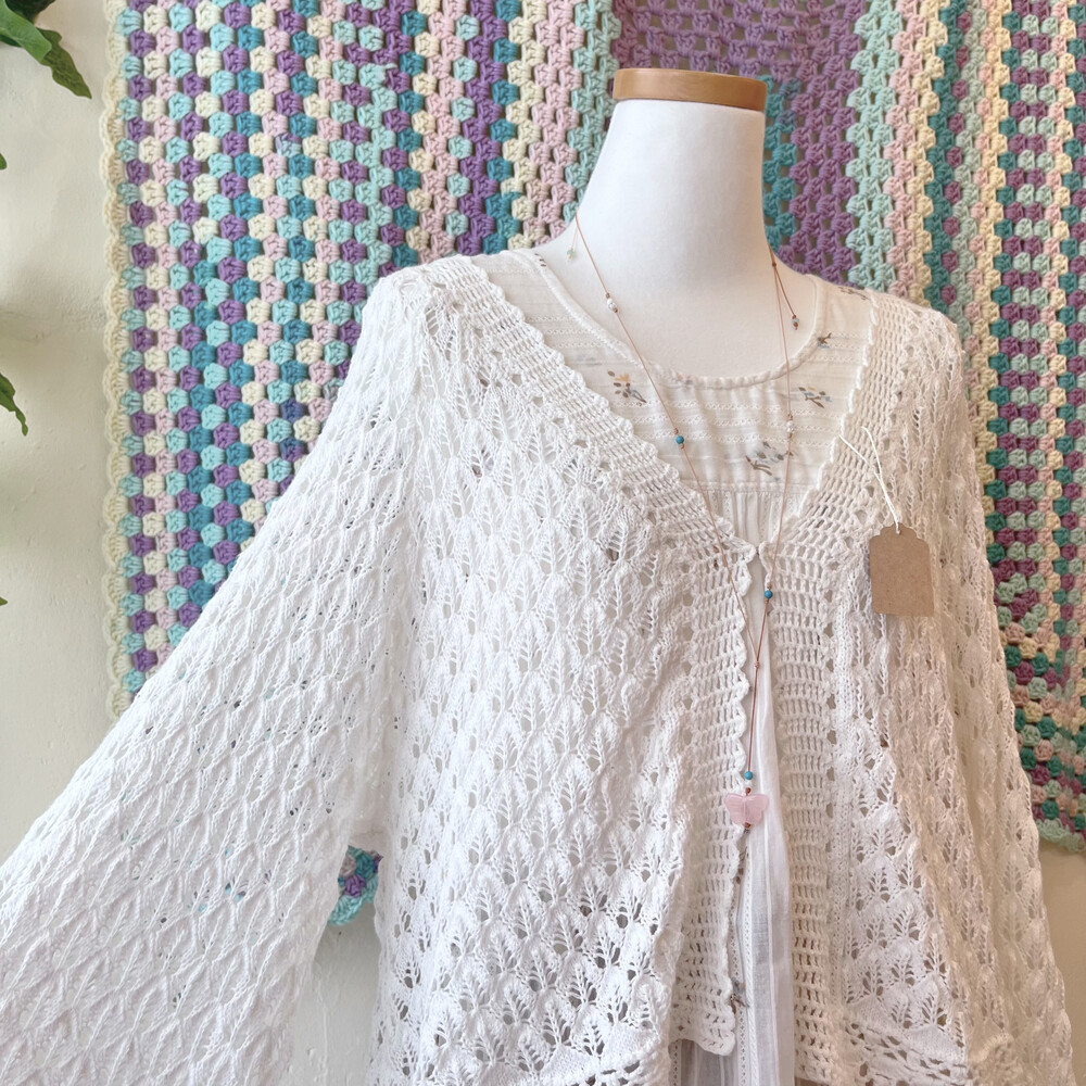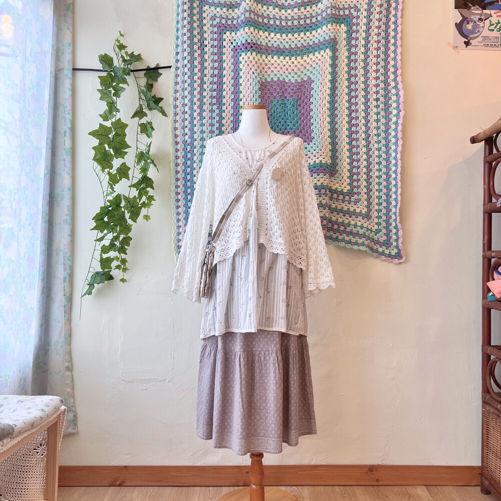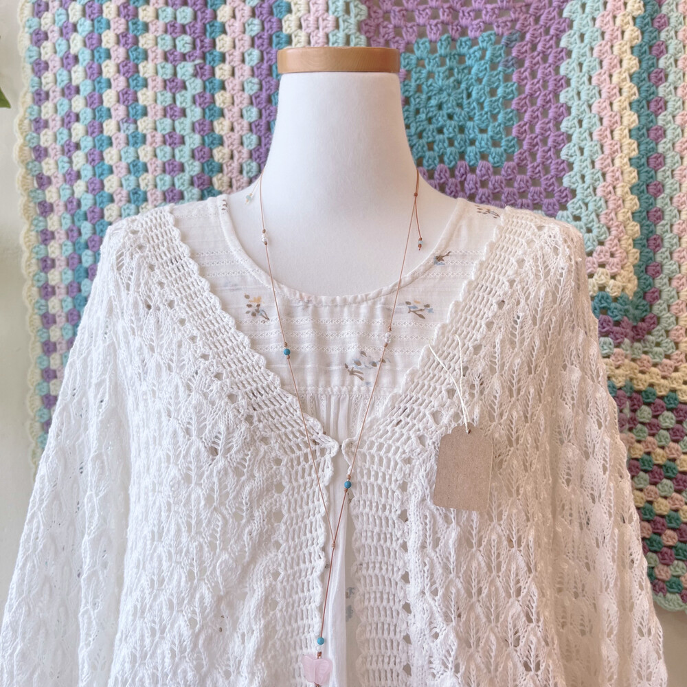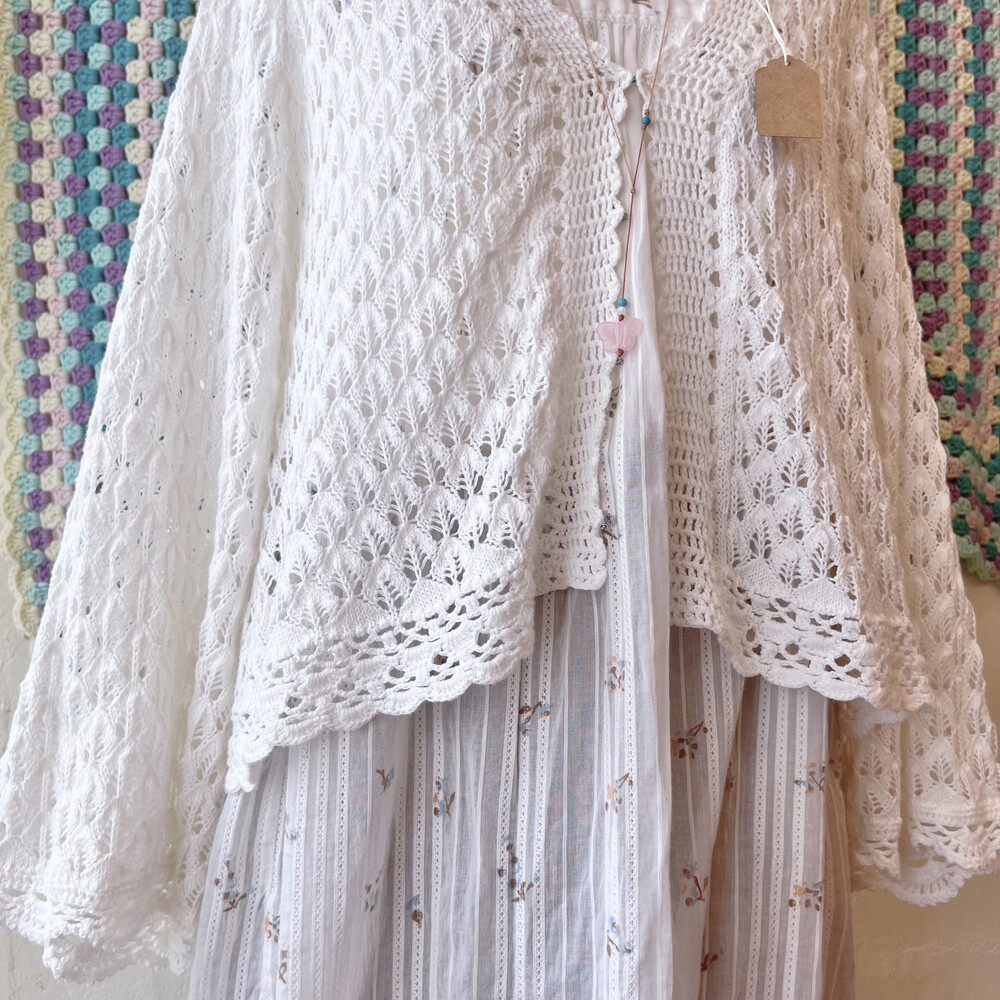 나뭇잎 모양의 크로셰 디자인과 물결 포인트들이