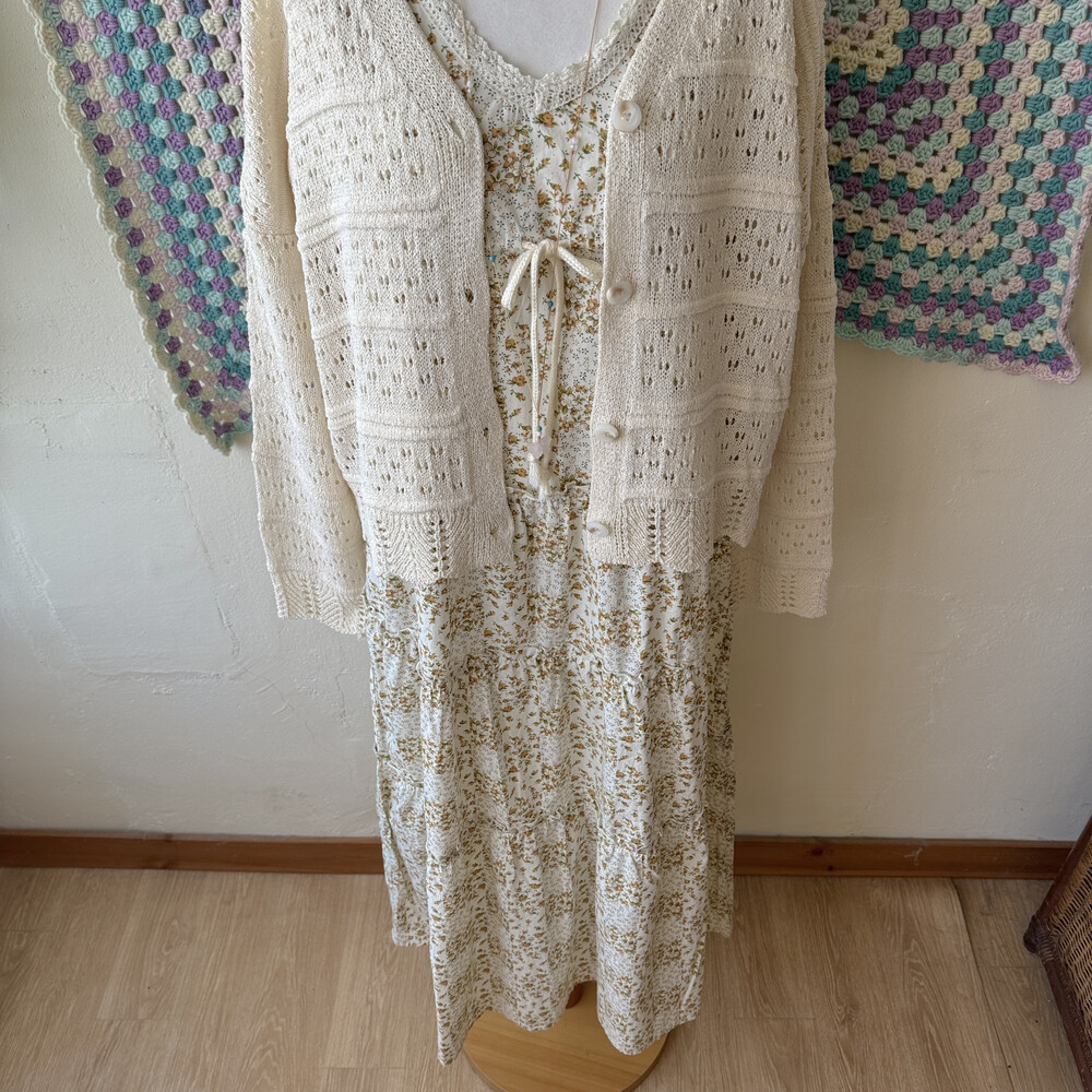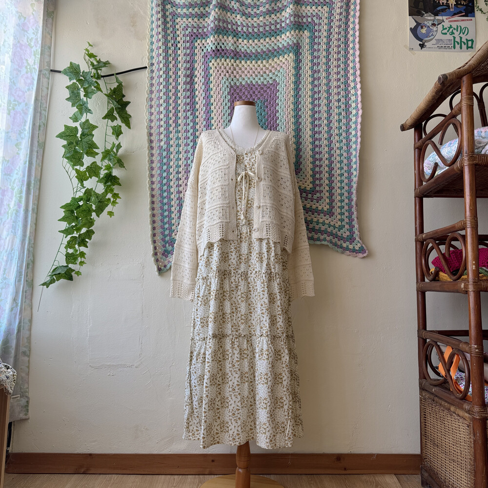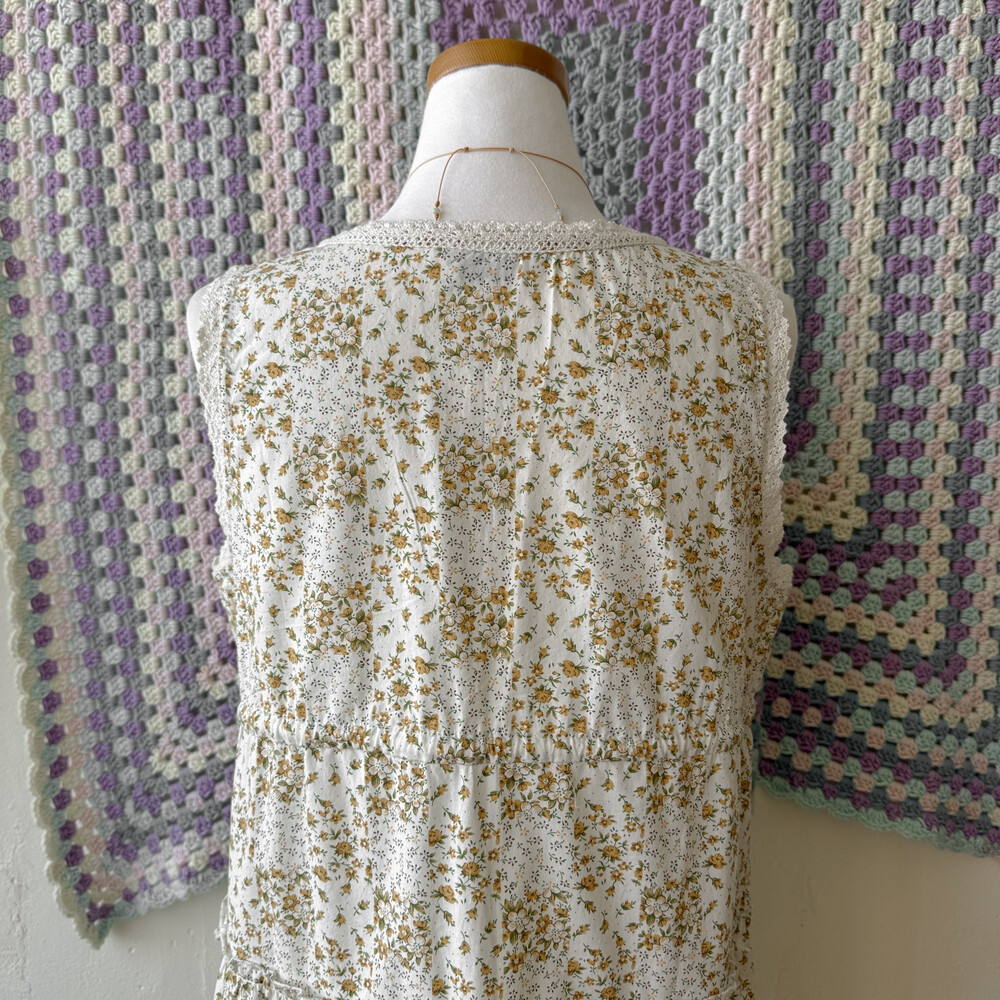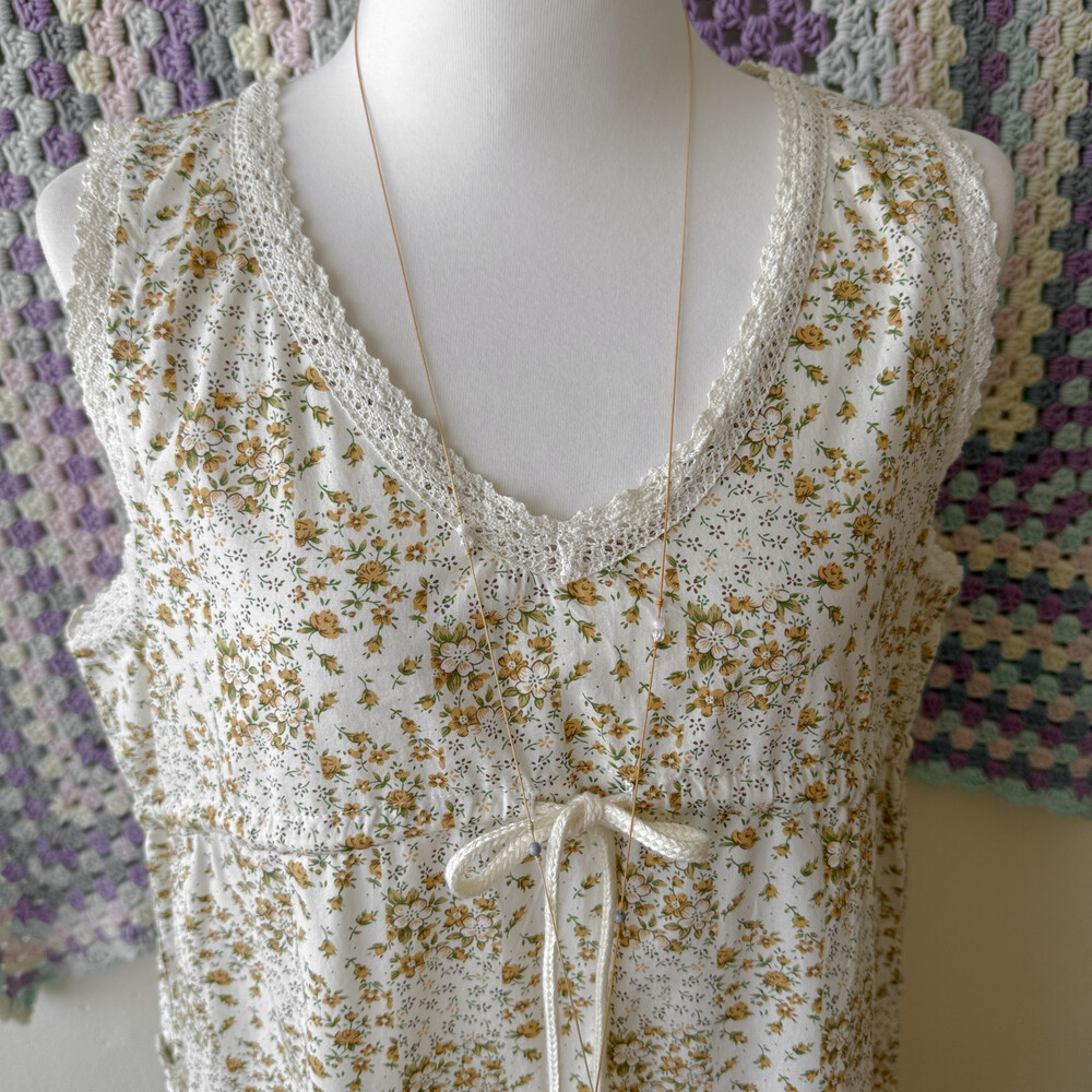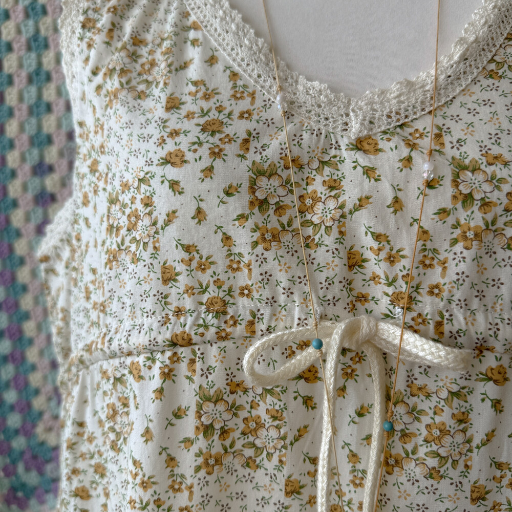 머스타드 색감의 꽃무늬 민소매 롱원피스예요