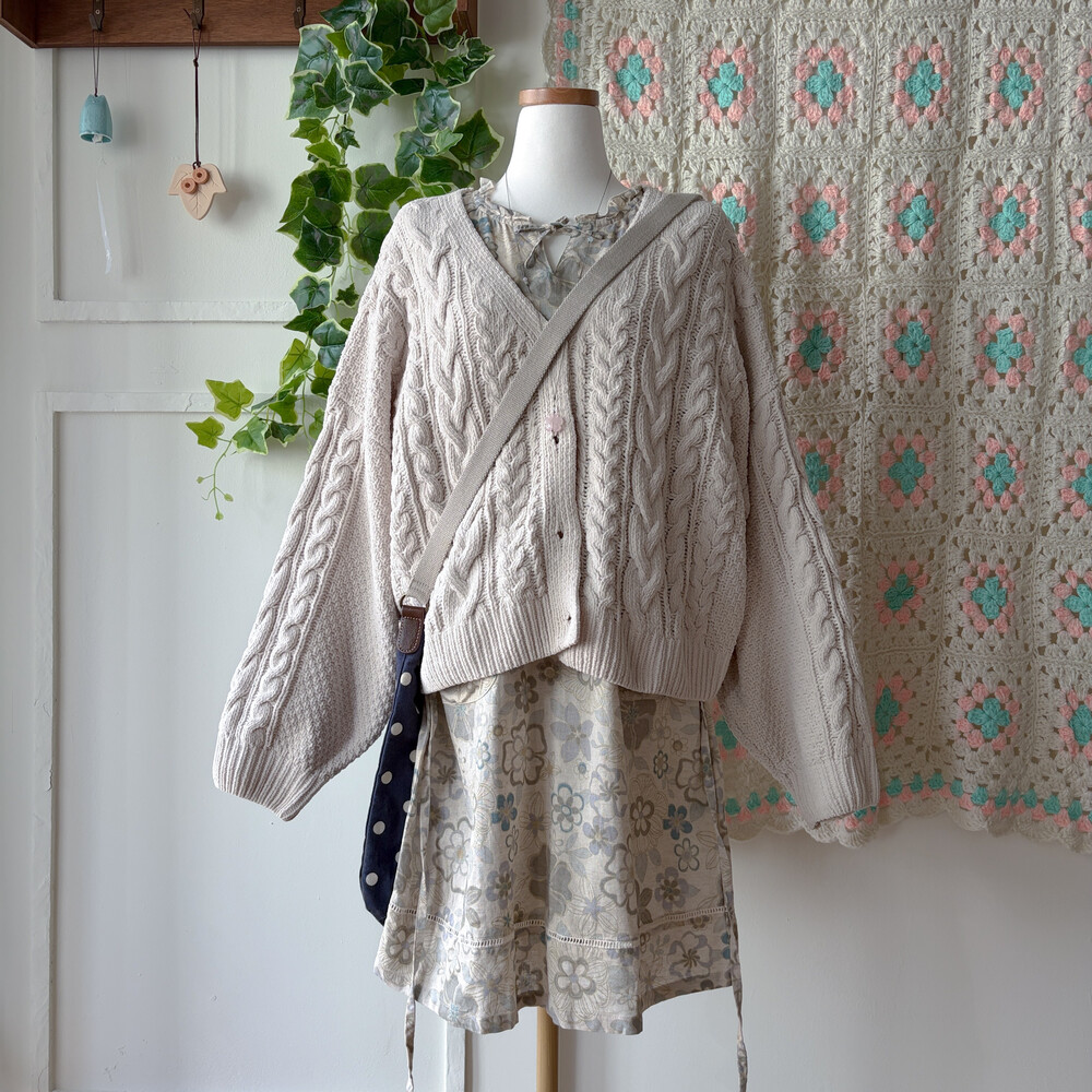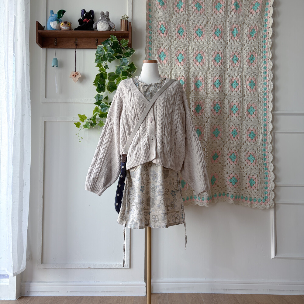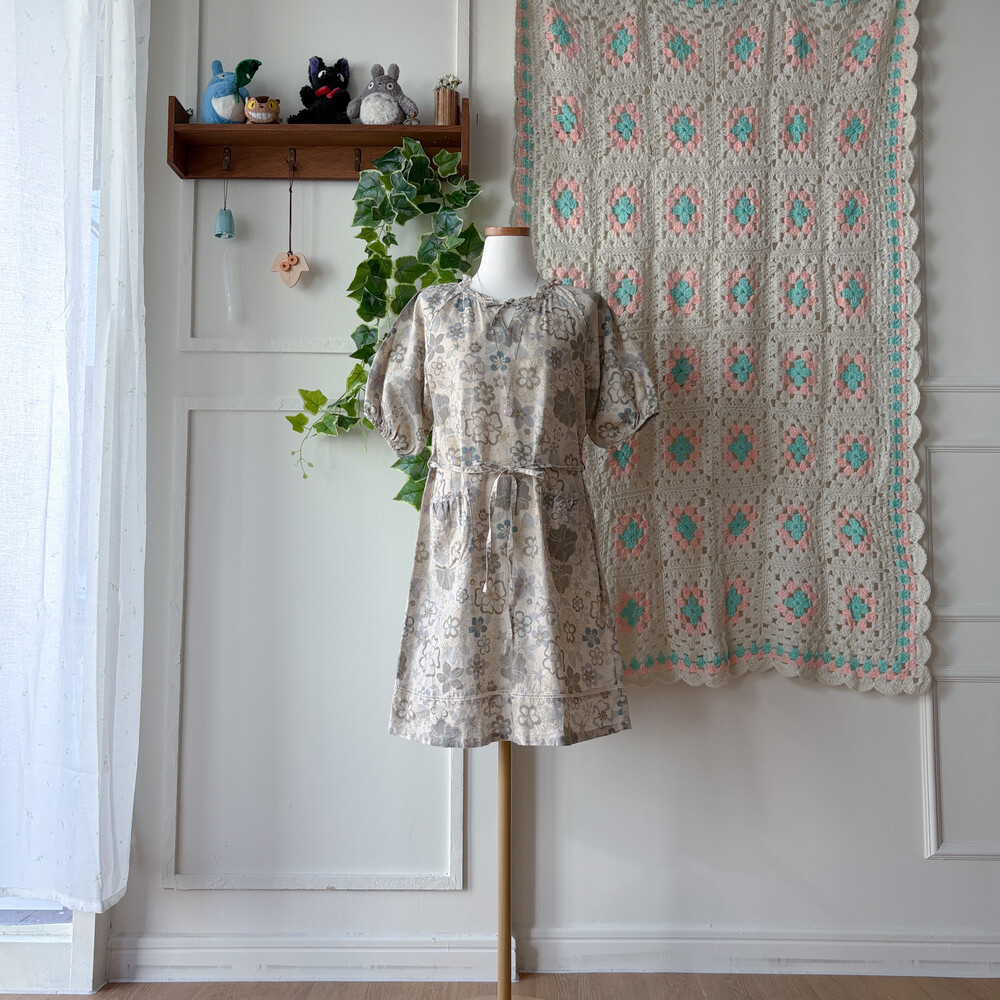 오트밀 색감의 꽃무늬 원피스예요