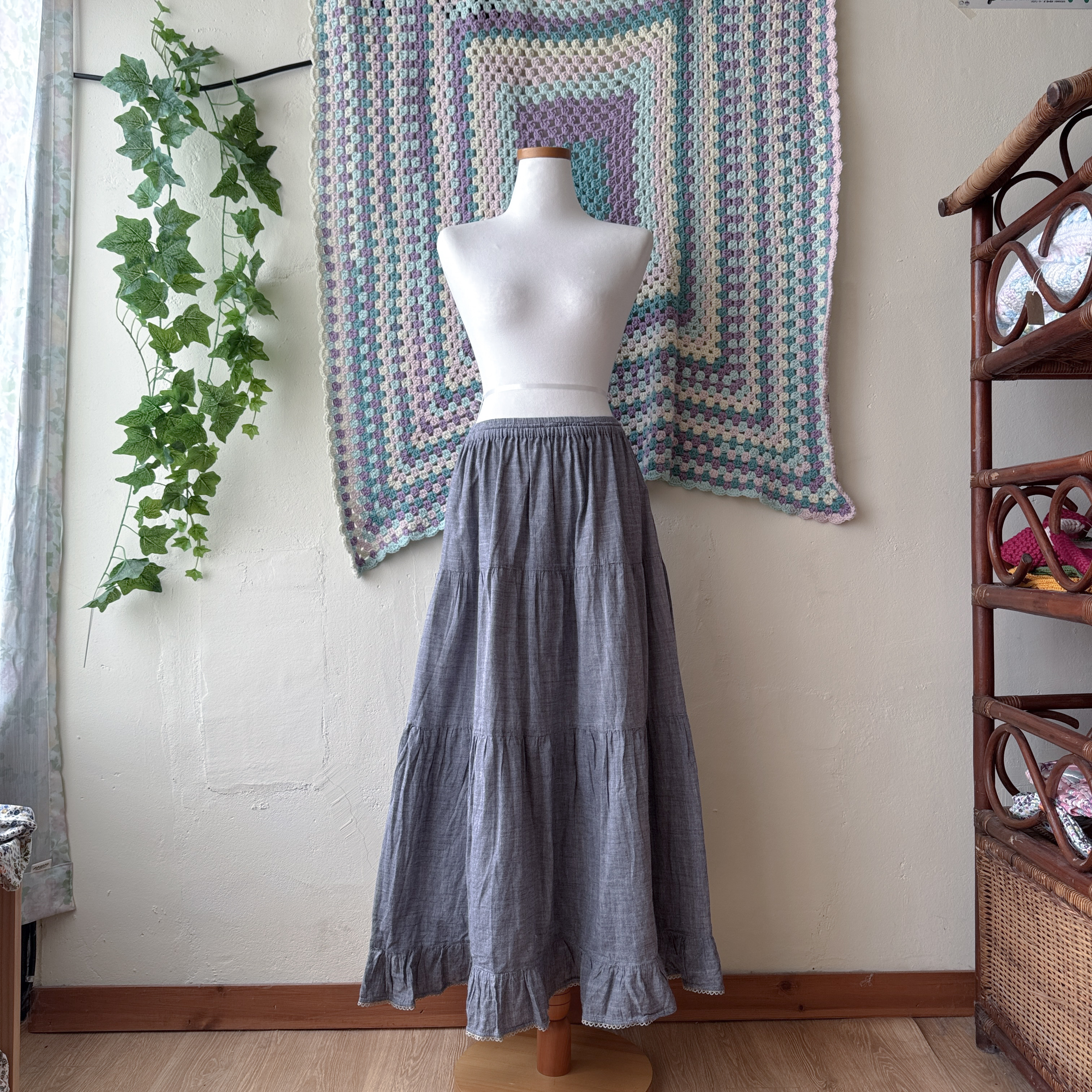 빈티지한 느낌의 뮤트 중청 스커트예요