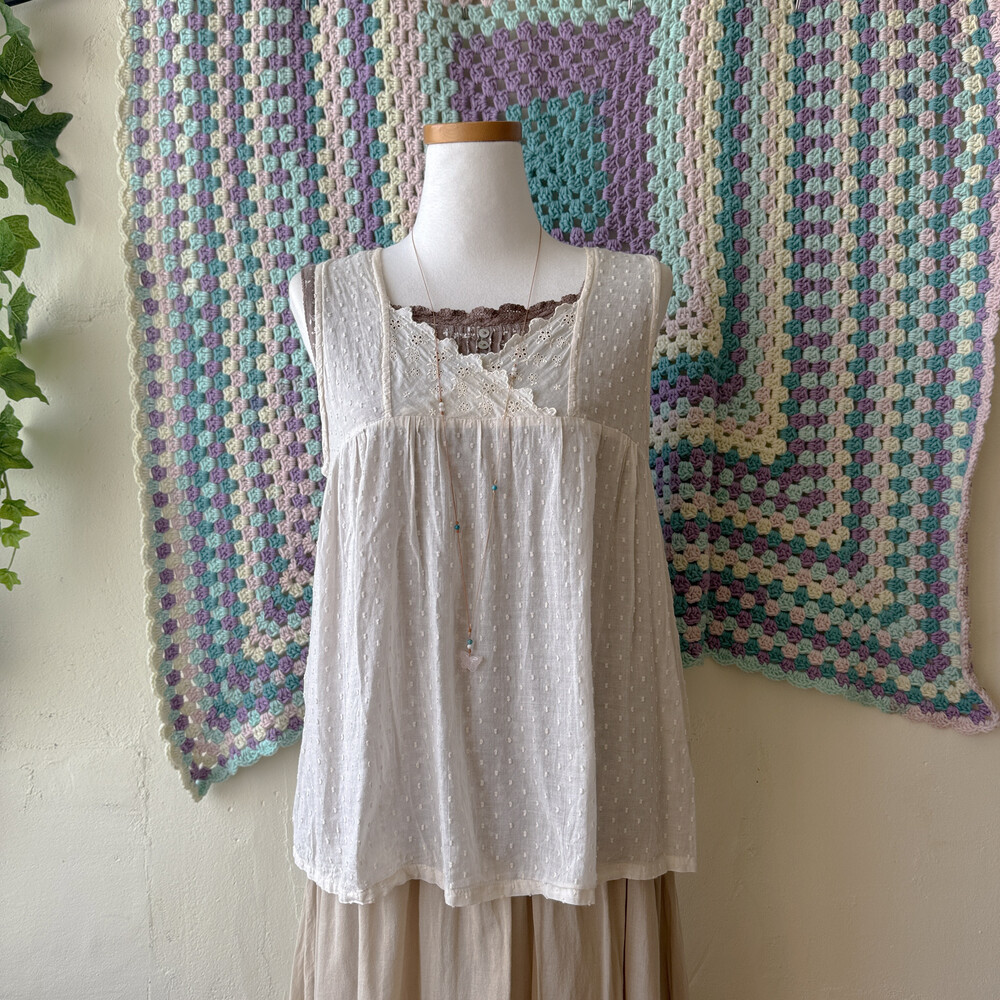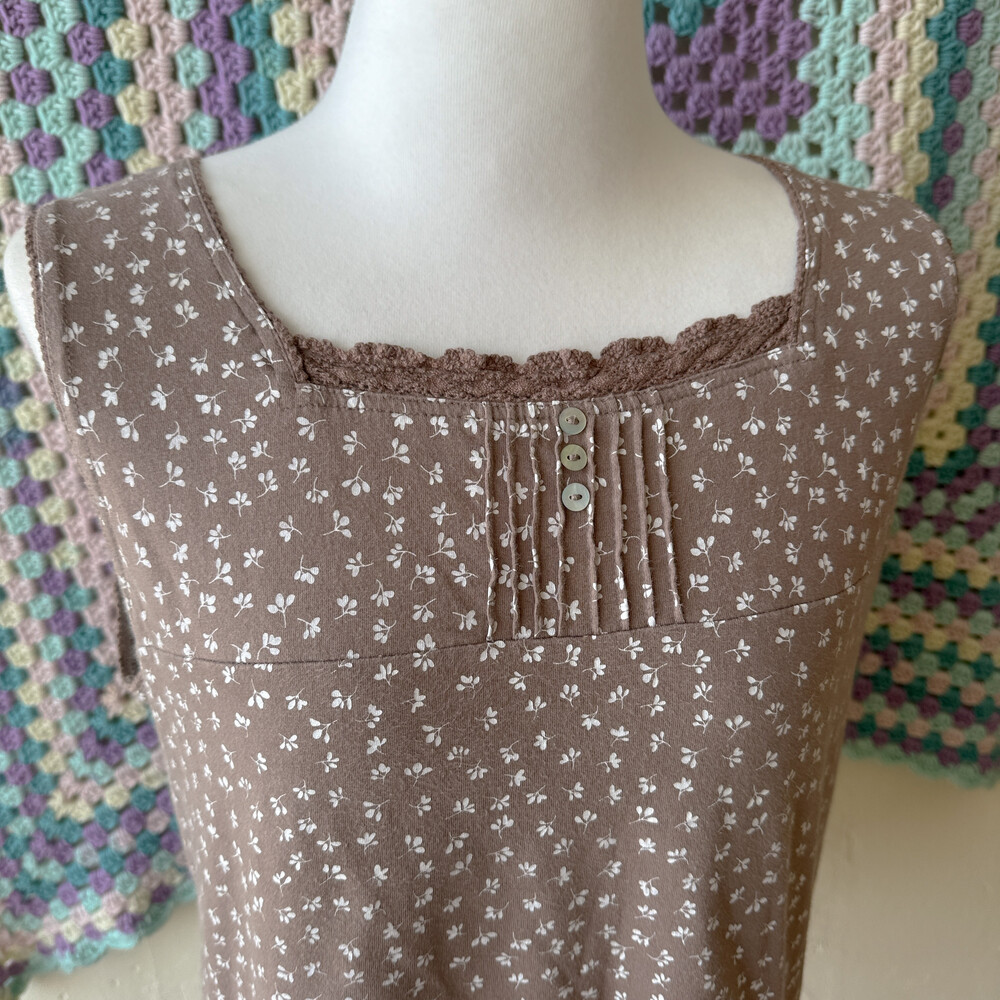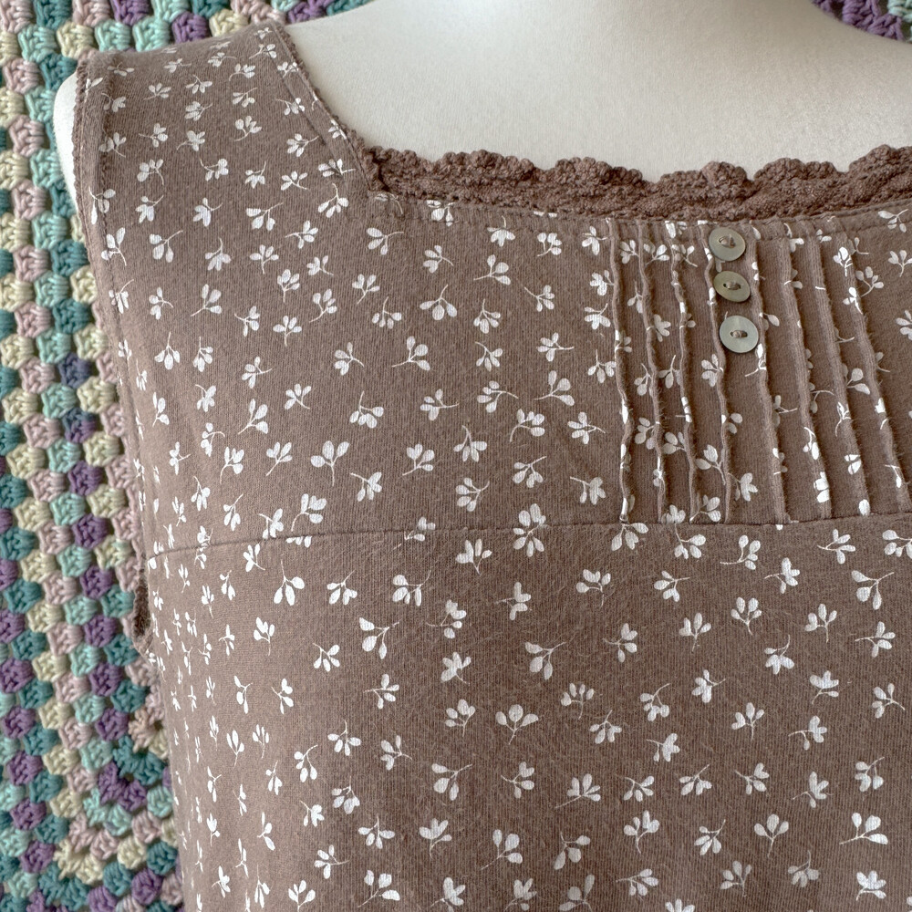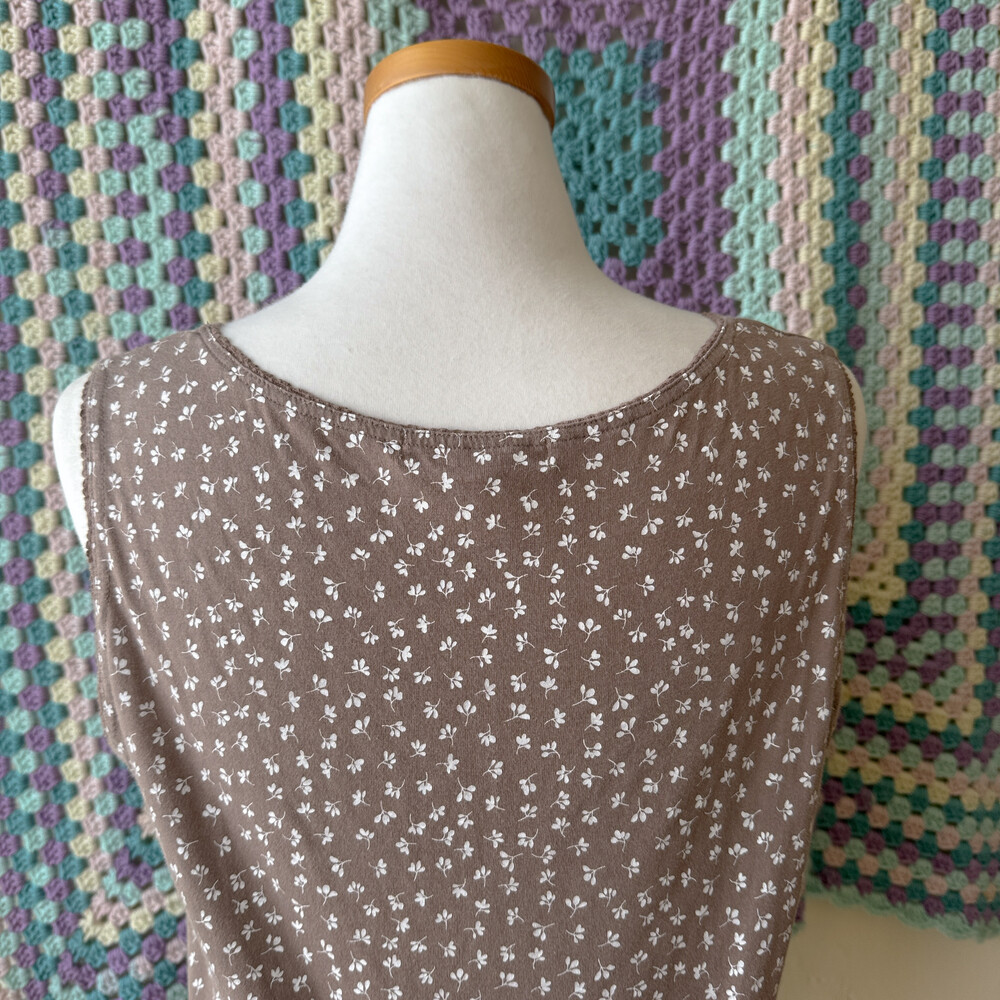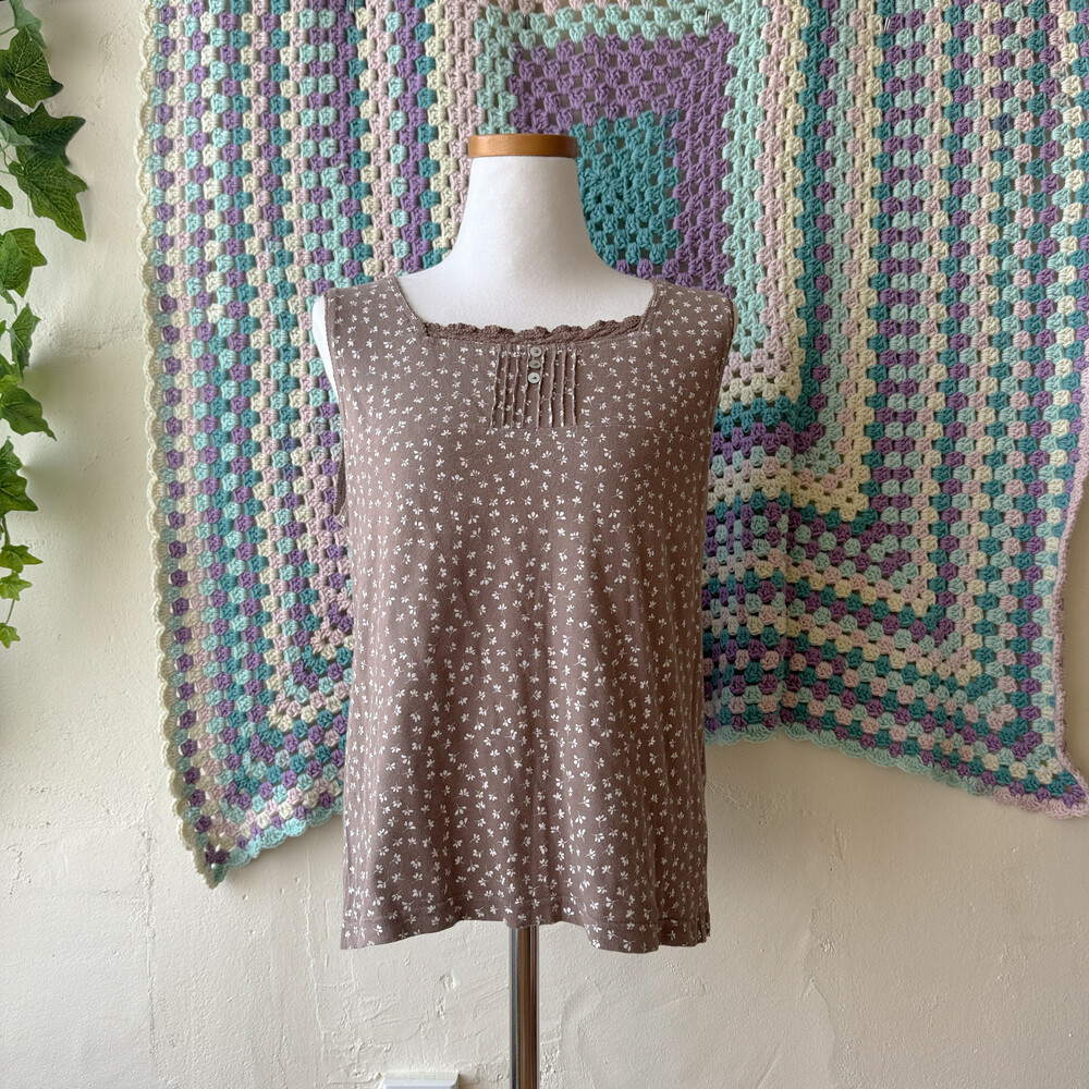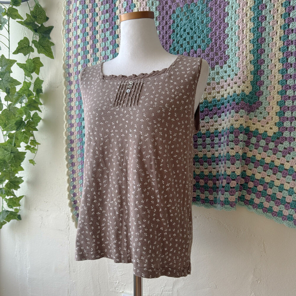 brown mini leaf&pintuck sleeveless top
